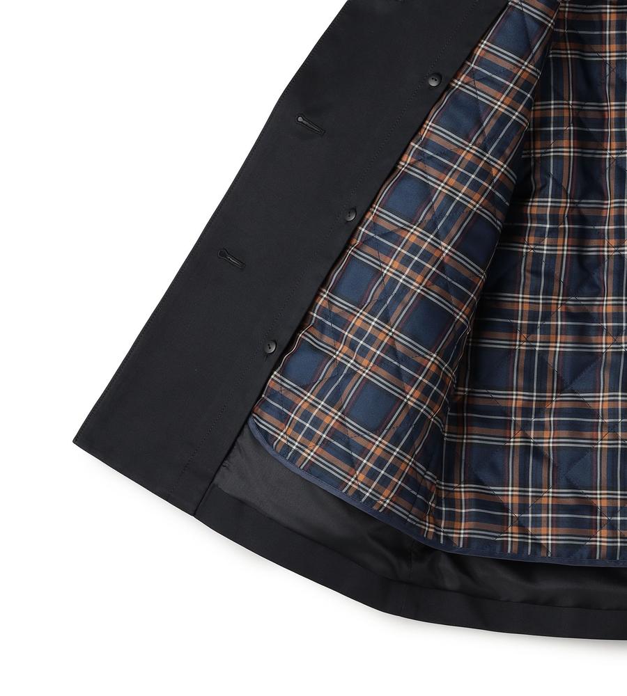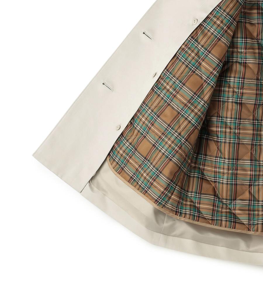 ハリ感のあるハイデンスコットン生地で仕立てたフード付きコート。気温に応じてボタンで取り外し可能なチェック柄の中綿ライナー付きで長いシーズンで活躍します。ブランドロゴ入りのオリジナルのボタンもさりげなくおしゃれなポイント。シンプルなデザインで様々なスタイルにマッチ。デイリーに活躍します。