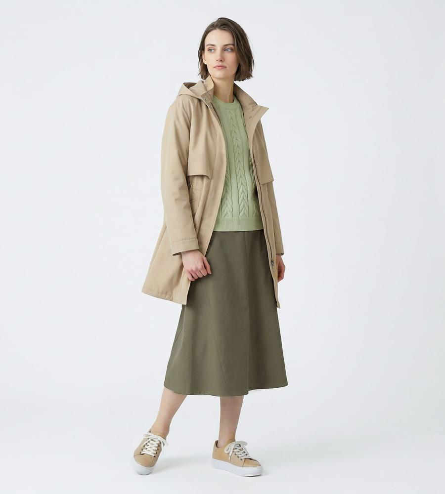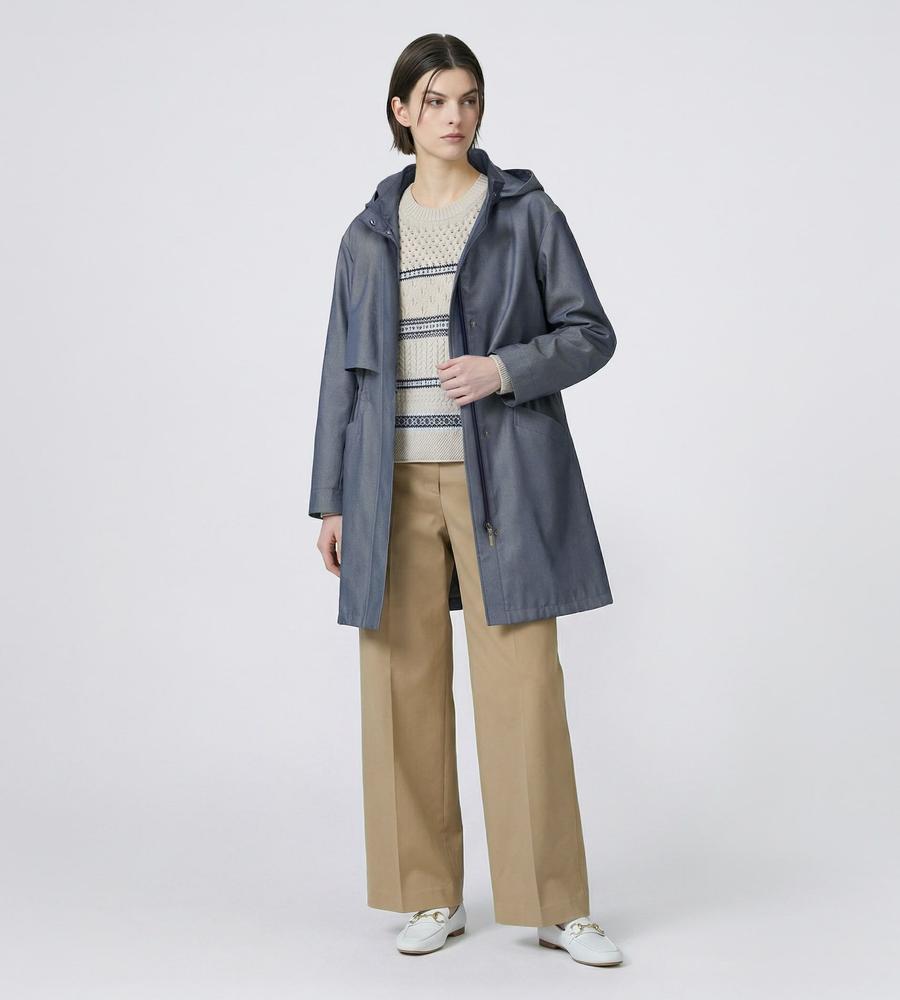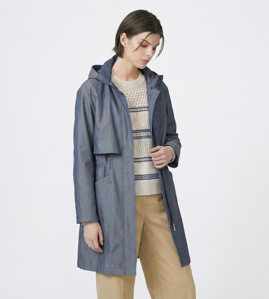 光沢感が美しいシャンブレー生地で仕立てたコートです。比翼仕立てにより、フロントのデザインをすっきり見せているのもポイント。フードはシーンに合わせて取り外しが可能です。軽やかに羽織れる素材感とミドル丈で、ロングシーズン着回ししていただけます。裾には、シルエットに変化を付けられるドローコードが付属。