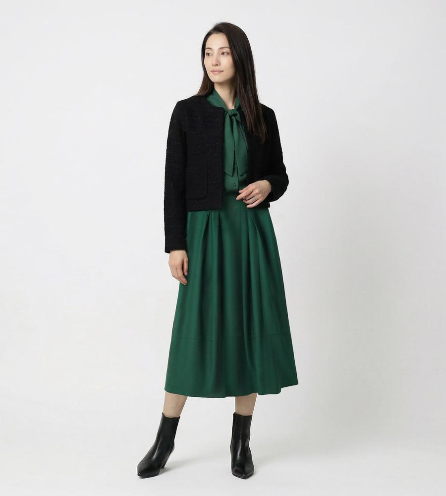 ウエストの立体的なタックが美しいドレープを描くロング丈スカート。裾の切り返しもさりげなくおしゃれなデザインアクセント。タックを引き立たせるサイドジップのシンプルな仕様。モードな雰囲気あるデザインで、お手持ちのトップスに合わせておしゃれなお出かけコーディネートが完成するアイテムです。