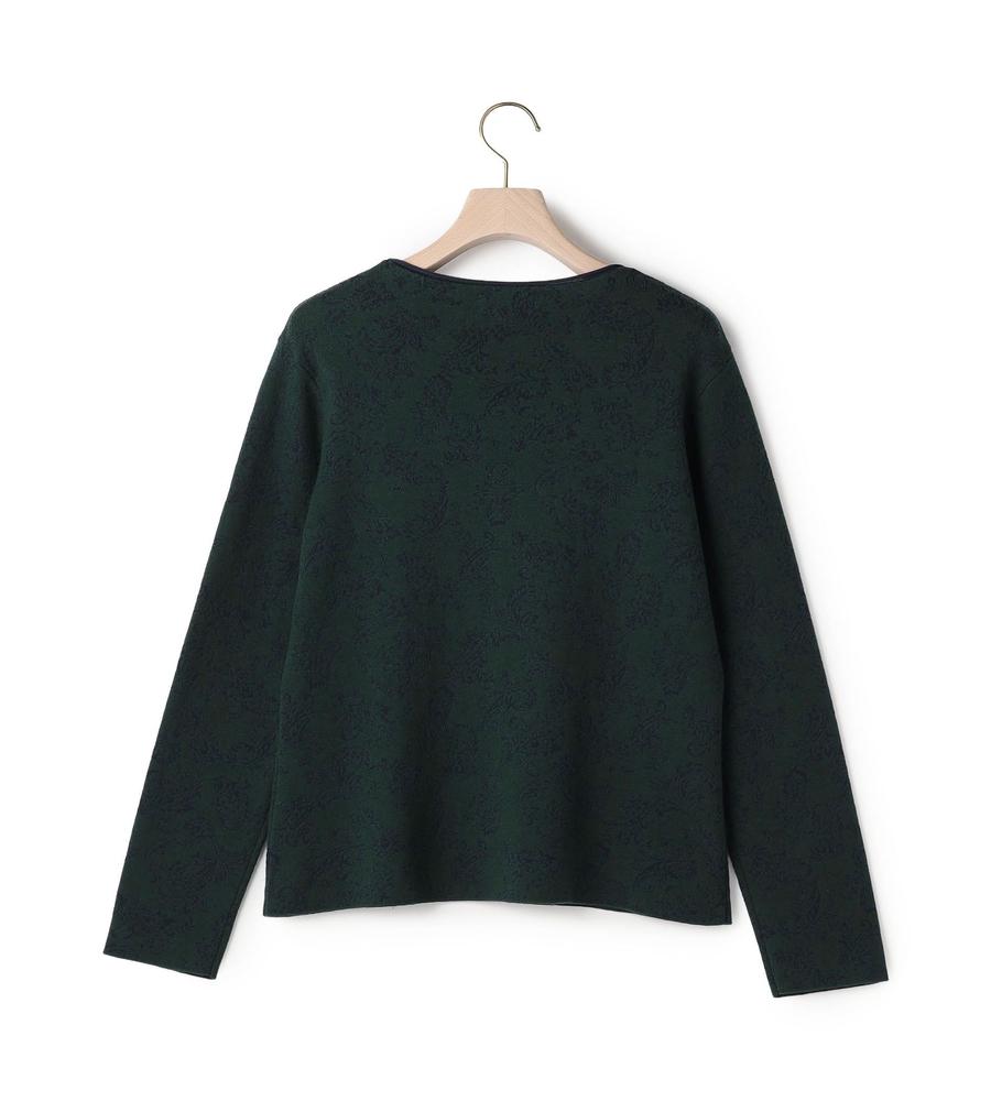 立体感のある織り模様がエレガントなムードを演出するクリアジャカード長袖ニット。さりげなく華やかな総柄がコーディネートにアクセントを与えてくれるアイテム。ゆとりのある身幅と袖が今年らしいデザインシルエット。お手持ちのボトムに合わせておしゃれなお出かけスタイルが完成するアイテムです。