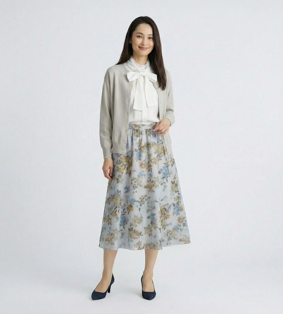 穿くたびに心華やぐアート調フラワープリントのスカート。ふわりと揺れるフレアシルエットも、おしゃれ心を満たしてくれるポイントに。トップスインしてきれいめにコーデするのはもちろん、ゆったりしたトップスとリラックスした着こなしを楽しむのもおすすめです。