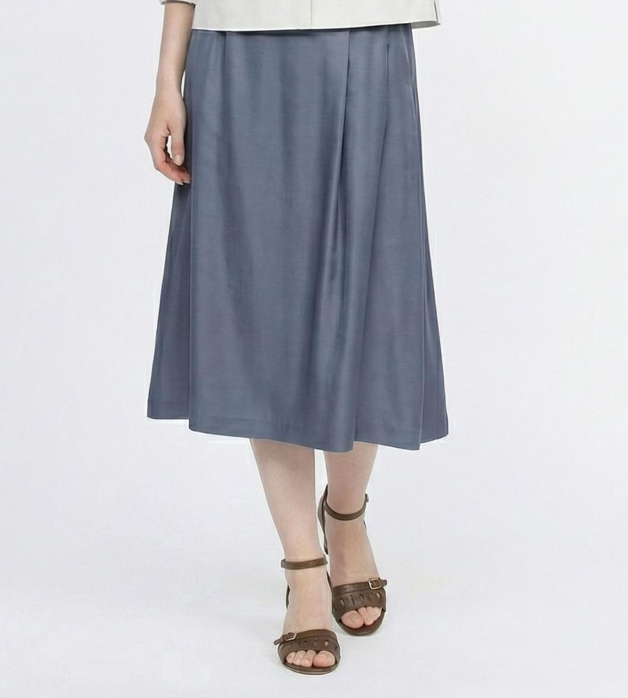 上品なとろみとマットな光沢感が魅力、シャンブレー素材で仕上げたスカートです。左サイドによせたタックが作るさりげないドレープが、シルエットに優雅な立体感をプラスします。あわせるアイテムを選ばないシンプルさで、普段使いはもちろんお呼ばれやオケージョンにもお使いいただけるアイテムです。