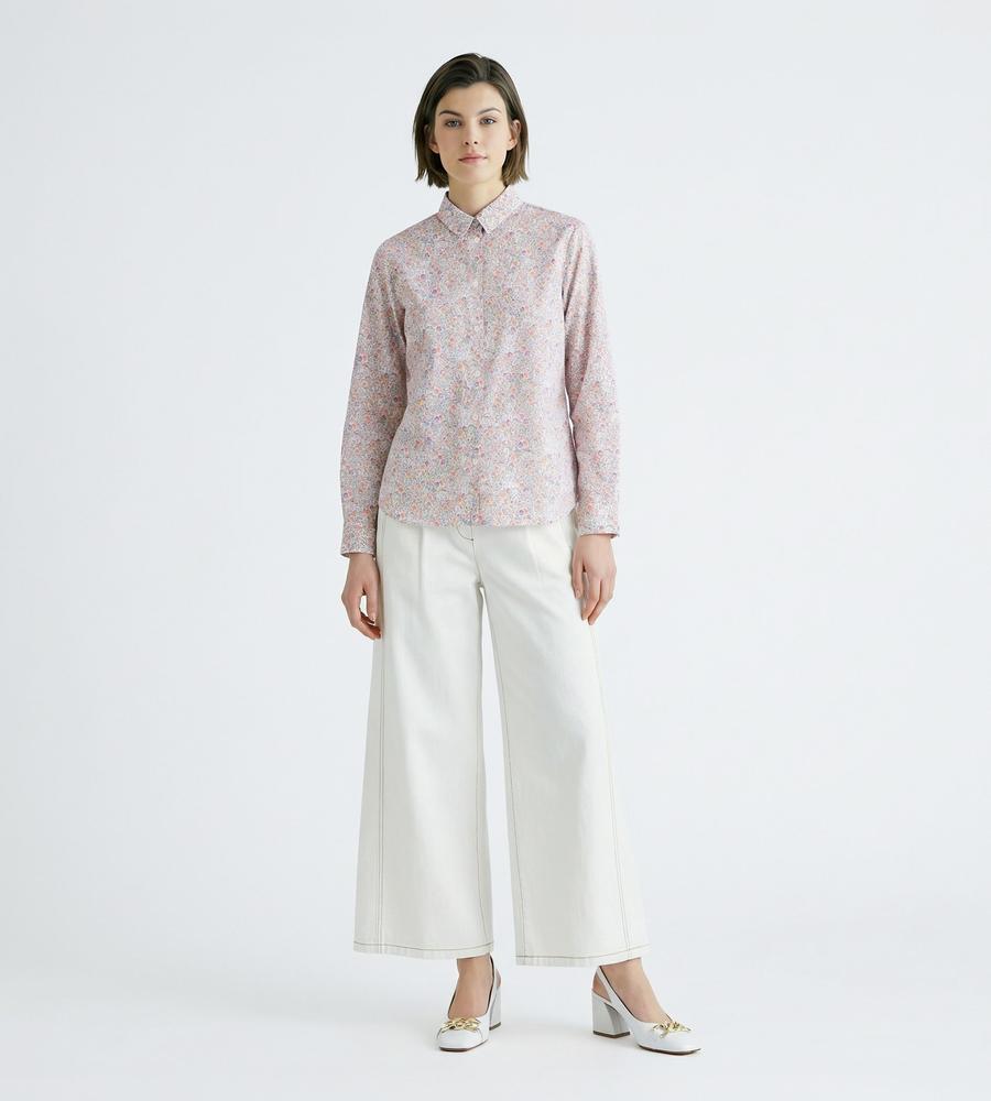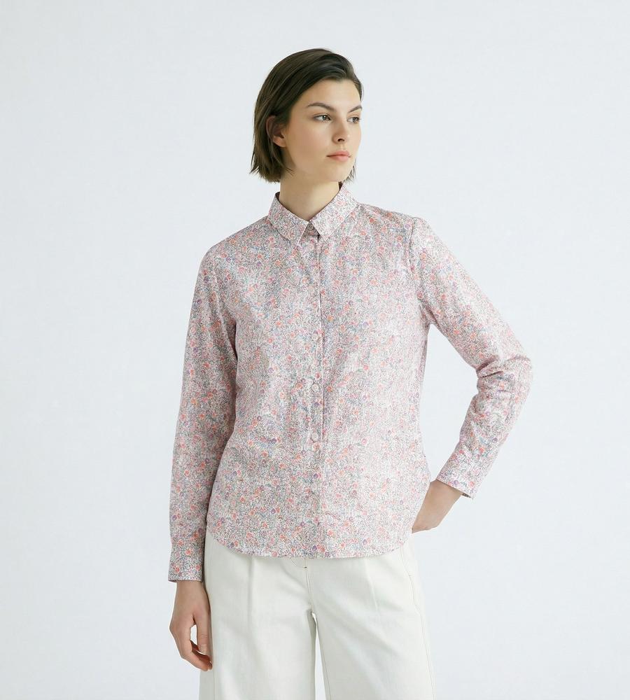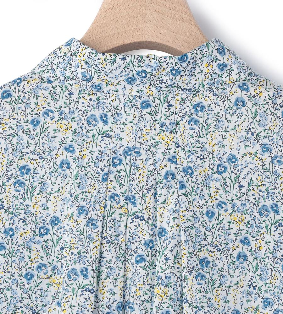 可憐な草花のプリントをぎゅっと詰め込んだブラウス。シンプルなワンツーコーデも、瞬時にドレッシーな表情に。背中と袖口のタック使いも、着こなしを上品に仕上げるポイントです。