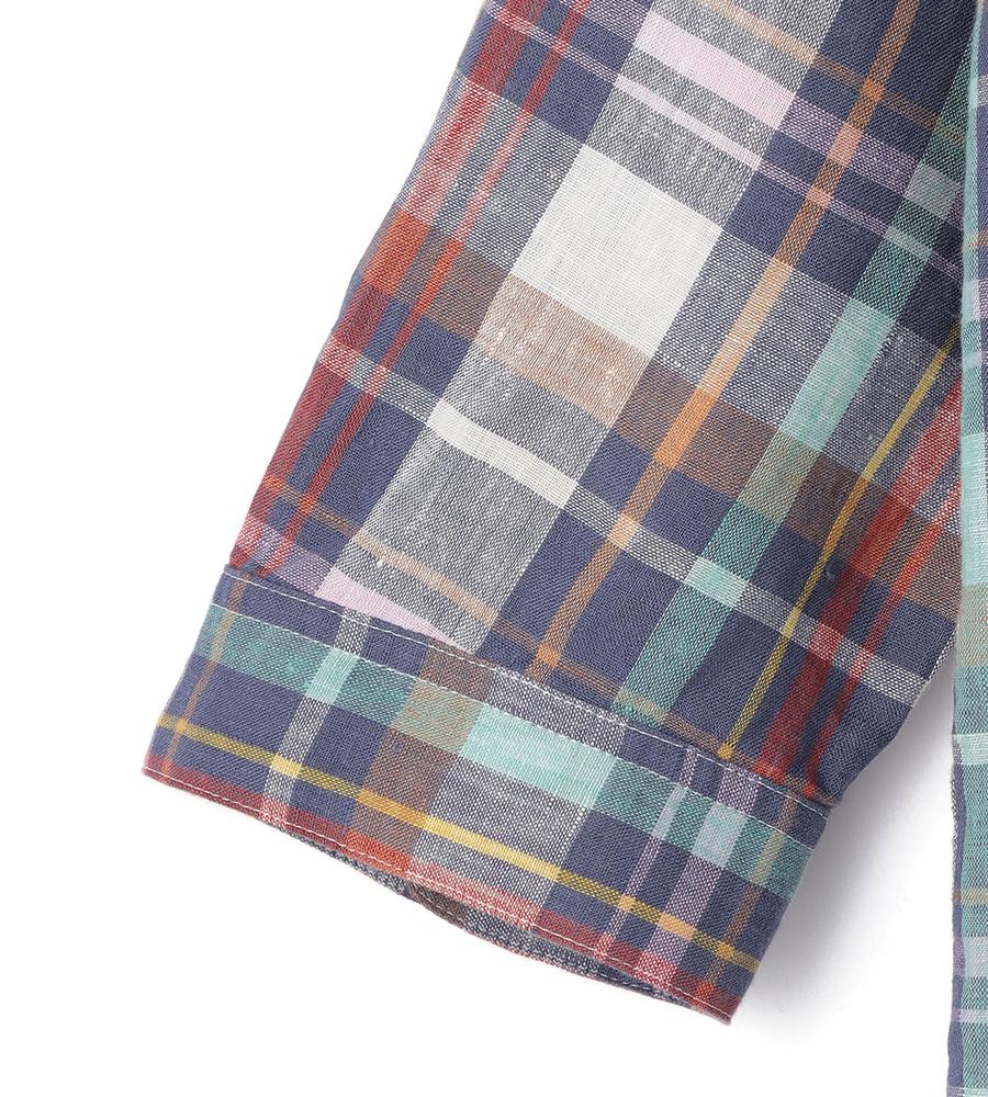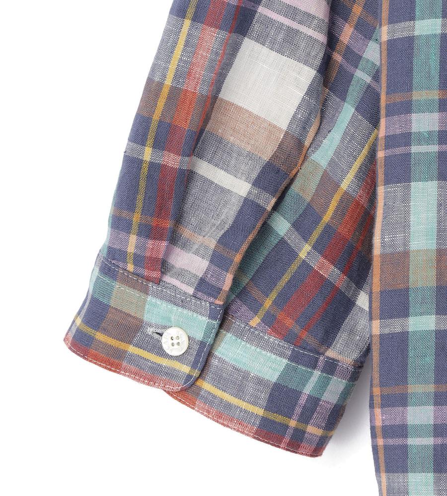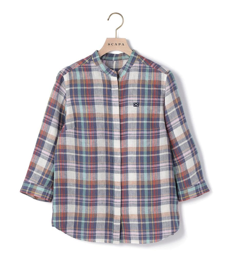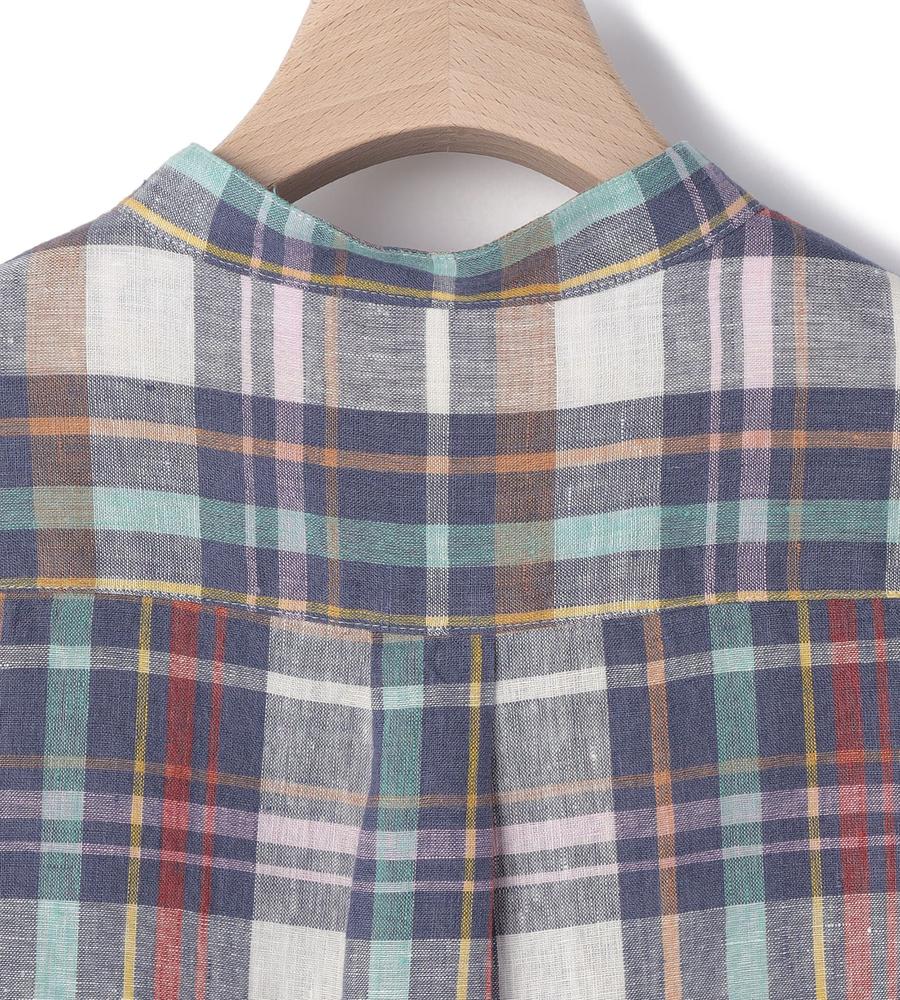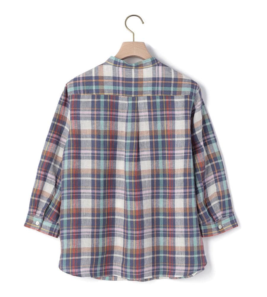 肌にさらっと心地よく着られるリネン100%素材の7分袖シャツです。これからの季節にぴったりなマドラスチェック柄、顔まわりをすっきりと見せてくれるバンドカラーで仕上げました。ボタンを開けて羽織りとしてあわせるのもおすすめ、あわせるアイテム次第でカジュアルにもトラッドにも着られるアイテムです。