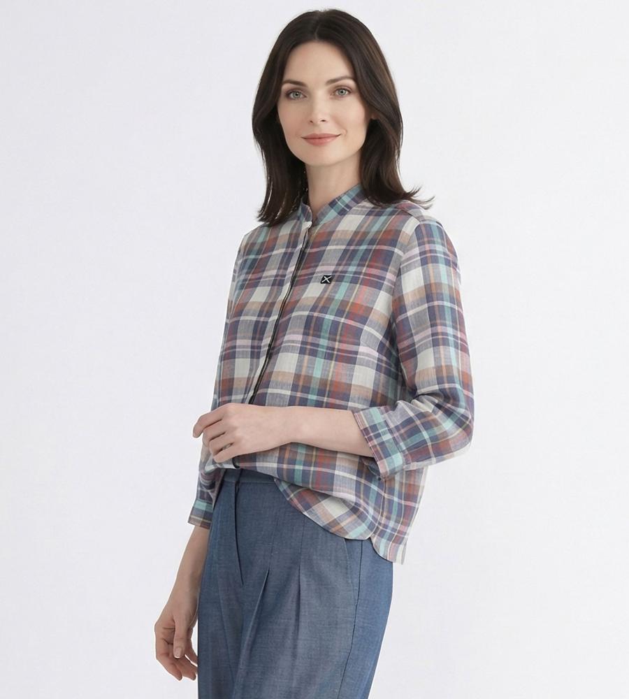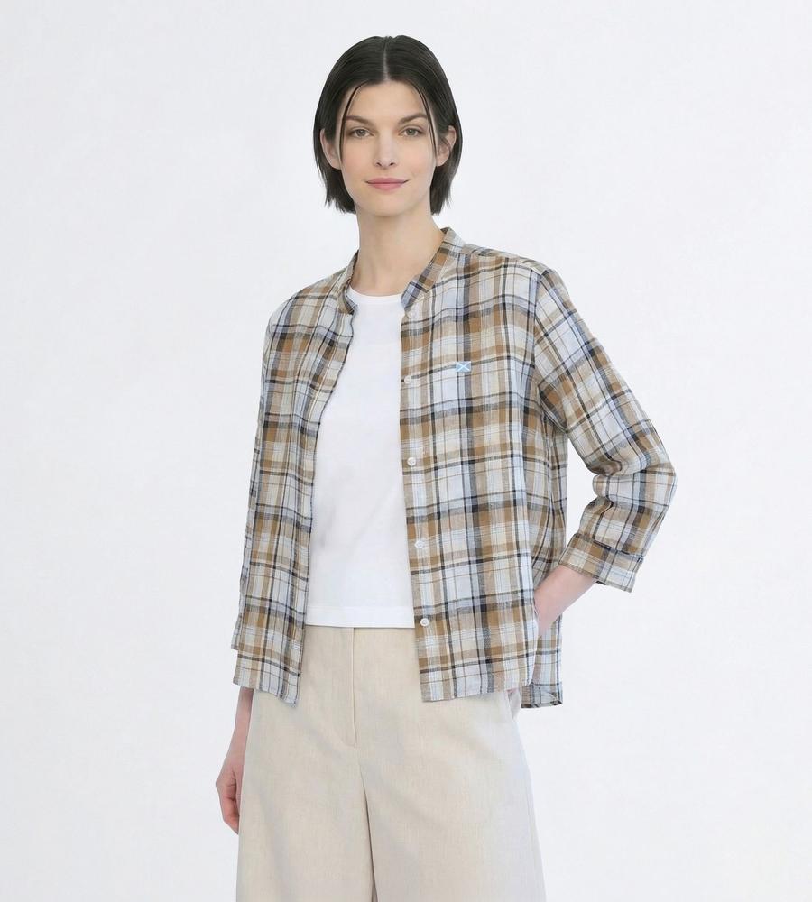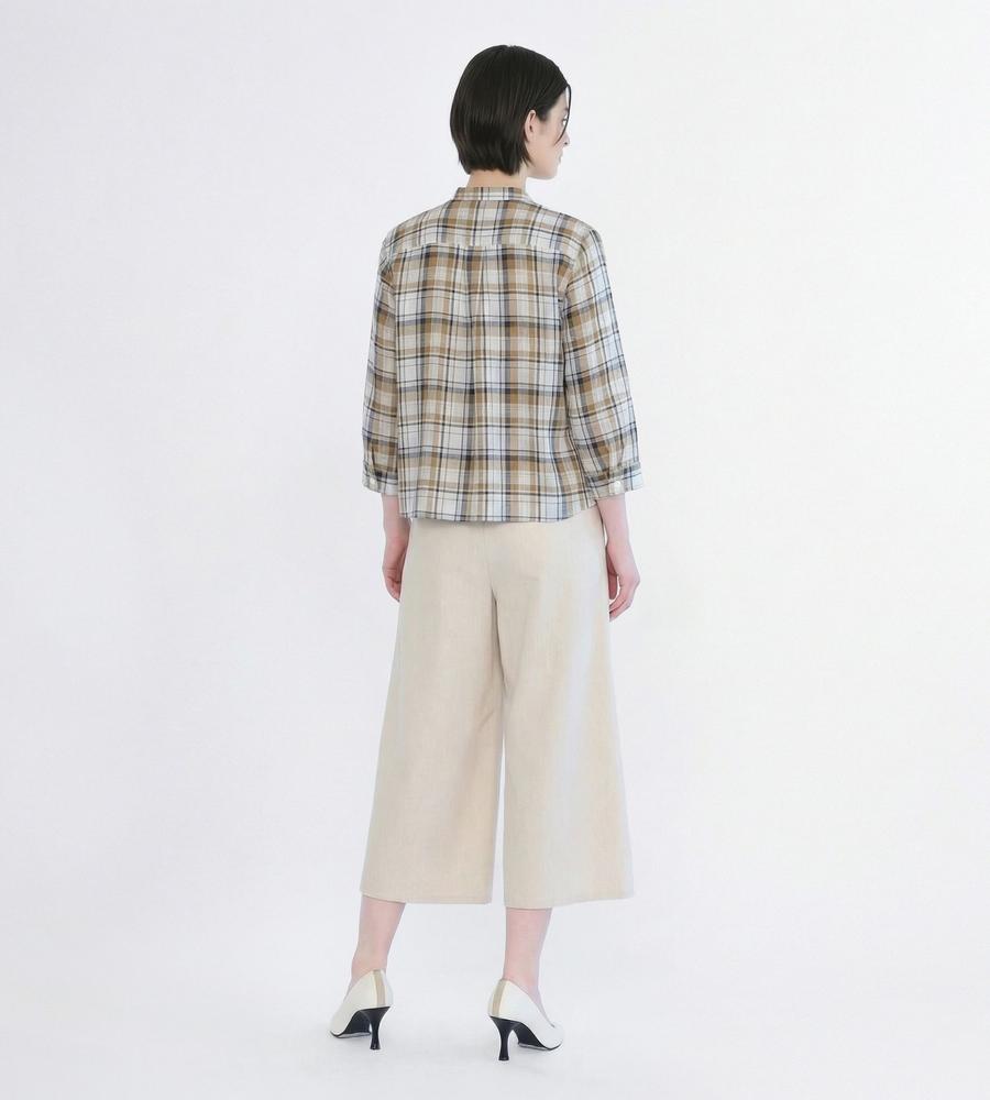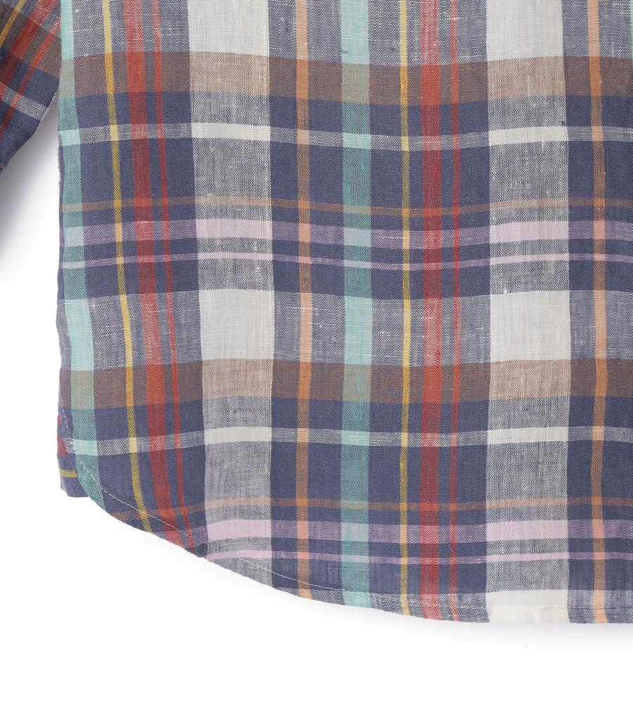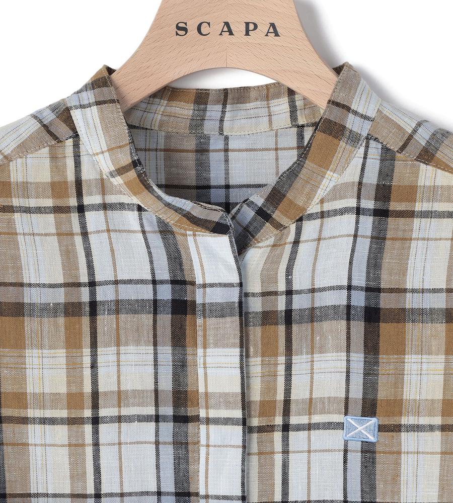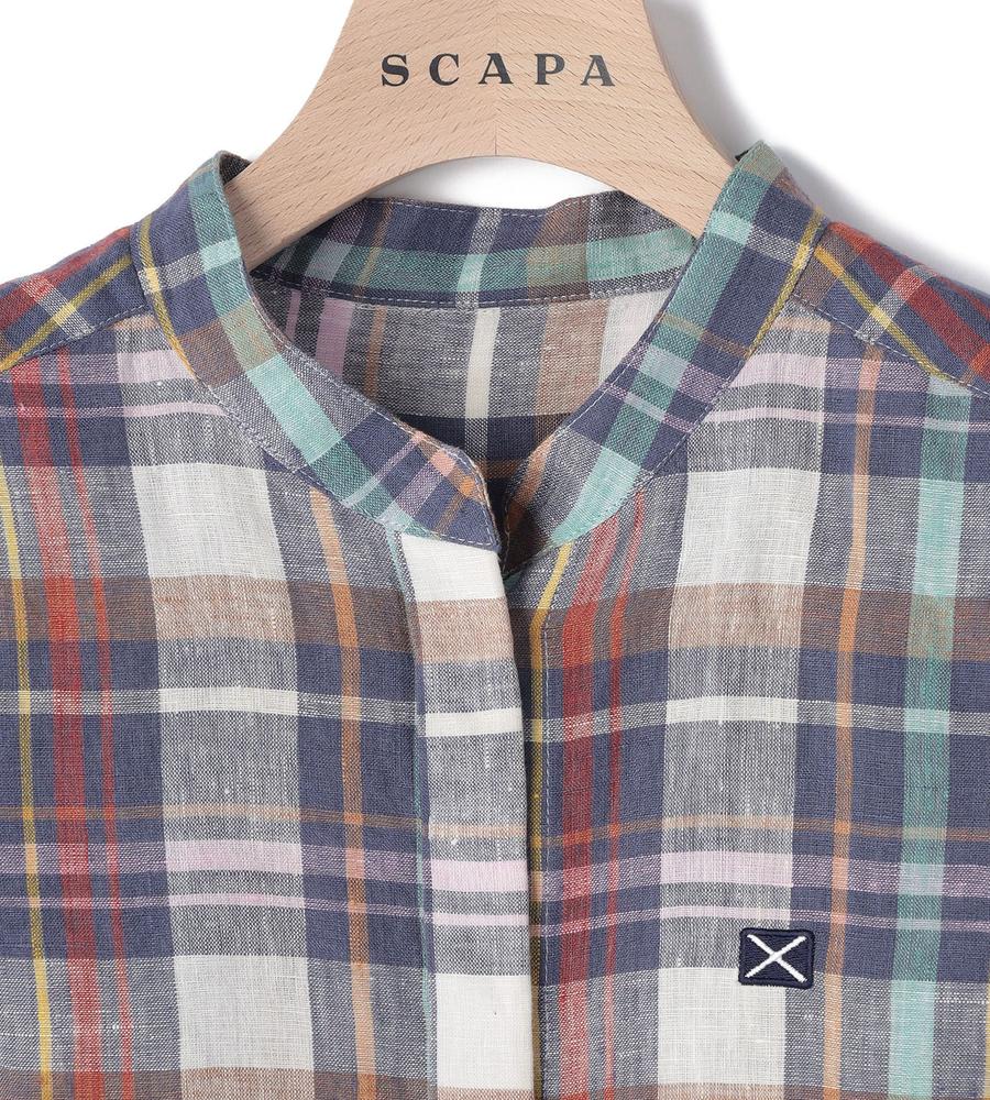 肌にさらっと心地よく着られるリネン100%素材の7分袖シャツです。これからの季節にぴったりなマドラスチェック柄、顔まわりをすっきりと見せてくれるバンドカラーで仕上げました。ボタンを開けて羽織りとしてあわせるのもおすすめ、あわせるアイテム次第でカジュアルにもトラッドにも着られるアイテムです。