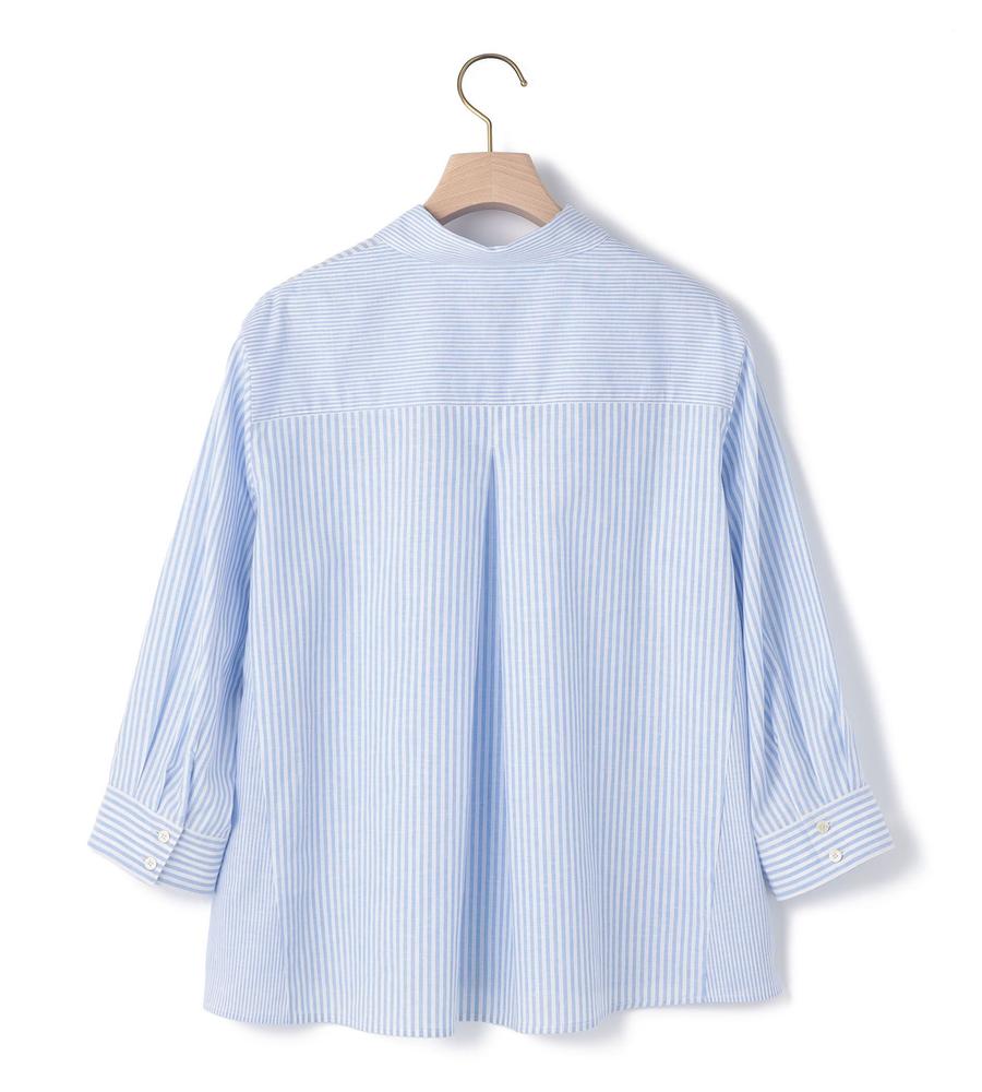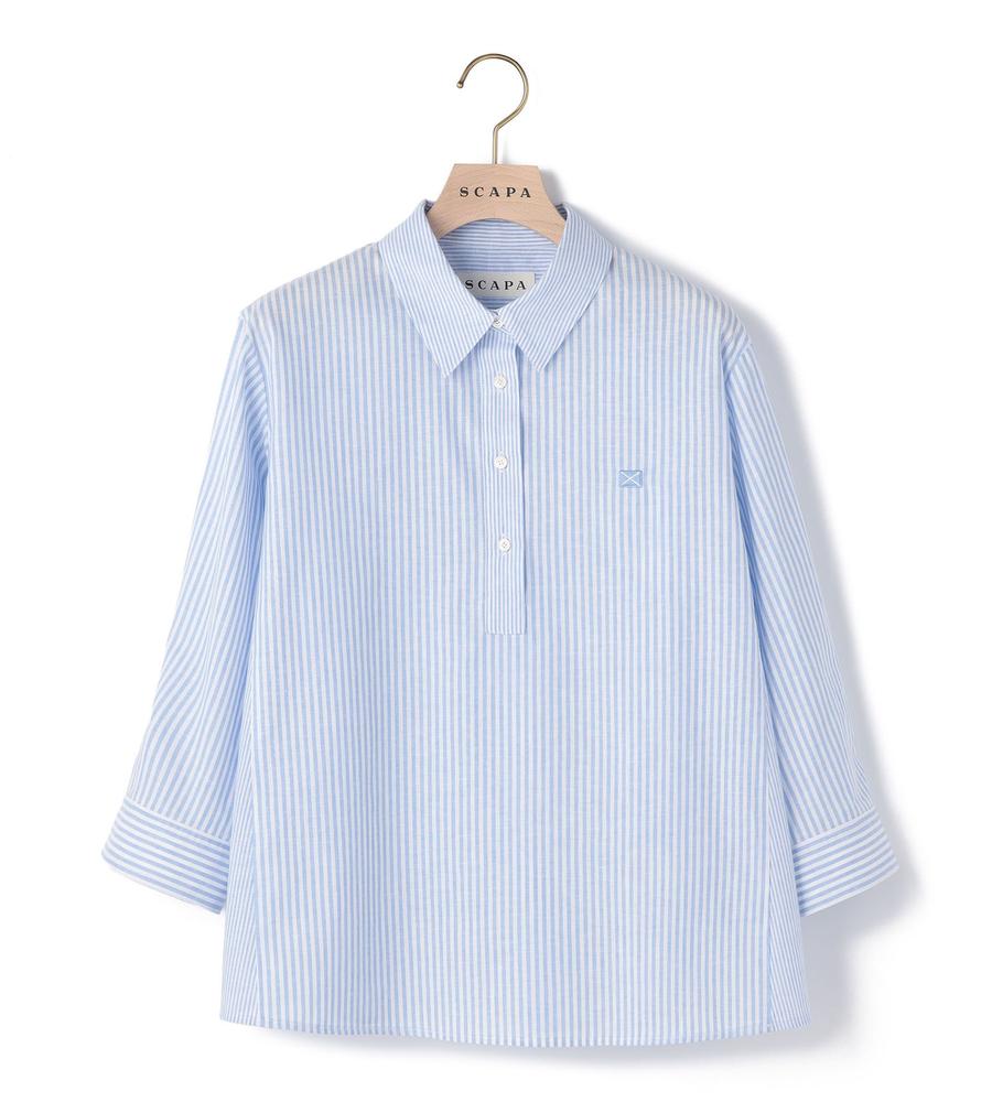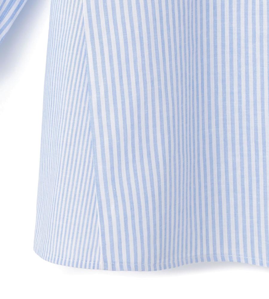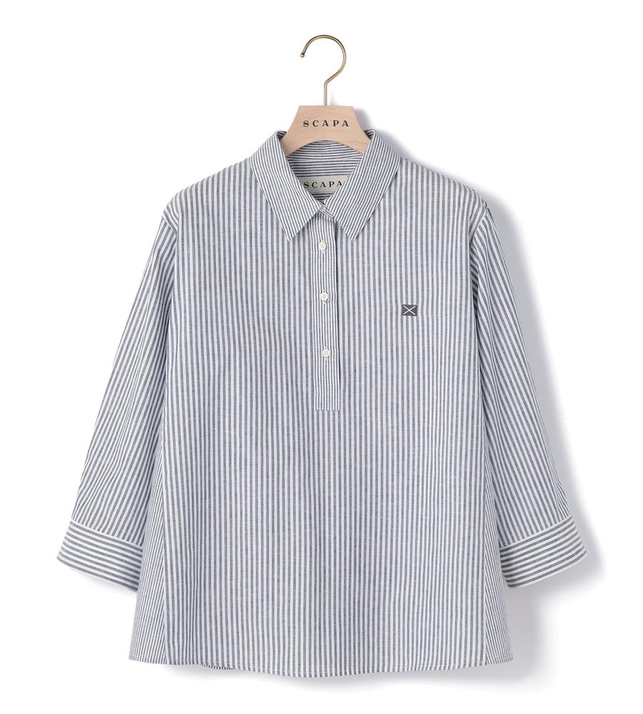 肌にさらっと心地よく着られるリネン100%素材のシャツです。これからの季節にぴったりの爽やかなストライプ柄、手首がのぞく7分袖でロングシーズンお使いいただけます。ハーフボタンがトレンド顔な着こなしをかなえてくれるポイント、きれいめとカジュアルのどちらにも着まわせる欲張りなアイテムです。