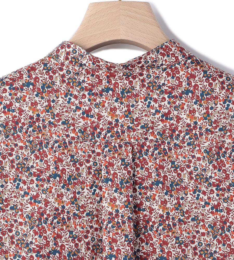 繊細なリバティプリントが上品に映えるブラウス。バンドカラーや比翼仕立てのデザインで、ONにも似合う洗練された一着に。タックインしてもアウトでも着こなしがきまる着丈もポイントです。