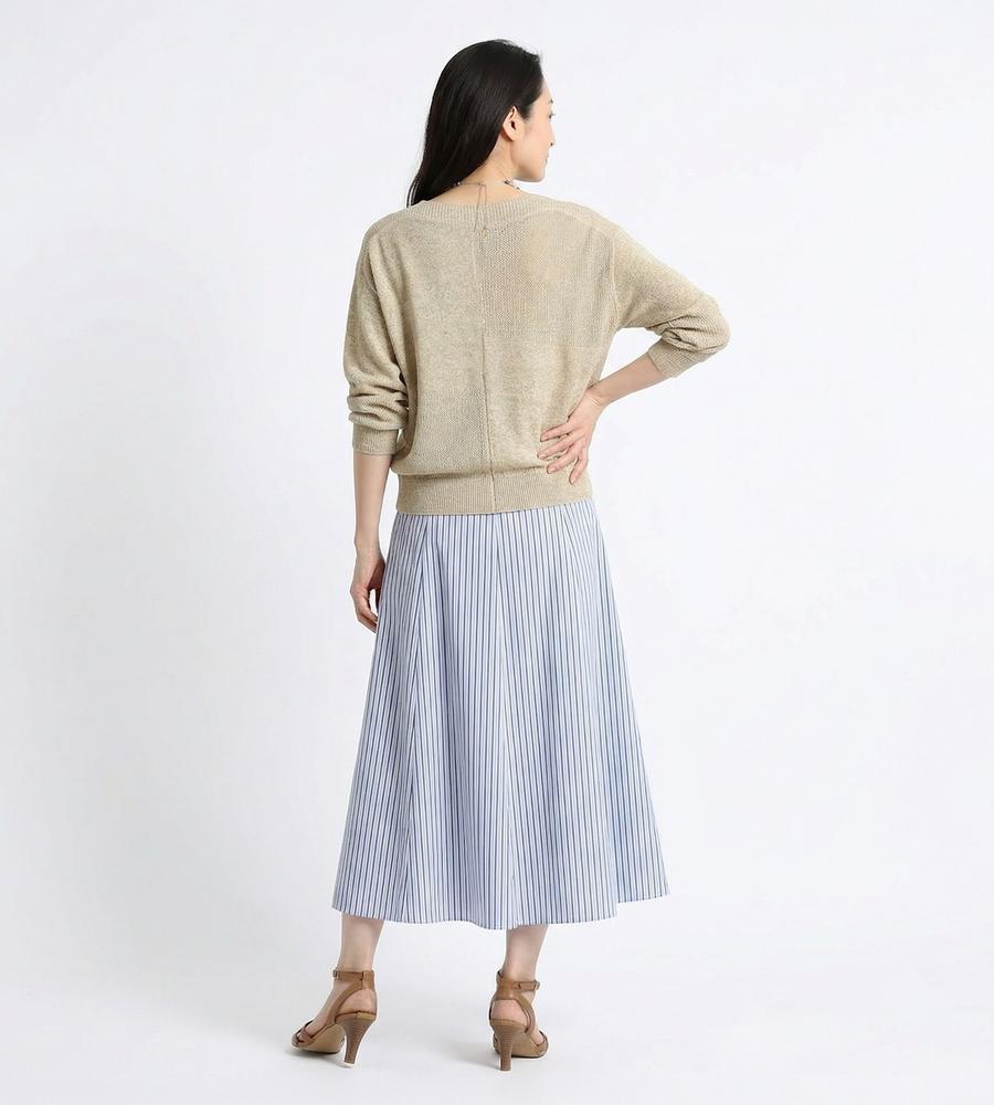 ボートネックのゆるシルエットで大人っぽく着こなせるニット。編み地にさりげなく変化をつけて、デザイン性を高めました。さらりとしたドライタッチで春以降も快適に過ごせそう。