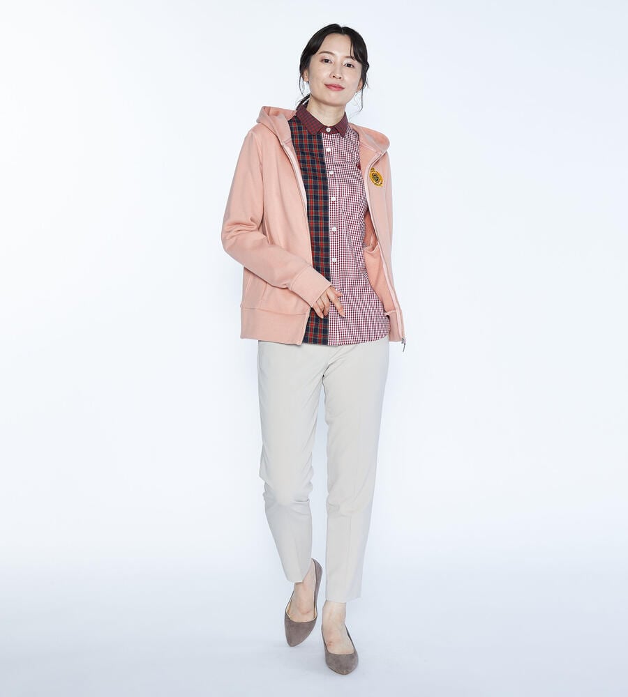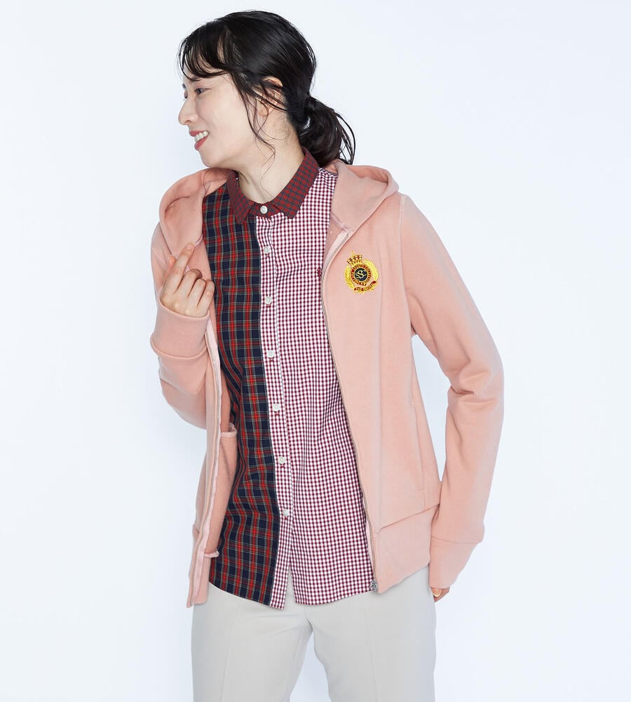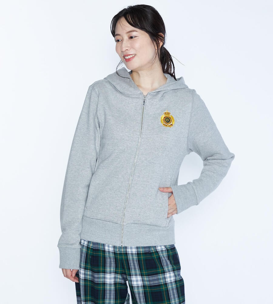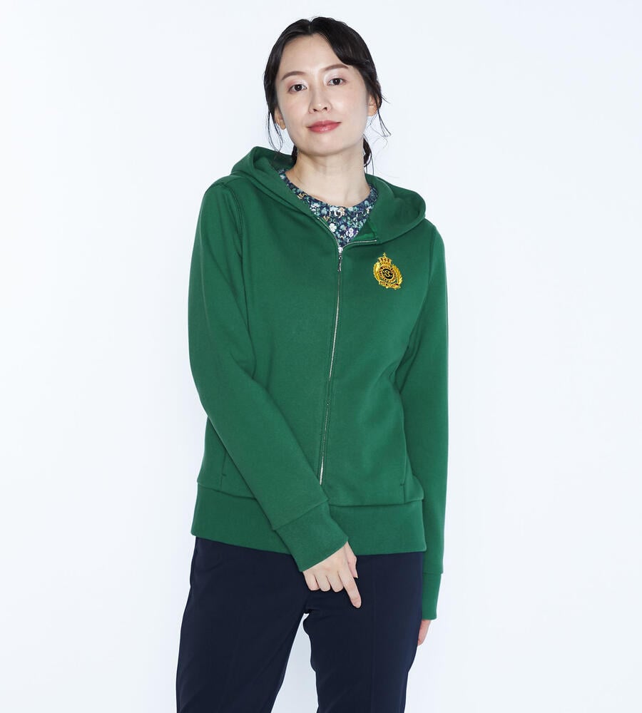 スポーティーエレガントな雰囲気が大人のカジュアルスタイルにマッチするパーカー。フロントはファスナー仕様、サイド切り替え部分にポケットを配置。左胸にあしらったエンブレム刺繍がアクセントに。さらりと羽織れる万能パーカーは何枚あっても嬉しい。