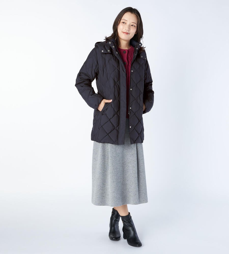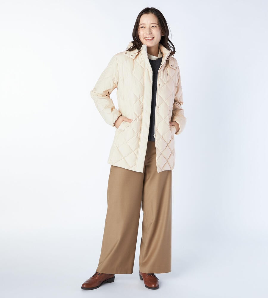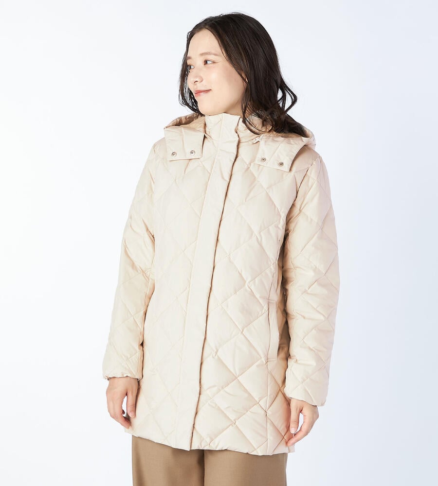 ベーシックな無地にステッチで表情をプラスしたダウンコート。縦ラインの切り替えやウエストをさりげなくシェイプしたシルエットがすっきりと見えるポイントです。丈感は程よく、パンツともスカートとも好相性。フードはジップで着脱ができ、コーディネートやシーンに合わせてのアレンジを楽しめます。