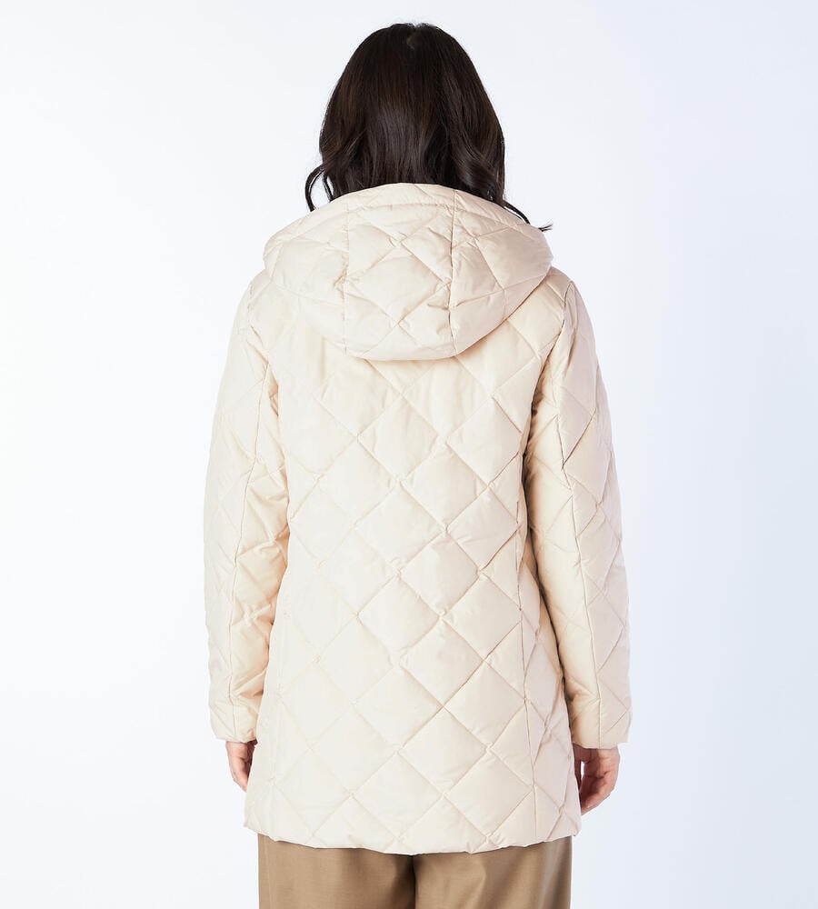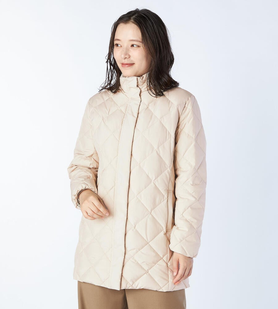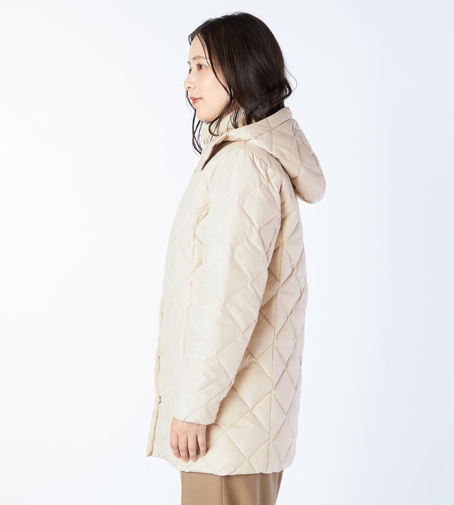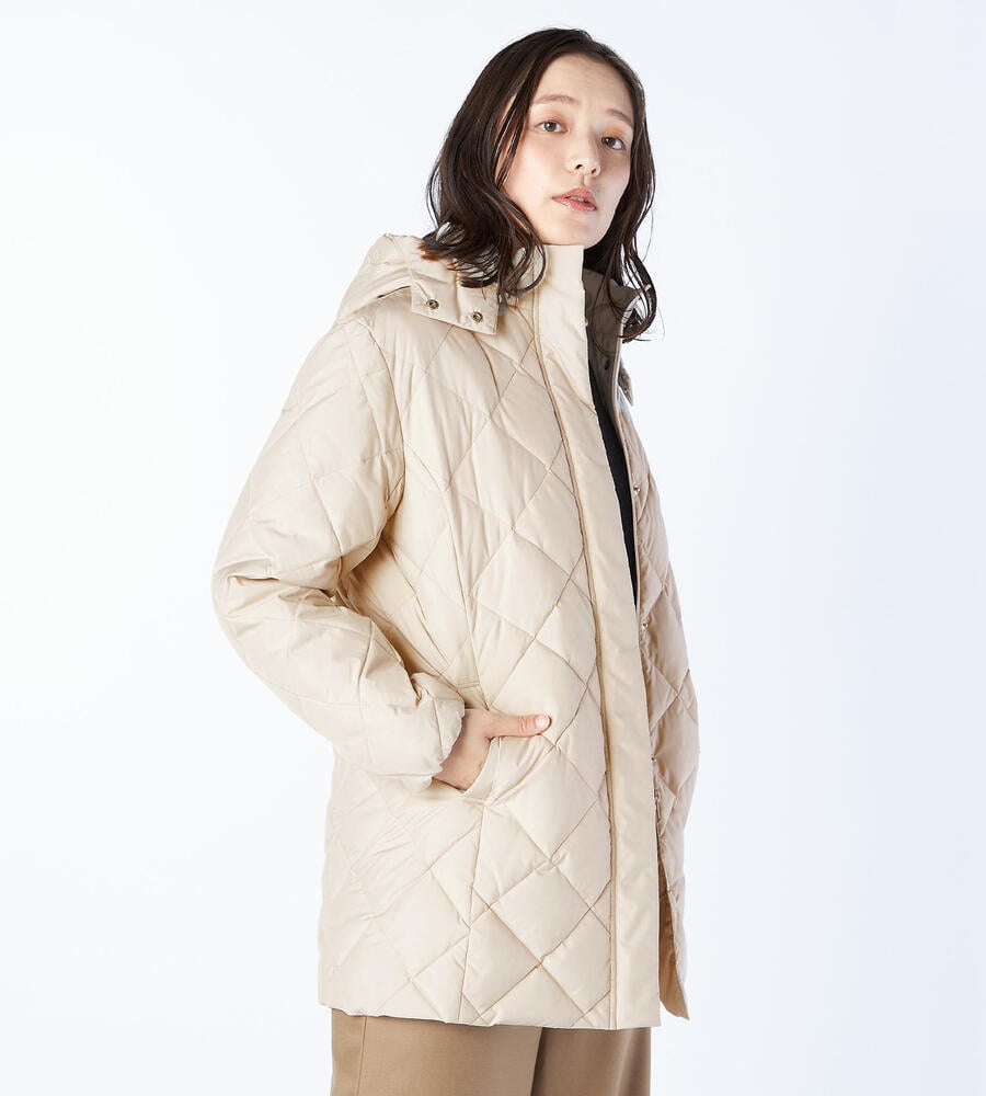 ベーシックな無地にステッチで表情をプラスしたダウンコート。縦ラインの切り替えやウエストをさりげなくシェイプしたシルエットがすっきりと見えるポイントです。丈感は程よく、パンツともスカートとも好相性。フードはジップで着脱ができ、コーディネートやシーンに合わせてのアレンジを楽しめます。