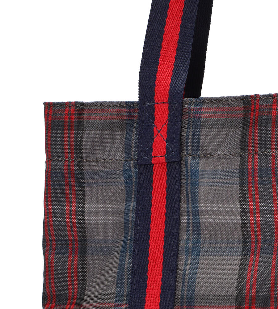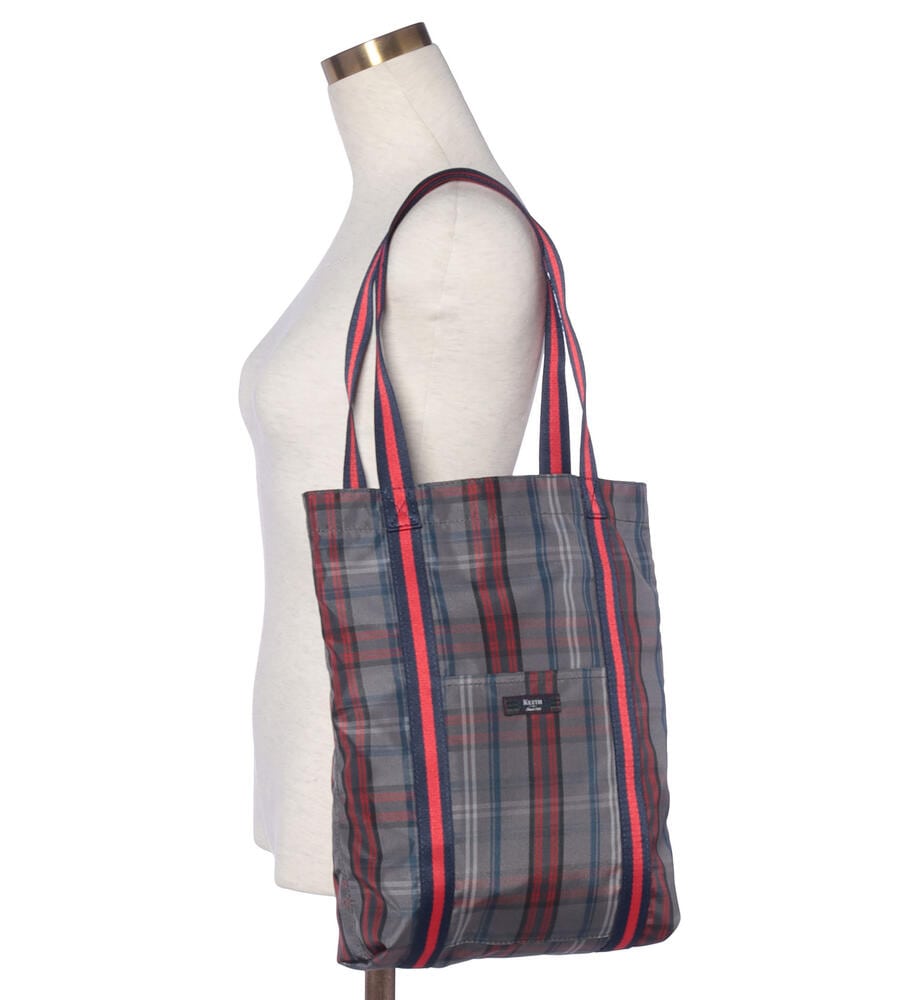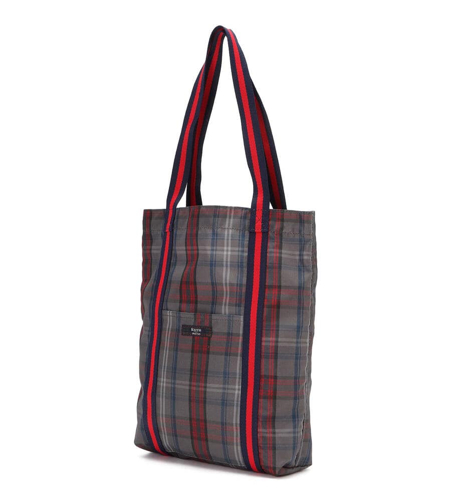 ナイロン素材で扱いやすく、丈夫なトートバッグ。マチがあり荷物がたっぷり入ります。差し色カラーがアクセントのスタイリッシュな持ち手。フロントはブランドロゴタグ付きのポケット付きで、小物の収納にも便利。メインバッグにも、お買い物時などの日常生活のサイドバッグとしても活躍する汎用性の高いアイテムです。