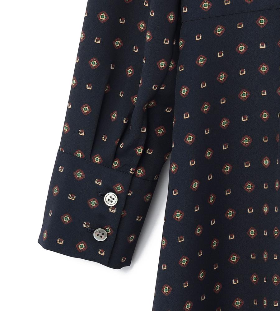 きちんと感とフェミニンな華やぎが一枚で手に入るワンピース。レトロモダンなプリントが、エッジの効いた表情を演出します。ウエスト切り替えが入っていて、ゆったりし過ぎていないのもきれいに見えるポイント。
