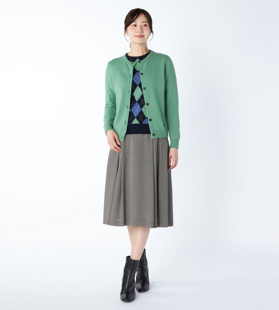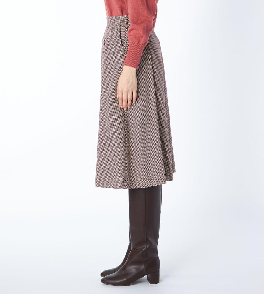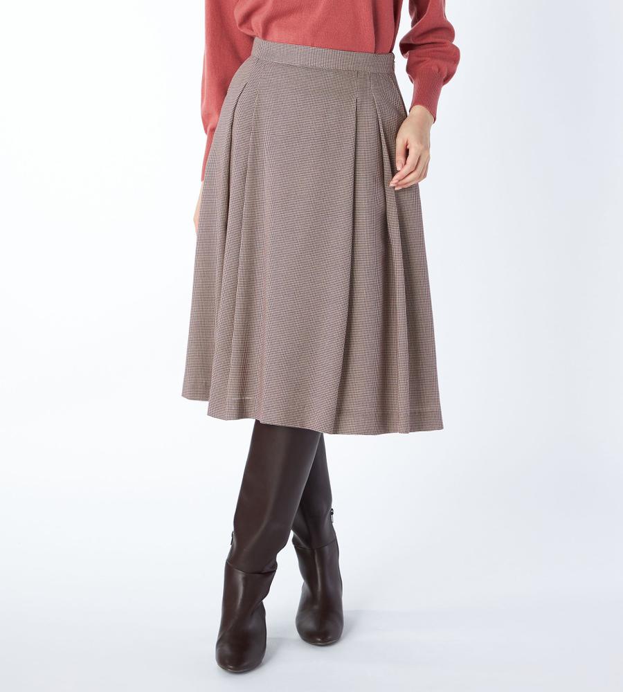 秋冬らしいクラシカルな空気感に包まれた、ハウンドトゥース柄のスカート。ウエスト下にプリーツを潜ませ、オーセンティックな気品を備えた1点です。膝が隠れる程度の着丈を採用した、大人に相応しい仕上がり。ロングブーツなどを合わせるスタイルも今年らしくまとまります。ノーカラージャケットやカーディガンとも好相性です。