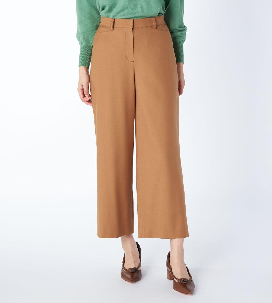 ウール混の上品な風合いで大人っぽく着こなせるパンツ。すとんと落ちるワイドシルエットで、リラックス感も備えているのがうれしい。伸縮性のある素材で動きやすく、活動的に過ごしたい日にも活躍します。