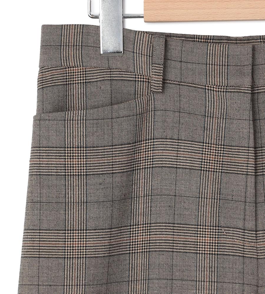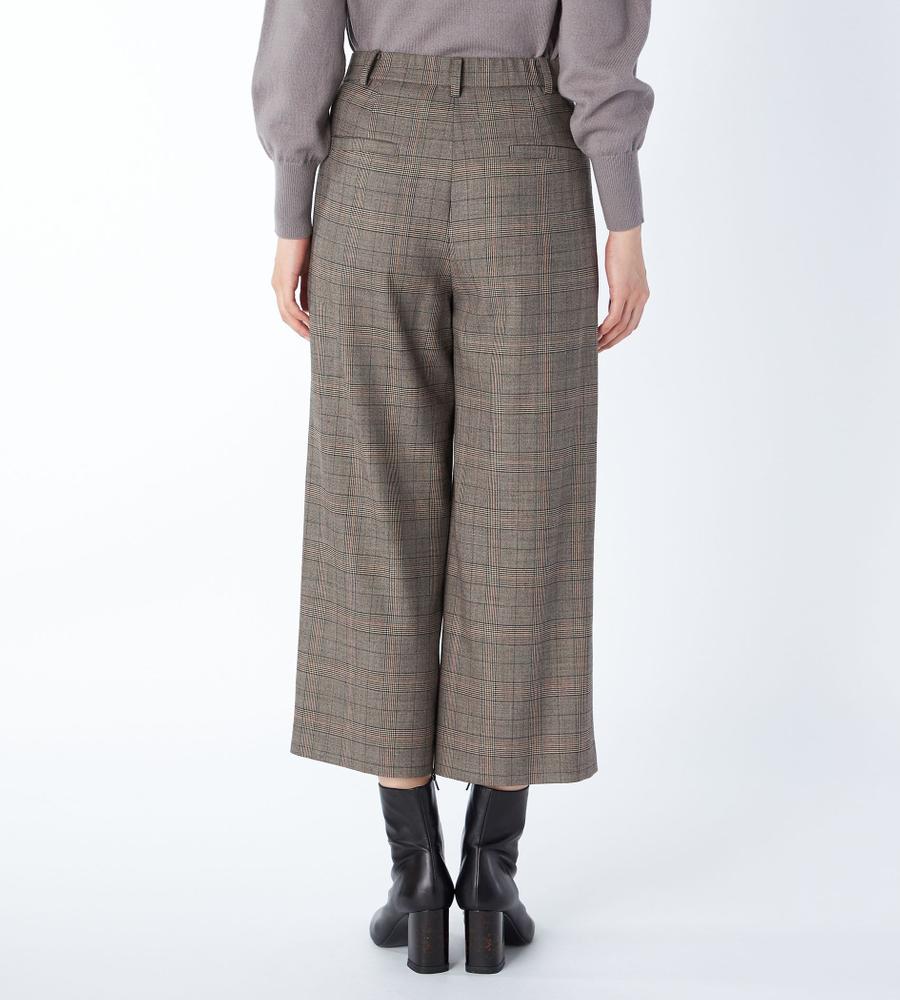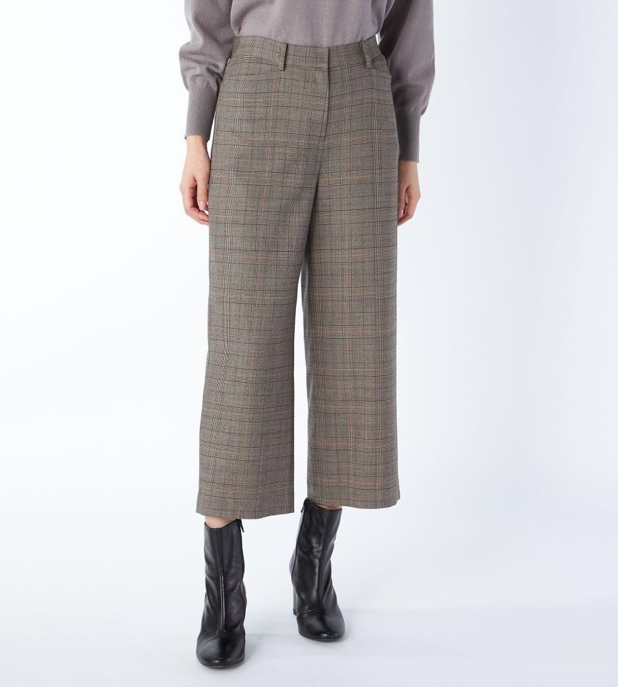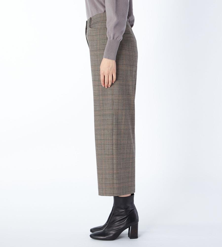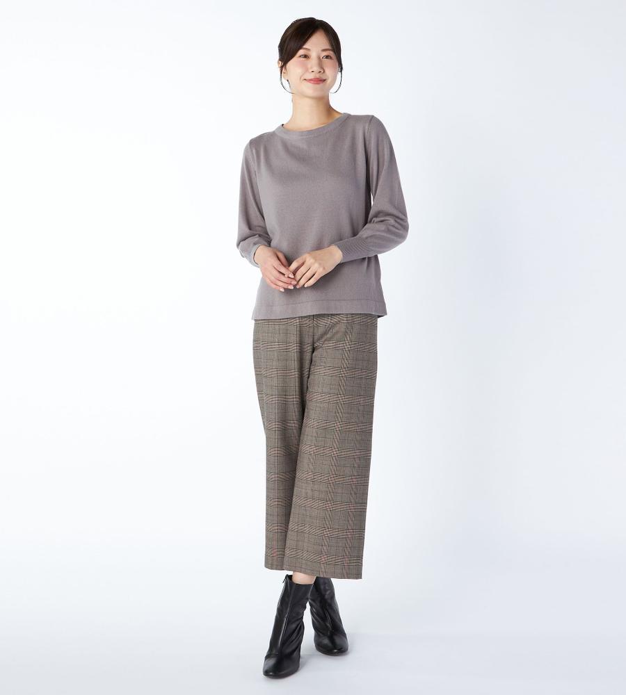 装いが上品なトラッドムードになるチェック柄パンツ。ややワイドなシルエットはレッグラインを拾わず、すっきり着こなせるのがうれしい。ワンツーコーデもシンプルになり過ぎず、デイリーに活躍します。