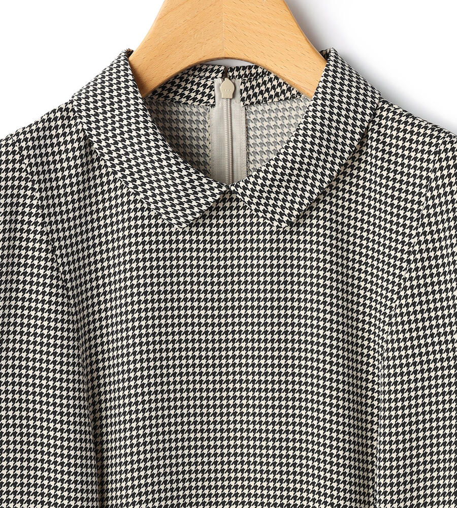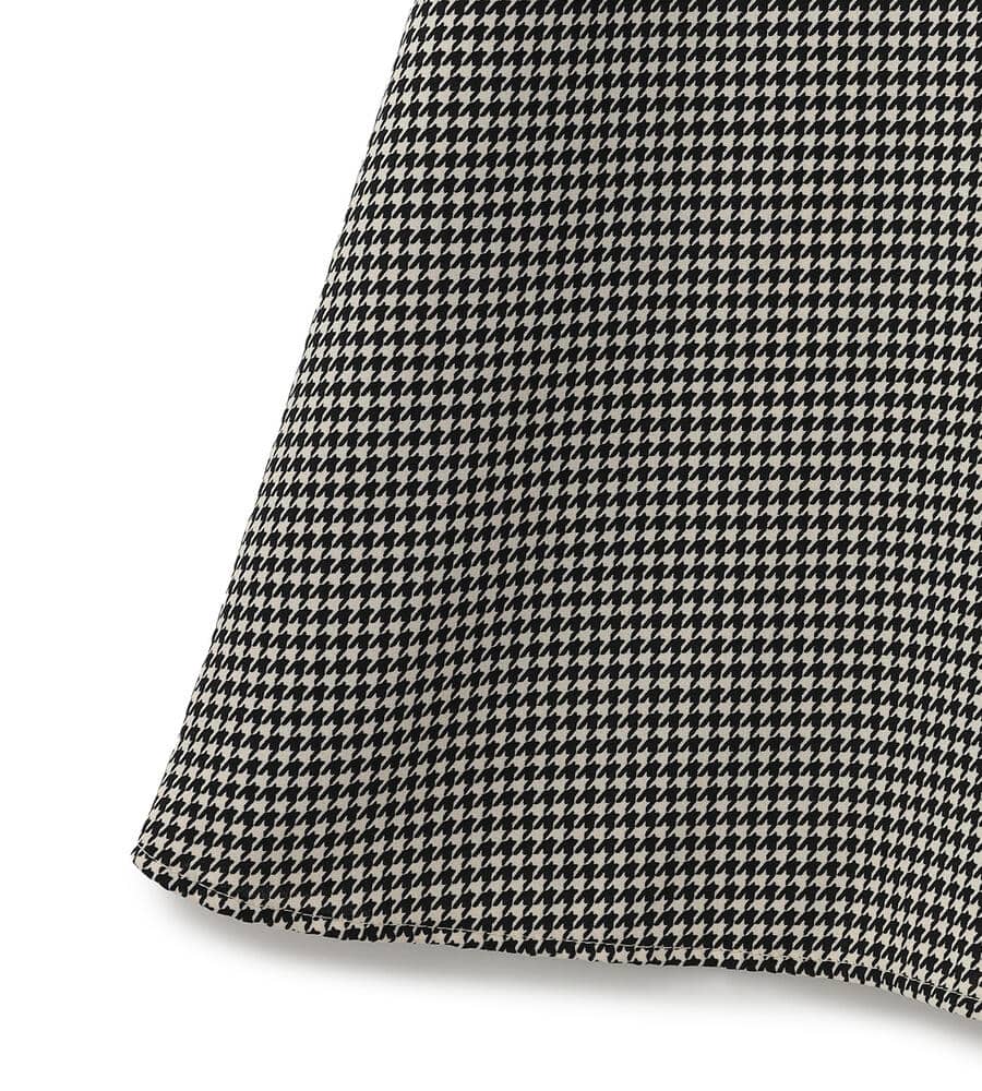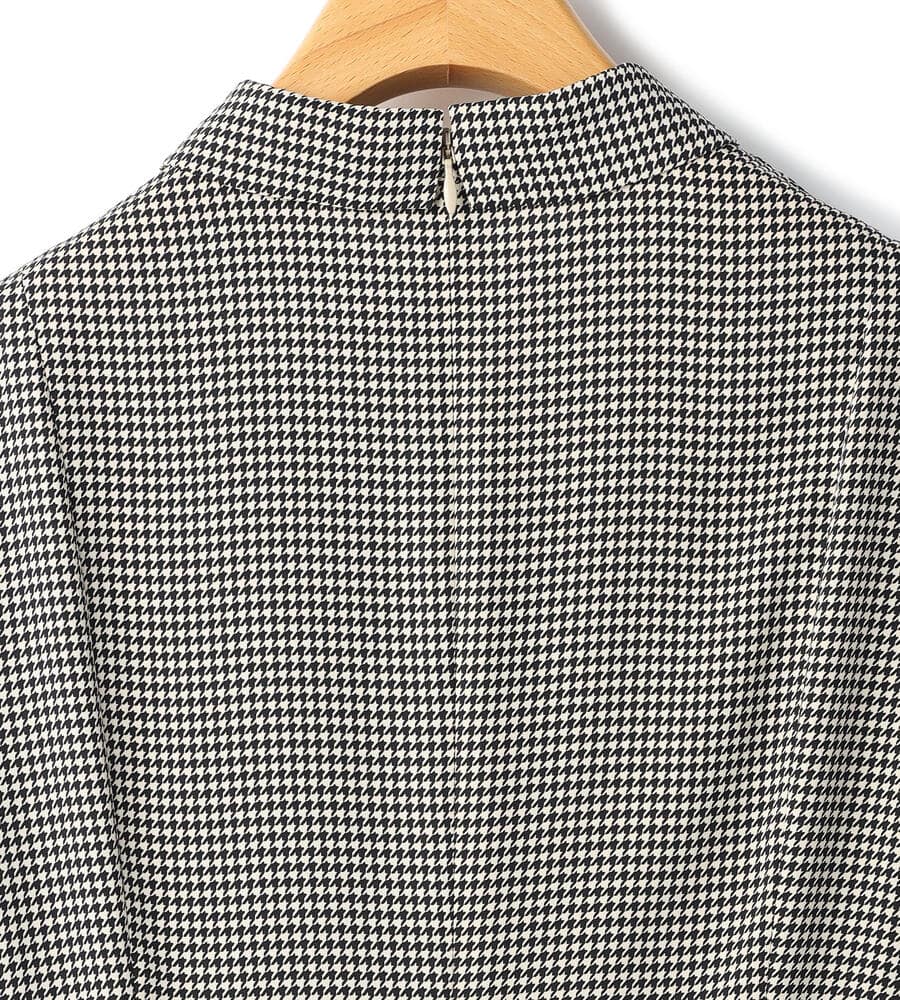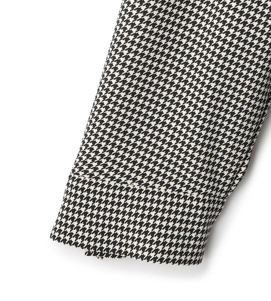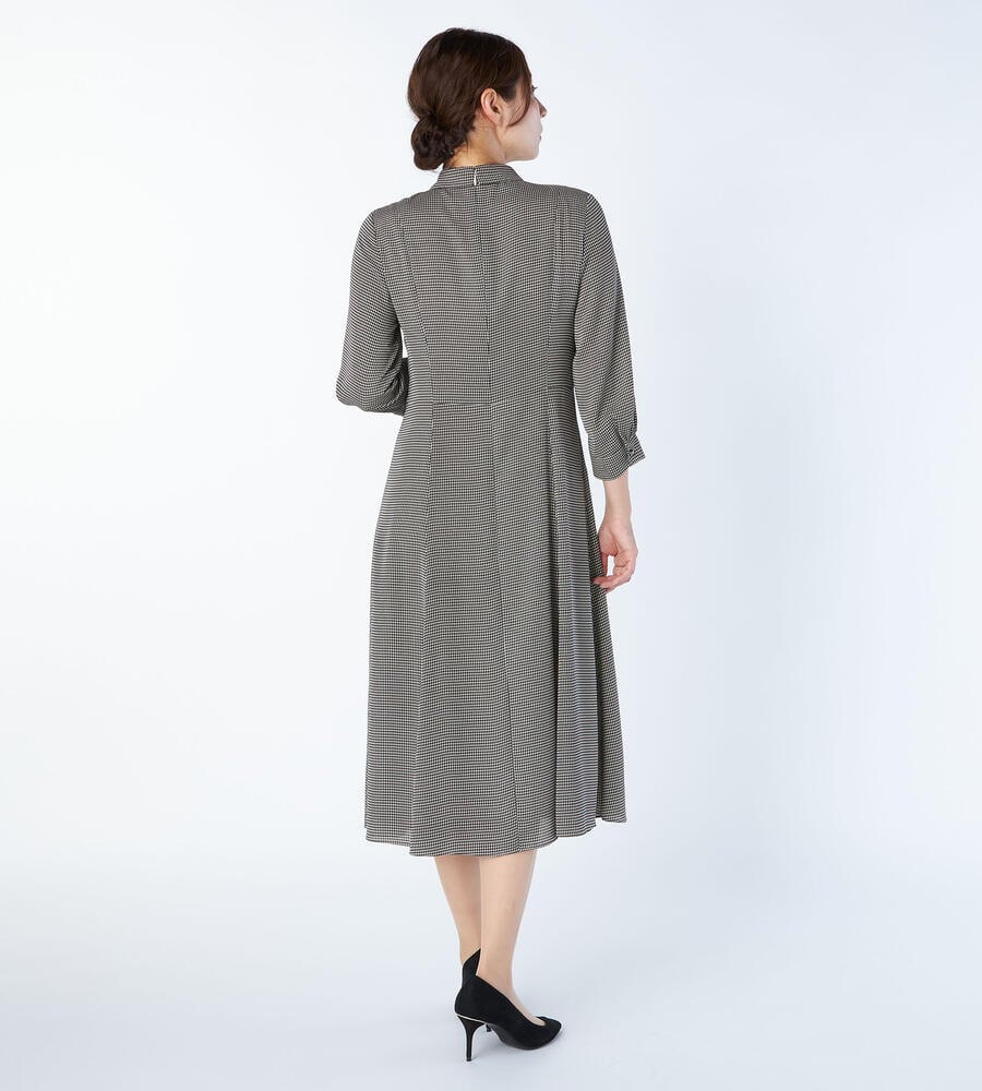 ハウンドトゥース柄プリントがさりげなく華やかな長袖ワンピース。ウエスト位置に切り返しがあり、ロング丈でもバランスよく着こなせます。スカートの美しいドレープがフェミニンなシルエット。落ち感のある上品な生地感と、衿付きのデザインでエレガントなお出かけコーディネートが完成するアイテムです。
