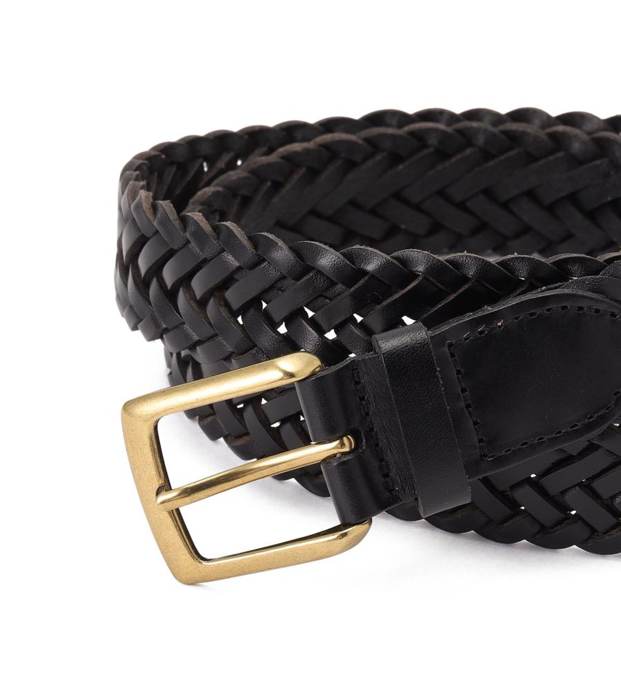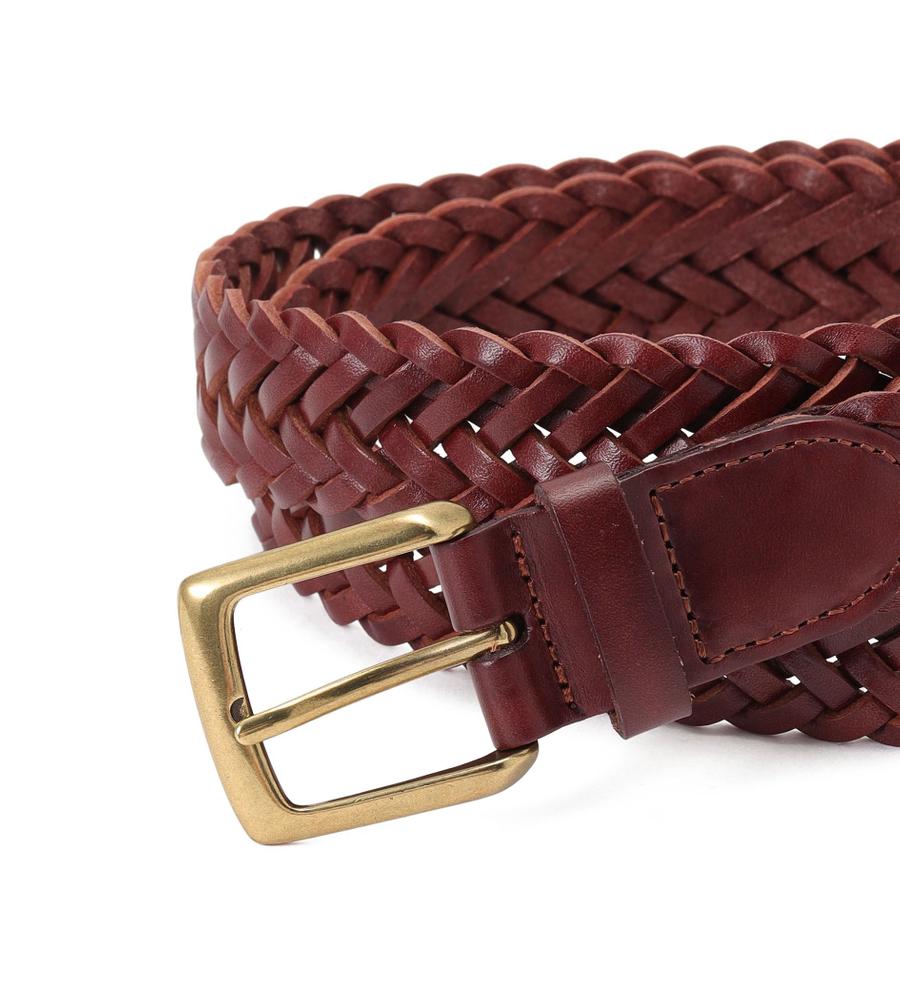 細いレザーを編み込んだ上質なレザーのメッシュベルト。レザーとゴールドバックルとの組み合わせが上品なムード。編み込みの間の好きな箇所に穴を通せるので、ベルト穴を開ける必要がないのもうれしいポイント。デニム、スラックス、チノパンと様々なスタイルにマッチ。着こなしのおしゃれなアクセントになるアイテムです。