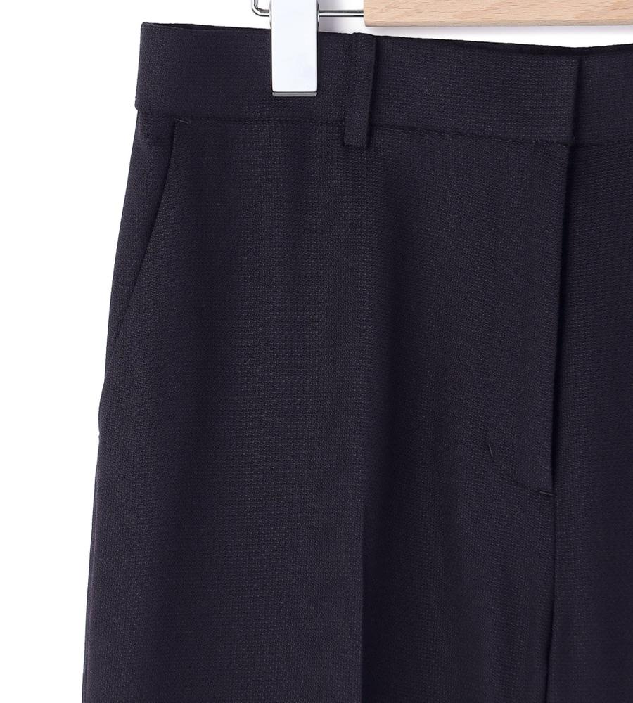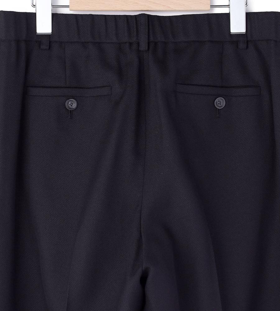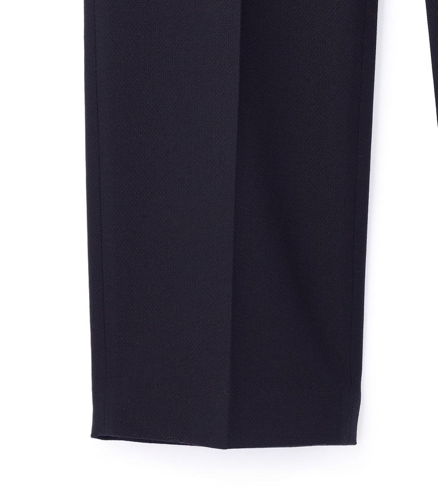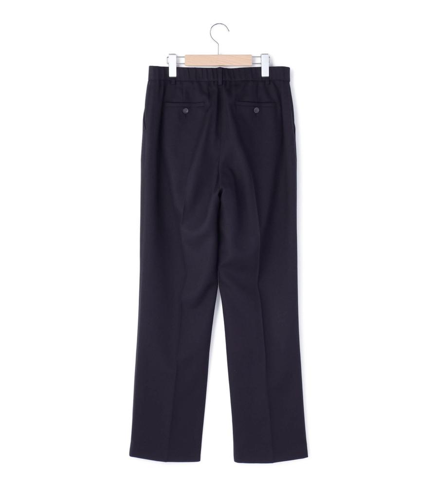 ウールとシルク混合の生地で仕立てたエレガントなパンツ。センタープレス入りでキレイめなムードを演出。裾に向かって細くなるスタイリッシュなテーパード調シルエット。ウエスト後ろはゴム仕様で履き心地快適。シンプルなデザインでトップスを選ばず合わせやすく、ビジネスシーンからお出かけスタイリングまで幅広く活躍するアイテムです。