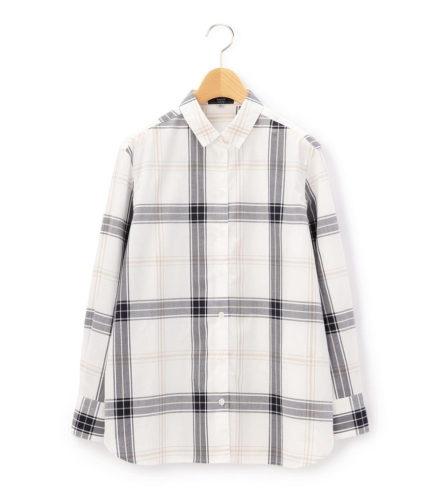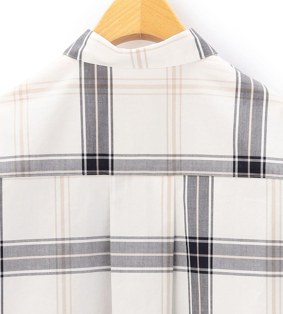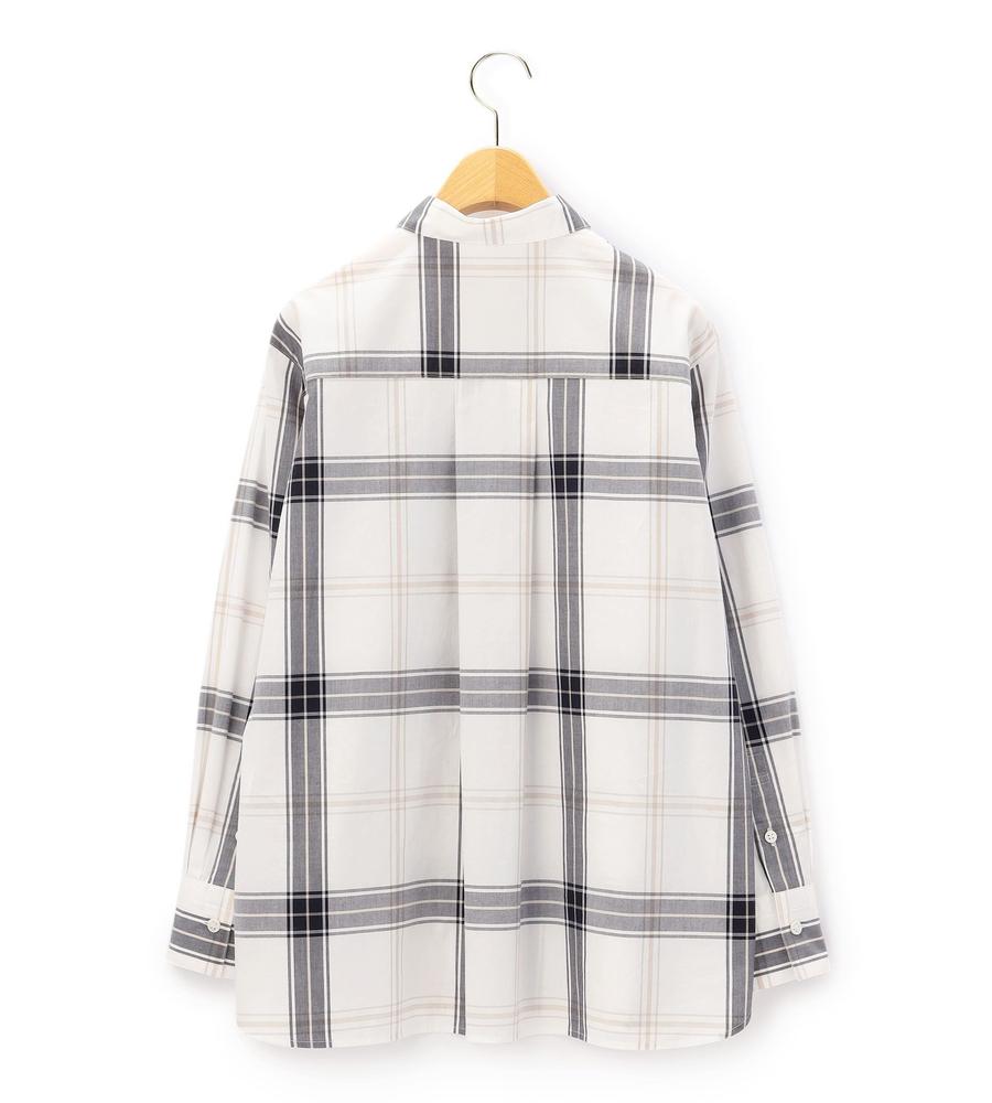 大柄のチェックで着る人の個性を引き立てるブラウス。柄の配置をあえてずらすことで、モードな遊び心を潜ませた1点です。さっぱりとしつつ、密度の高いコットン素材を用いており、クリーンな着こなしを後押し。裾をボトムスにインさせるアレンジや、ジャケットなどを羽織るスタイルにも活躍します。