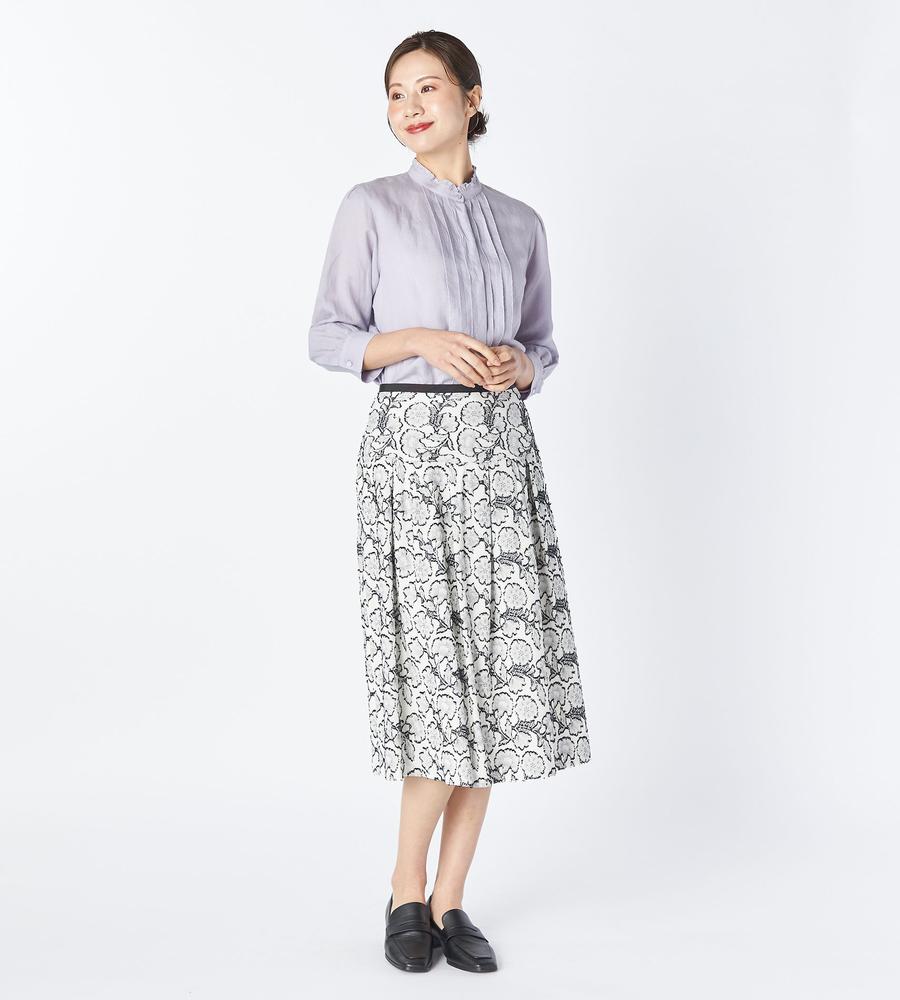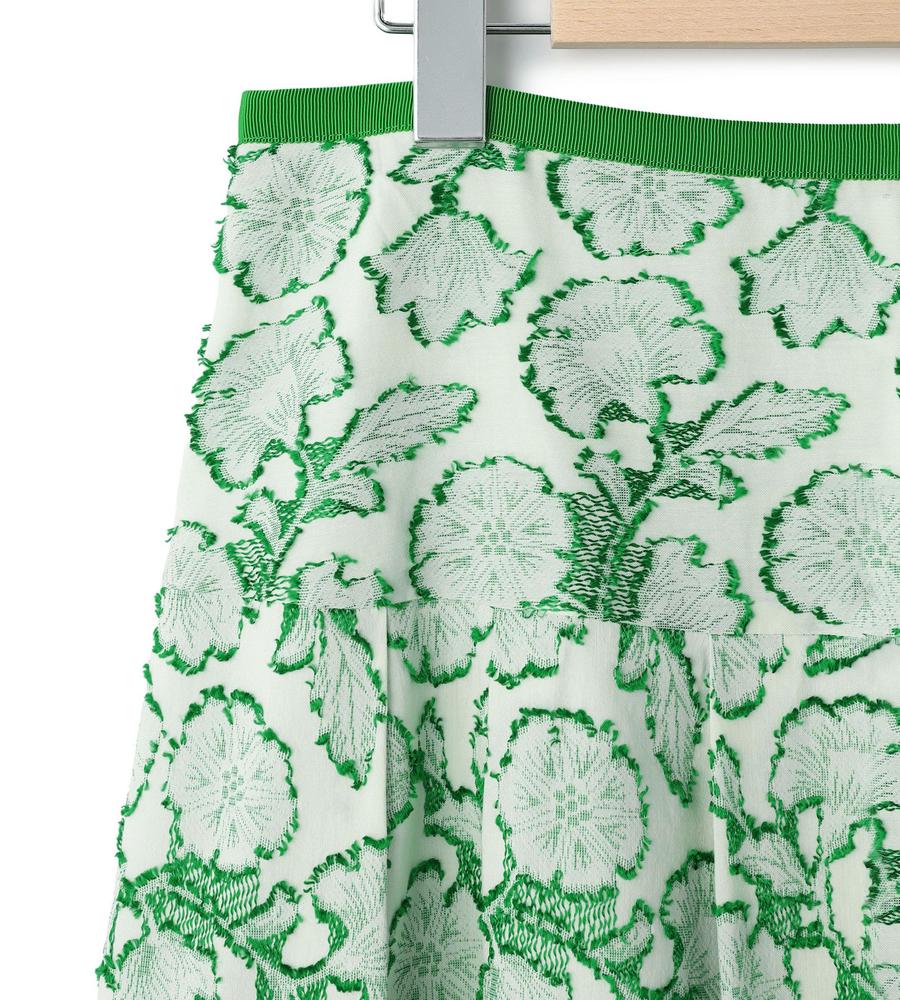 立体感のあるジャカード素材で、遠目にも華やかに着られるスカートです。同色のグラデーションで仕上げたボタニカル柄がこれからの季節にぴったり、ウエスト部分の配色切り替えがさりげないアクセントをきかせます。カラバリによって雰囲気が変わるのも魅力、アイテム次第できれいめにもカジュアルにも着まわせるアイテムです。