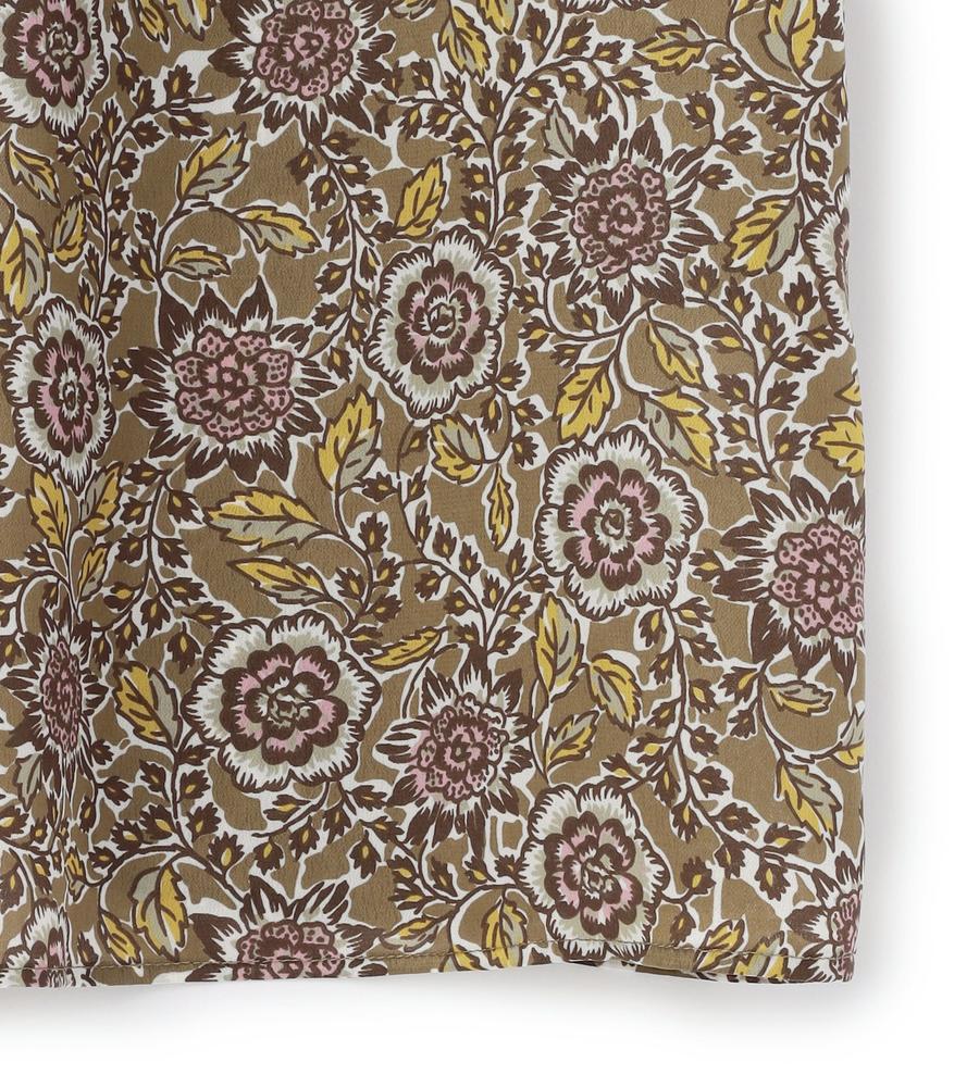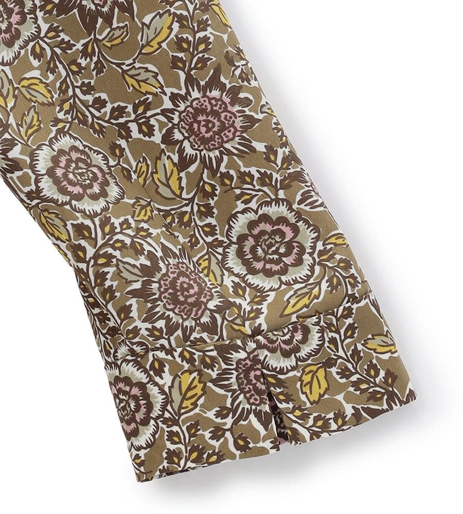 個性派な着こなしをかなえてくれる、フラワー&リーフモチーフのプリント柄ブラウスです。トレンド感のあるスタンドカラー、衿元によせたタックが顔まわりに華やかさをプラスします。1枚で着るのはもちろんカーデやジャケットのインナーとしても存在感があっておすすめ。同柄のパンツとセットでそろえたいアイテムです。