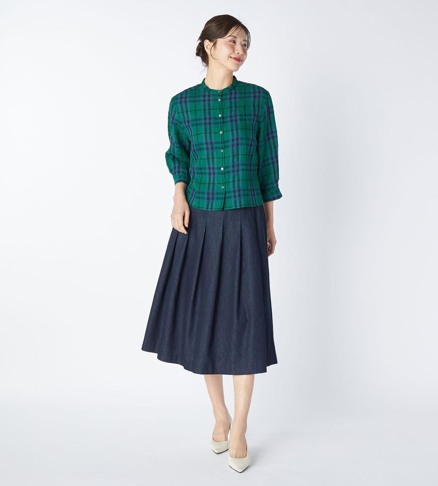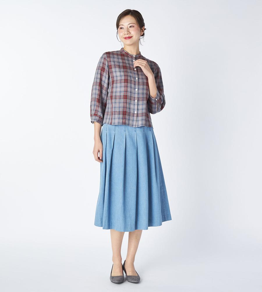 リネンキースチェックブラウス
