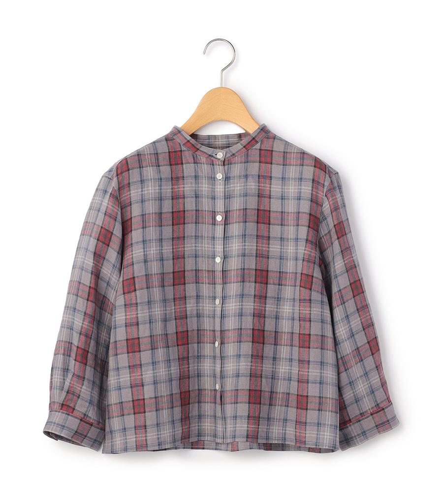 【返品交換送料無料/先行受注】リネンキースチェックブラウス<4月中旬お届け予定>