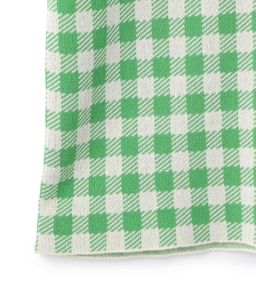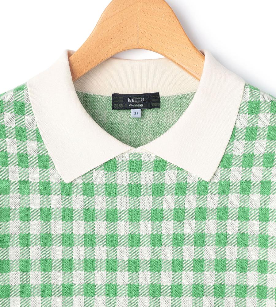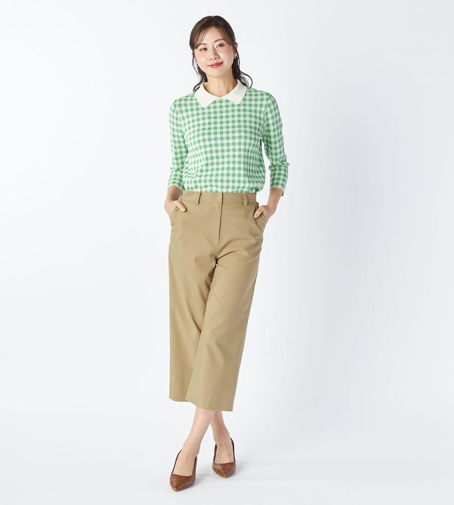 大人ガーリーな着こなしをかなえてくれるギンガムチェック柄のプルオーバーニットです。ポリエステル×コットンの軽やかなニット素材と手首がのぞく短めの袖丈で、インナーとしても着まわししやすくロングシーズンお使いいただけます。レイヤード風にデザインした配色切り替えの衿もアイキャッチな1着です。