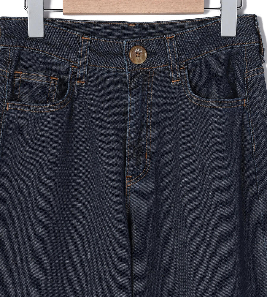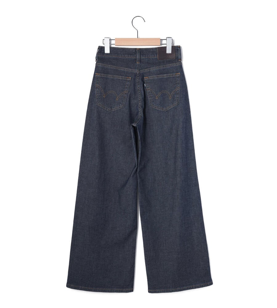 着こなしやすくさわやかなブルードビー織りのパンツ。デニムアイテムで有名な老舗ブランドEDWIN(エドウィン)とのコラボレーションアイテムです。裾に向かって広がるワイド幅のシルエットが今年らしいデザイン。パンツながら、スカートのようなフェミニンなボリューム感があり華やかな雰囲気が魅力です。