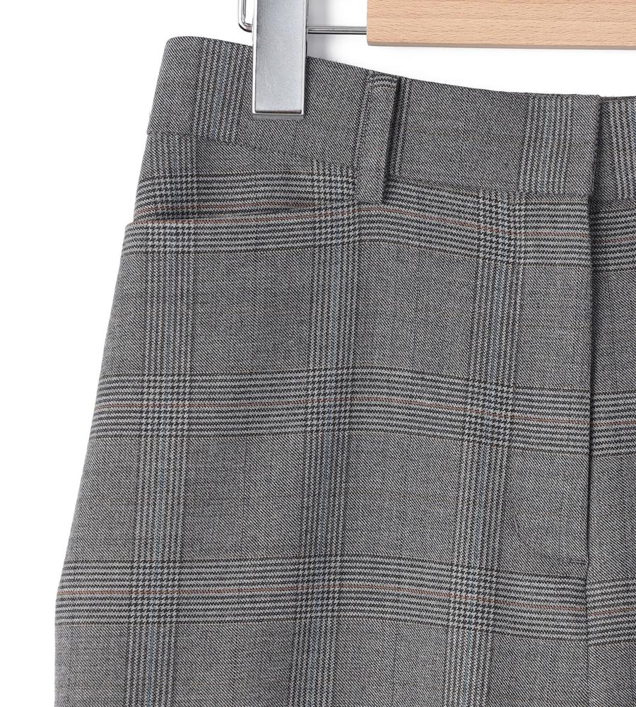 装いが上品なトラッドムードになるチェック柄パンツ。ややワイドなシルエットはレッグラインを拾わず、すっきり着こなせるのがうれしい。ワンツーコーデもシンプルになり過ぎず、デイリーに活躍します。