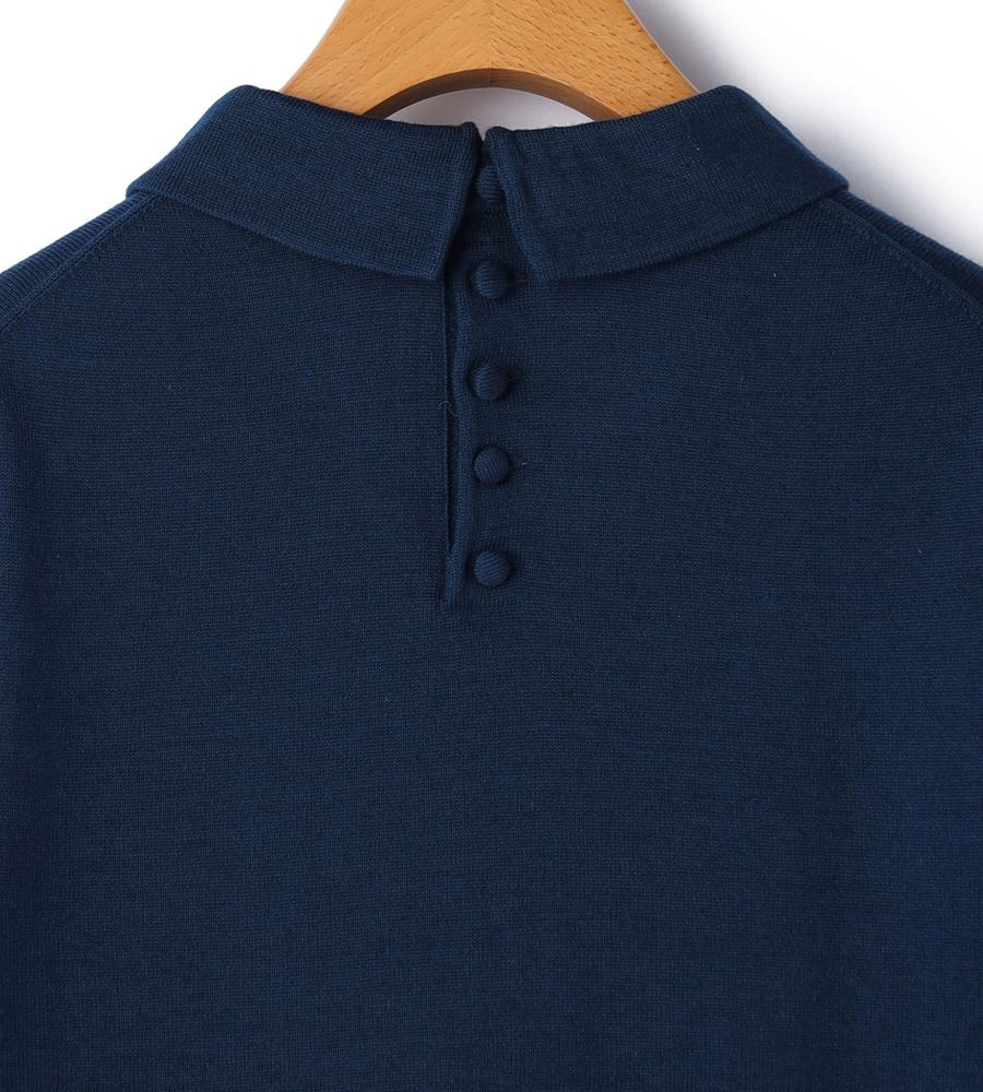 エレガントかつきちんと感のある、襟付きの首元とハイゲージな編み地がデザインポイントのニット。毛素材ブレンド生地のあたたかな肌触りで秋冬シーズンにぴったなニット。後ろ襟にはくるみボタンを5つあしらい、バックスタイルまでおしゃれなデザイン。オン・オフ問わず活躍する汎用性抜群のアイテムです。