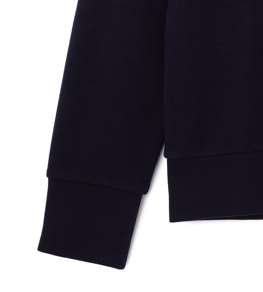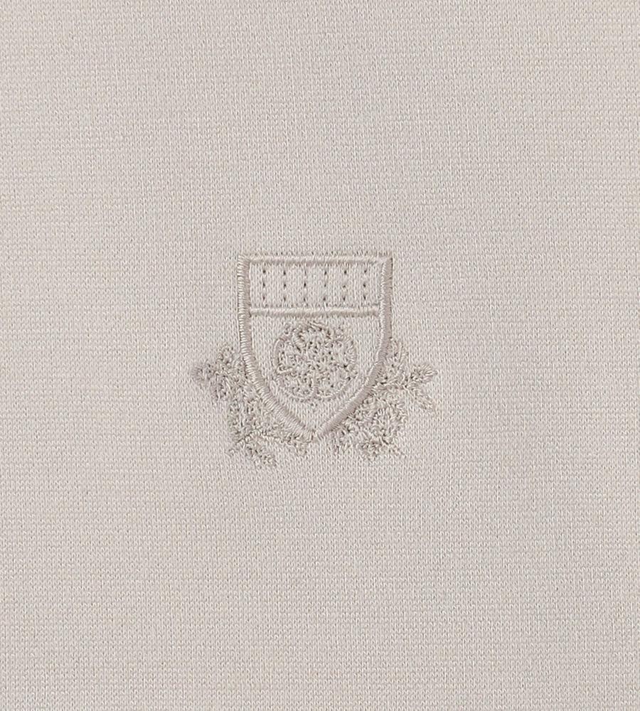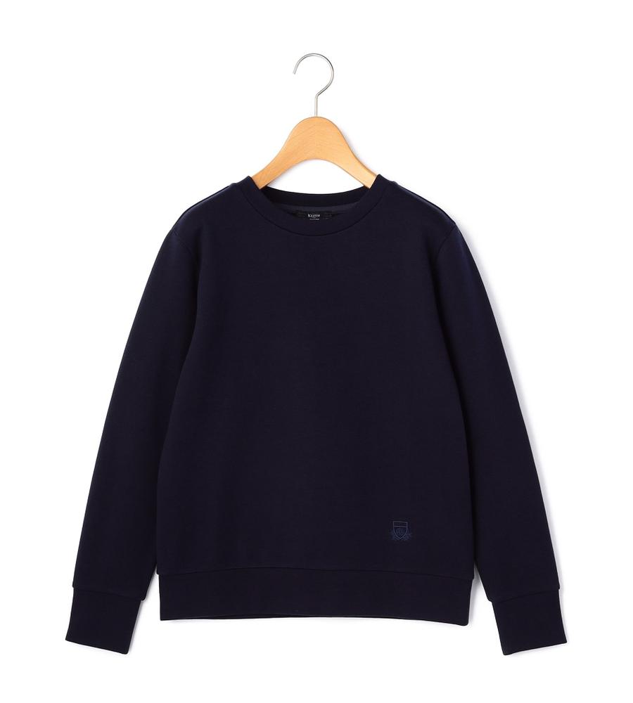 動きやすいのにシワになりにくい便利なポンチ生地で仕立てたオーバーカットソー。ハリ感がありカジュアルアイテムながらもエレガントなムード。裾にはブランドオリジナルのエンブレム刺繍がおしゃれなデザイン。袖先と裾のリブがシルエットのメリハリあるアクセント。シンプルなデザインでボトムを選ばず着こなせる一枚です。