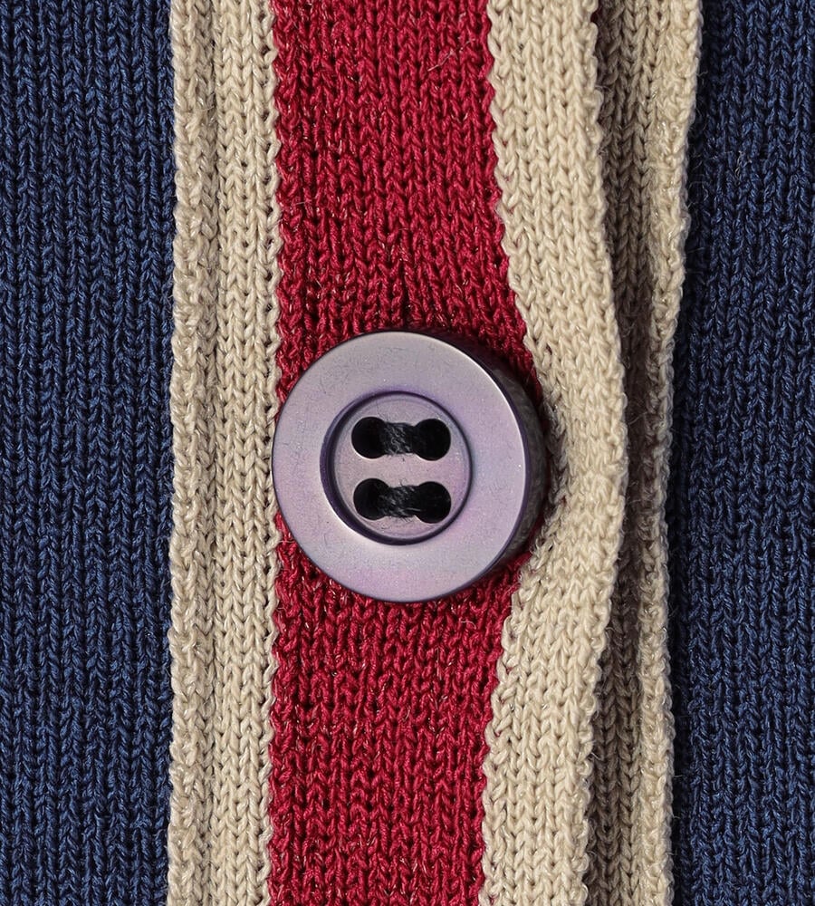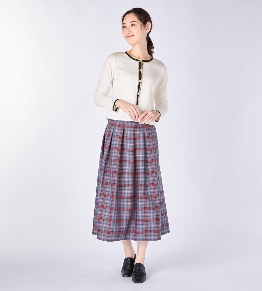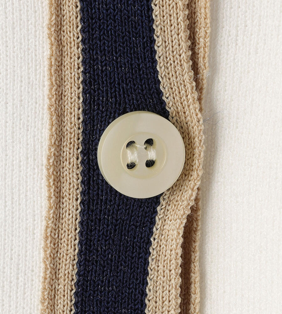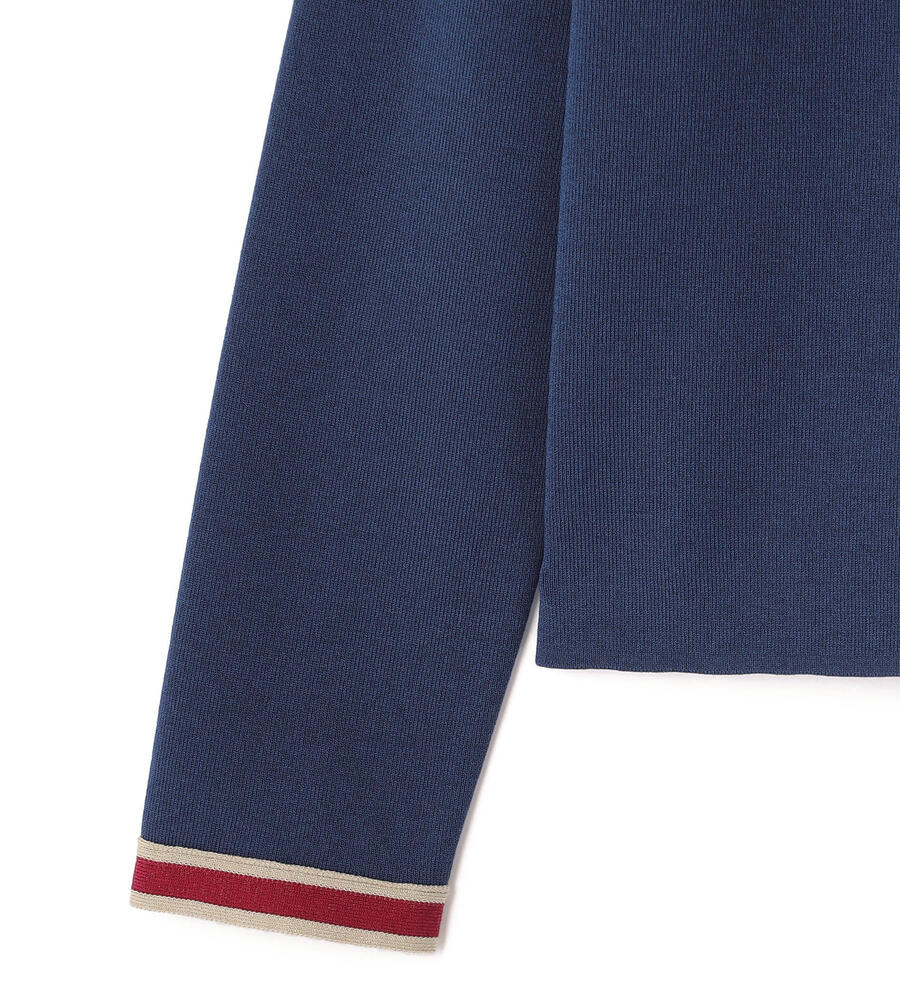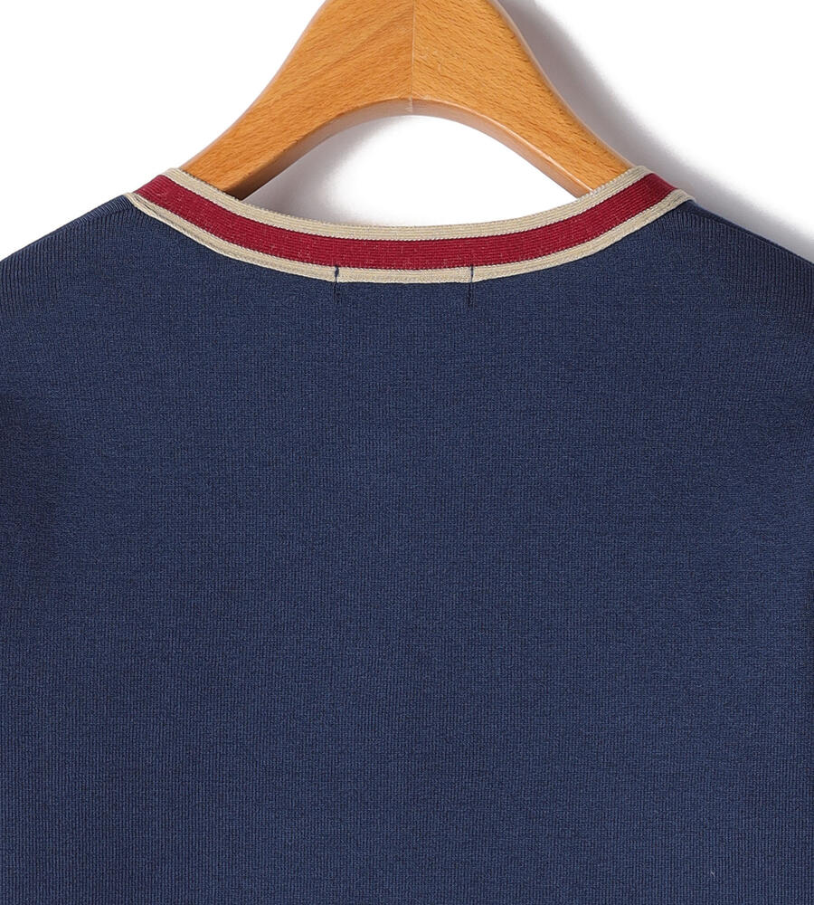 赤と白のライン使いがアクセントのトリムニットカーディガン。着こなしにさりげないアクセントを与えてくれるスタイリッシュなデザイン。コンパクトなサイジングで上半身がすっきりとまとまり、様々なボトムと好相性でバランスよく着こなせます。コーディネートをエレガントなムードにスタイルアップしてくれるアイテムです。