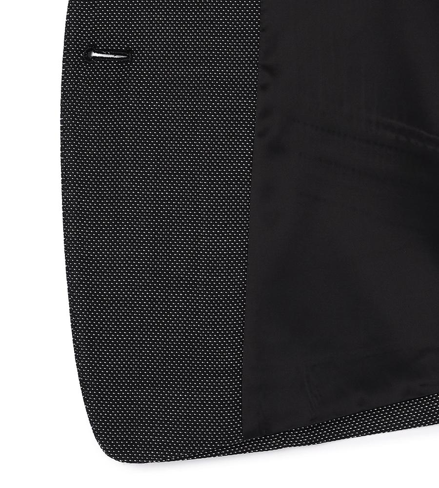クラシックなムードのバーズアイ生地で仕立てた1つボタンジャケット。衿のないすっきりとしたノーカラー仕様で、様々なブラウス、シャツ、トップスと好相性。袖先のスリット、立体感のある美しいシルエットもポイント。シンプルなデザインで、ビジネスからお出かけまで様々なスタイリングで重宝する一枚です。