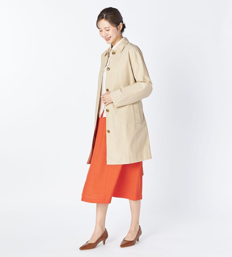 上質かつベーシックなステンカラーコート。ハリのあるコットンベース素材で、春先から秋口まで季節の変わり目の体温調節にぴったりな1着です。軽やかなミディ丈のスプリングコートは、スカート・パンツどちらともグッドバランスに着こなせます。トレンドに左右されることなく長くご愛用いただける1着。