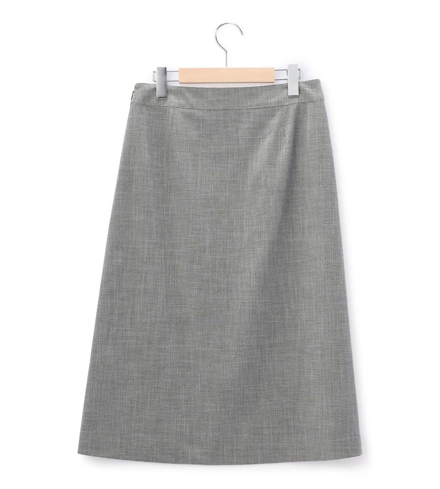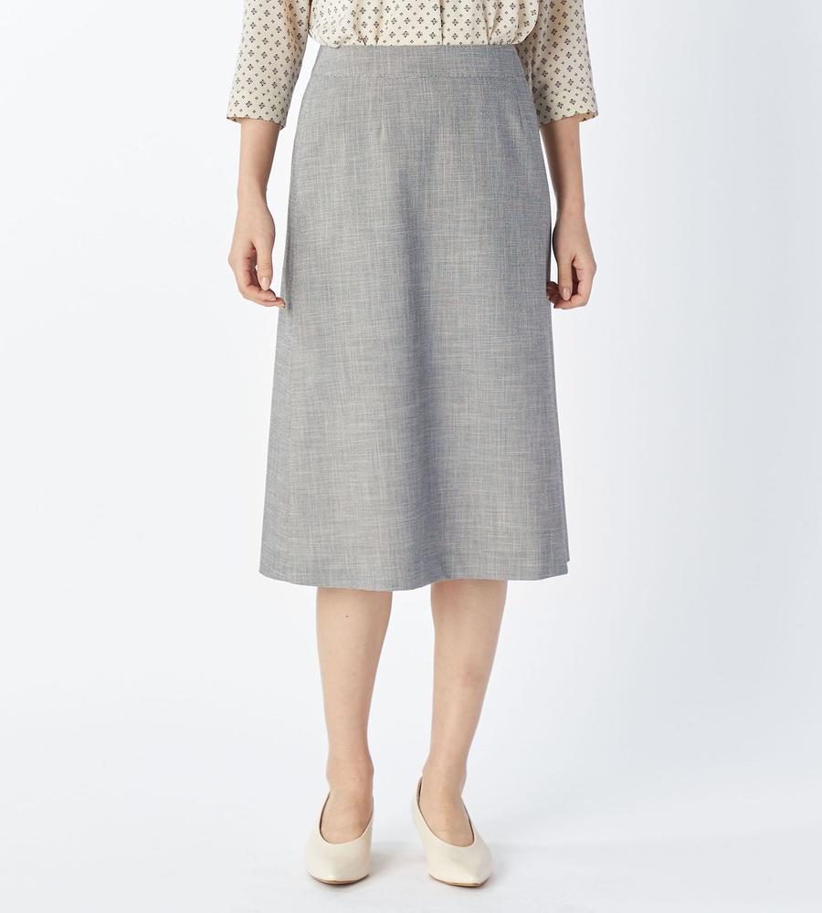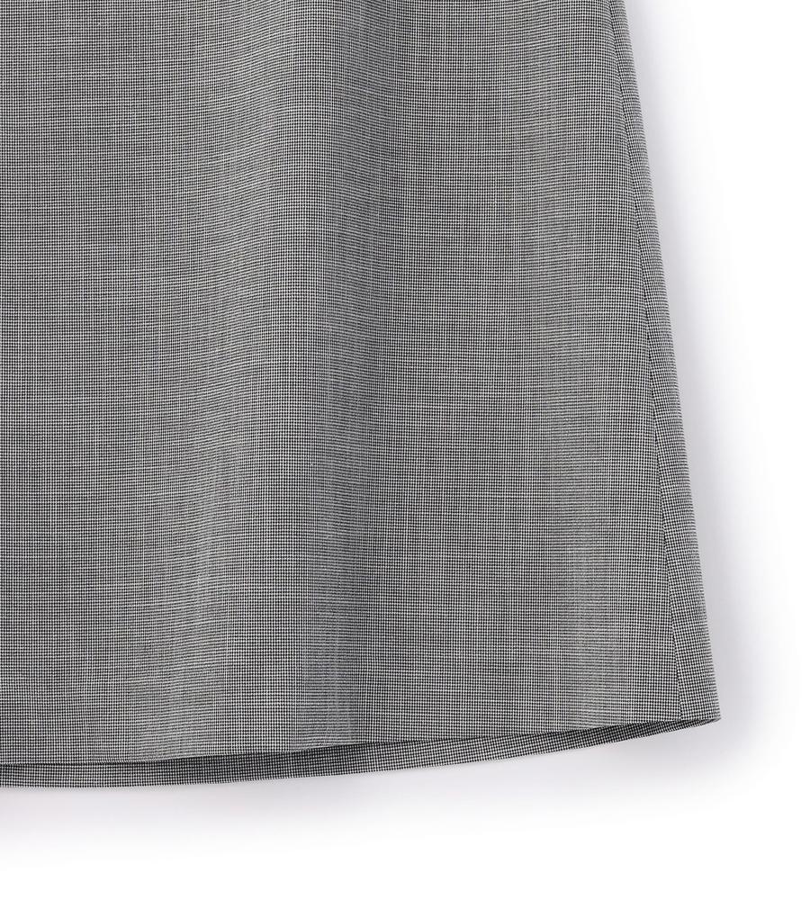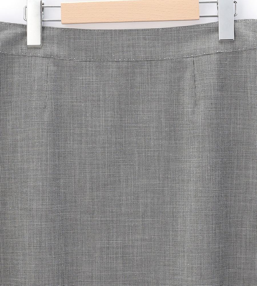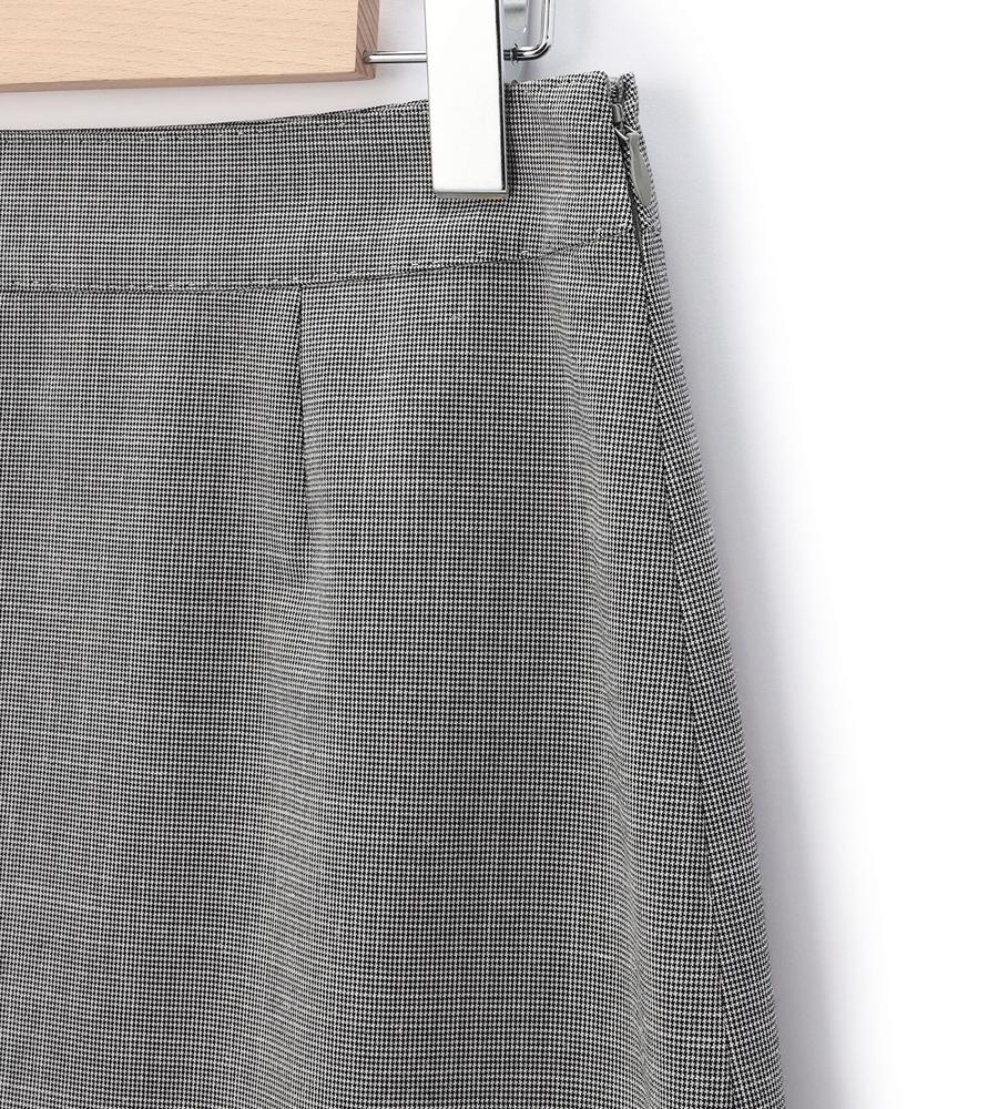 遠目に見ると単色のような、細かなハウンドトゥース柄を用いたスカート。広がりを控えめにした台形のシルエットが、大人らしい気品を引き立てる1点です。膝が隠れる着丈も落ち着きがあり、好印象。ノーカラージャケットやツイードジャケットなどを合わせると、よりきちんとした印象の着こなしを楽しめます。