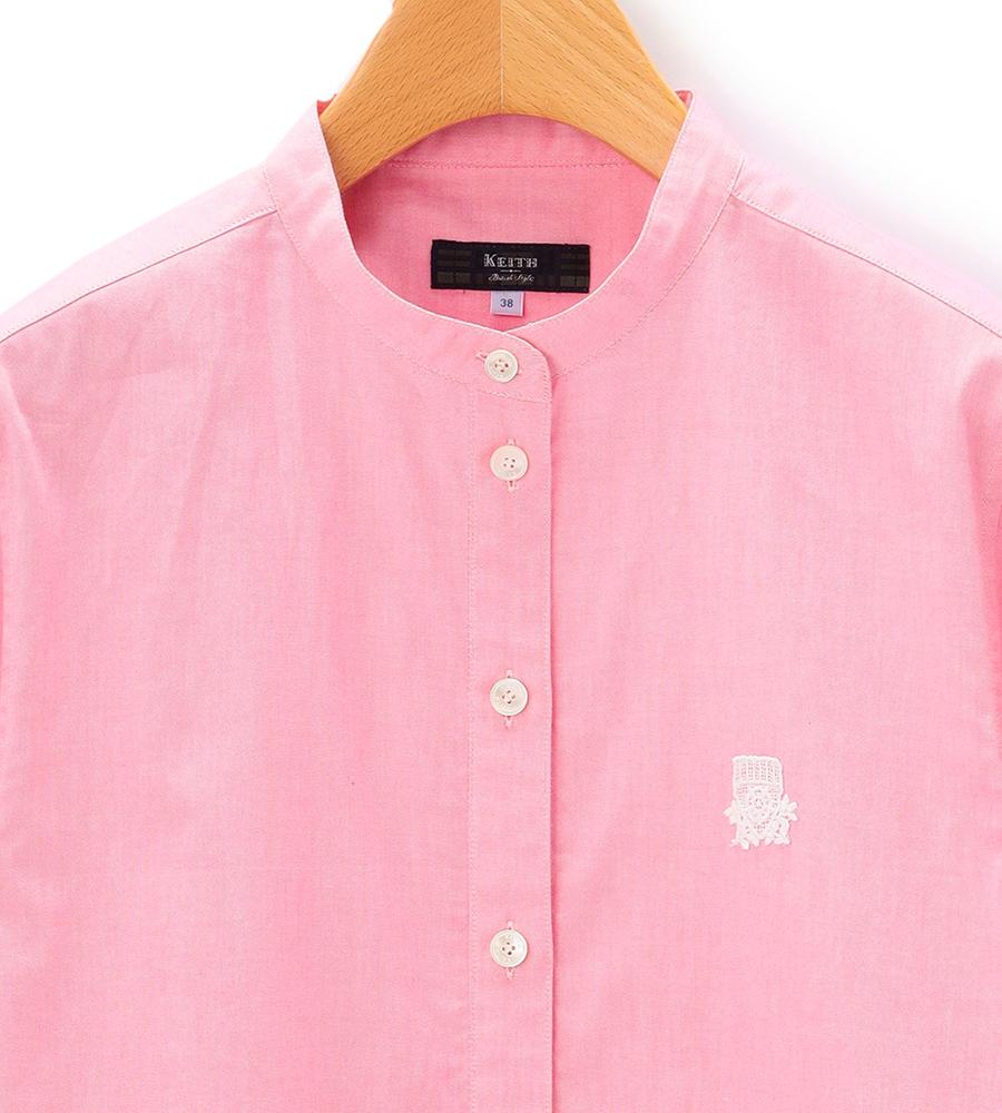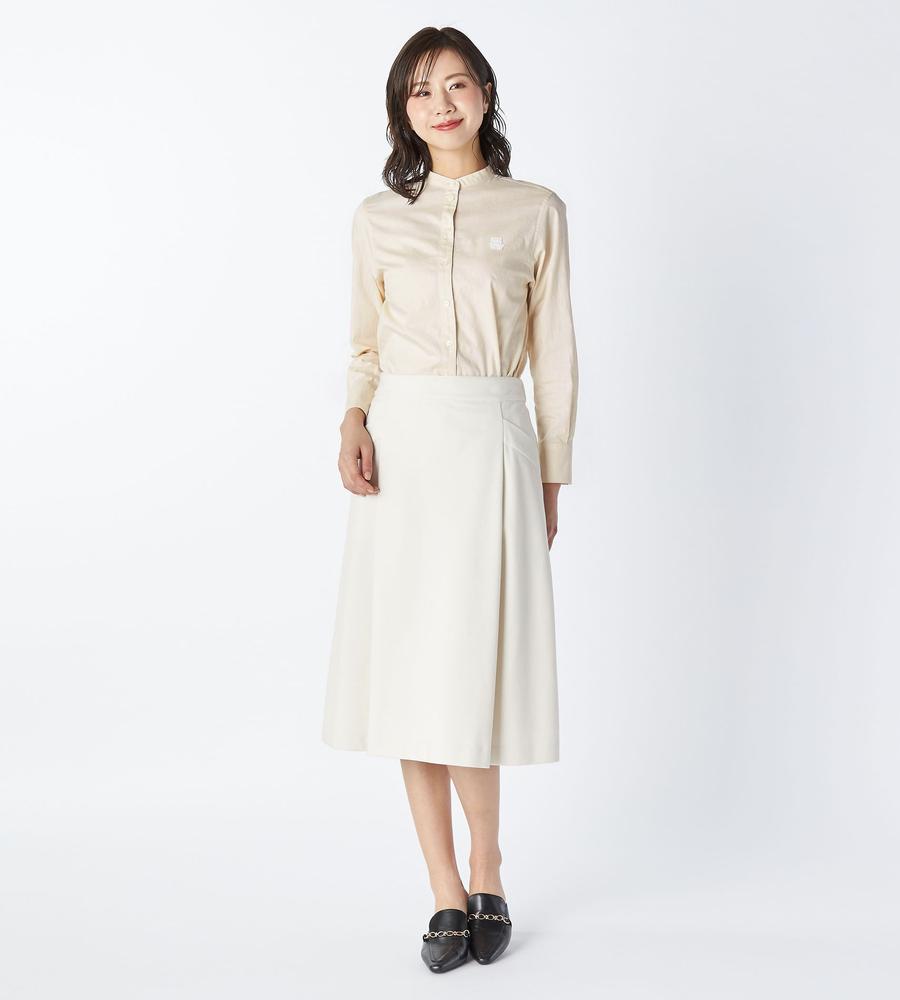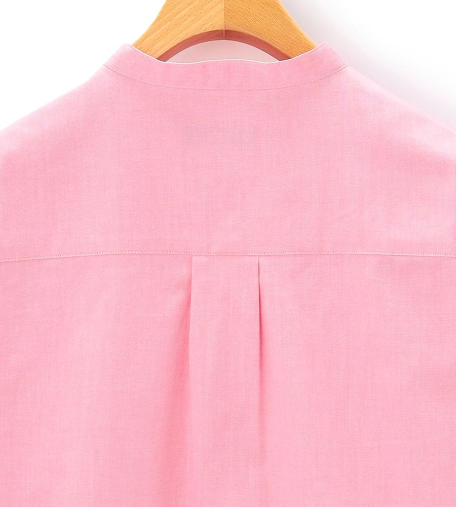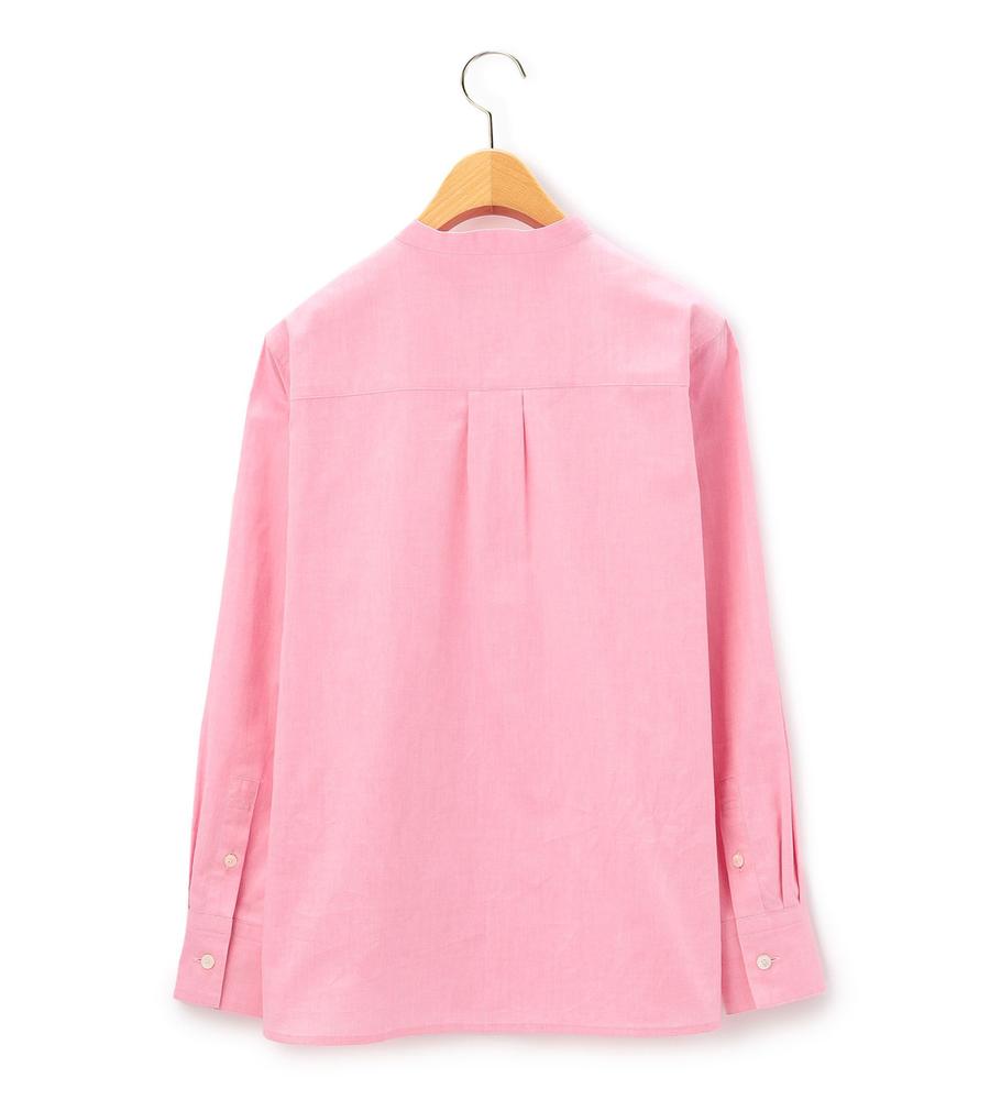 さっぱりとしたコットン素材を用いたブラウス。バンドカラーを採用し、かしこまりすぎずリラックス感のある印象に仕上げています。胸元に配したステッチが、気品を高めるアクセント。ジャストサイズでお召しいただけるため、ジャケットなどのインナーに合わせるのもおすすめです。汗ばむ季節の羽織としても活躍。