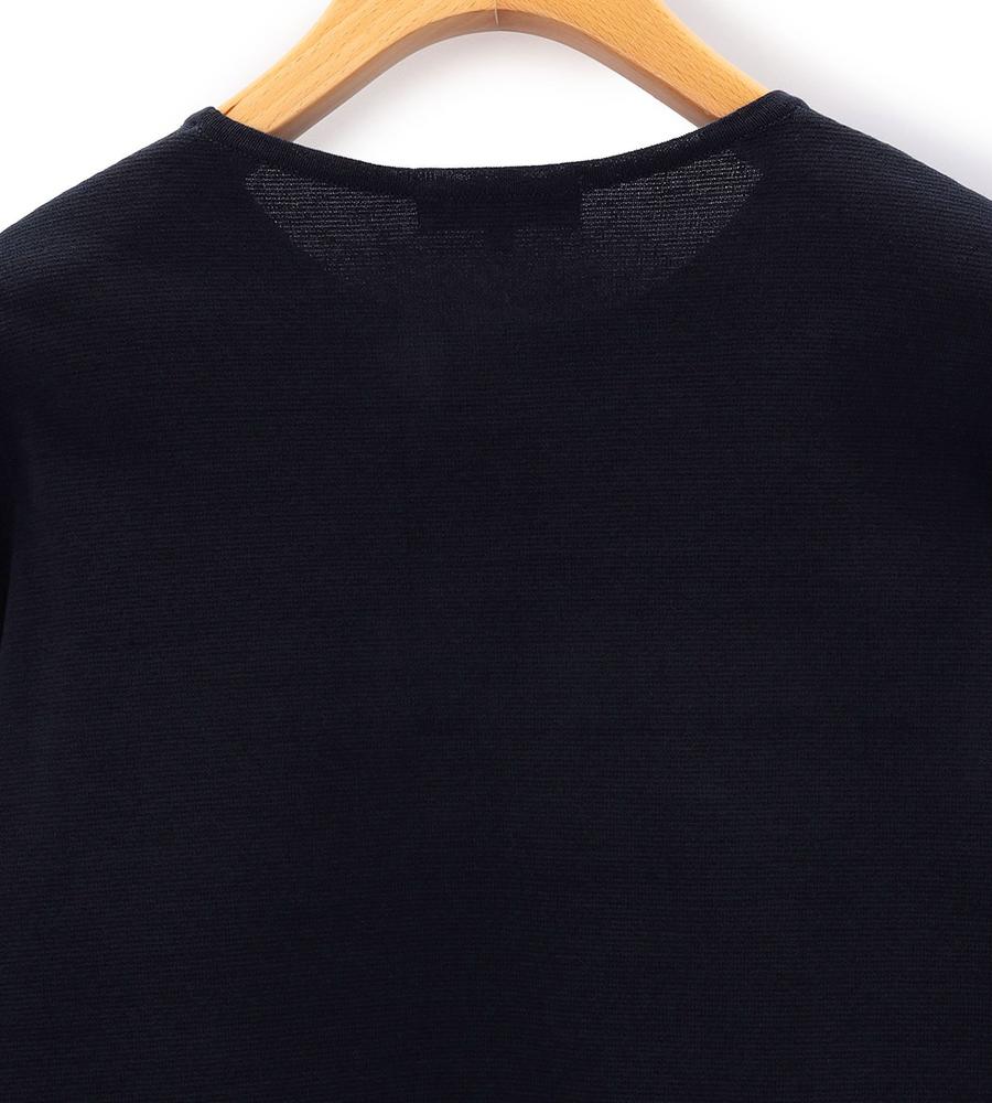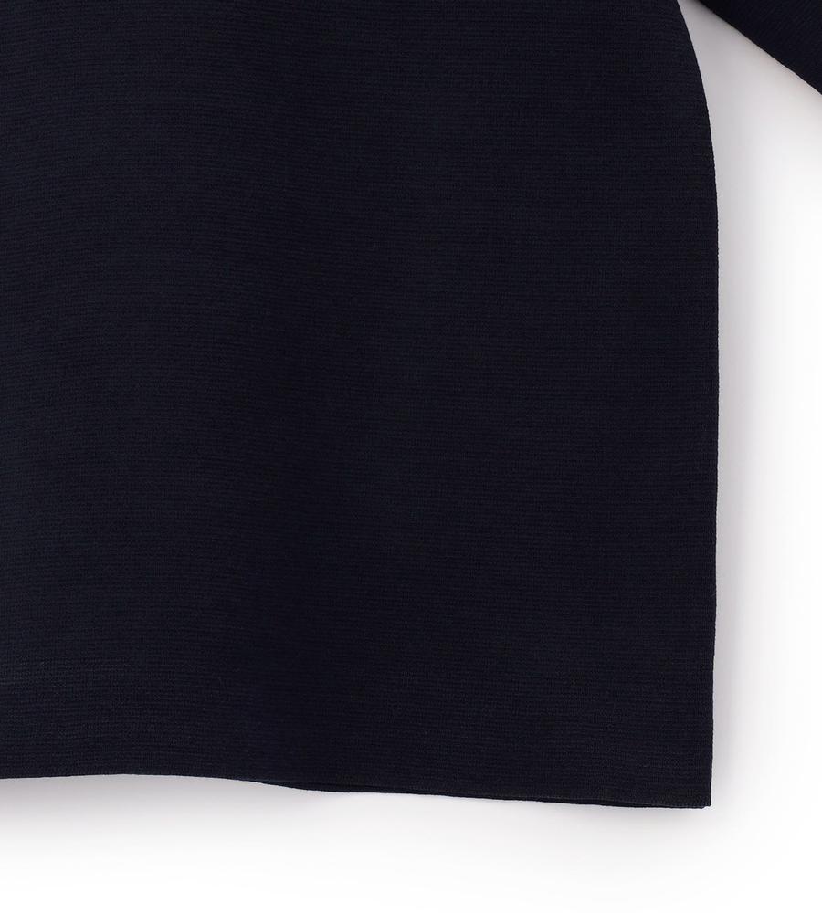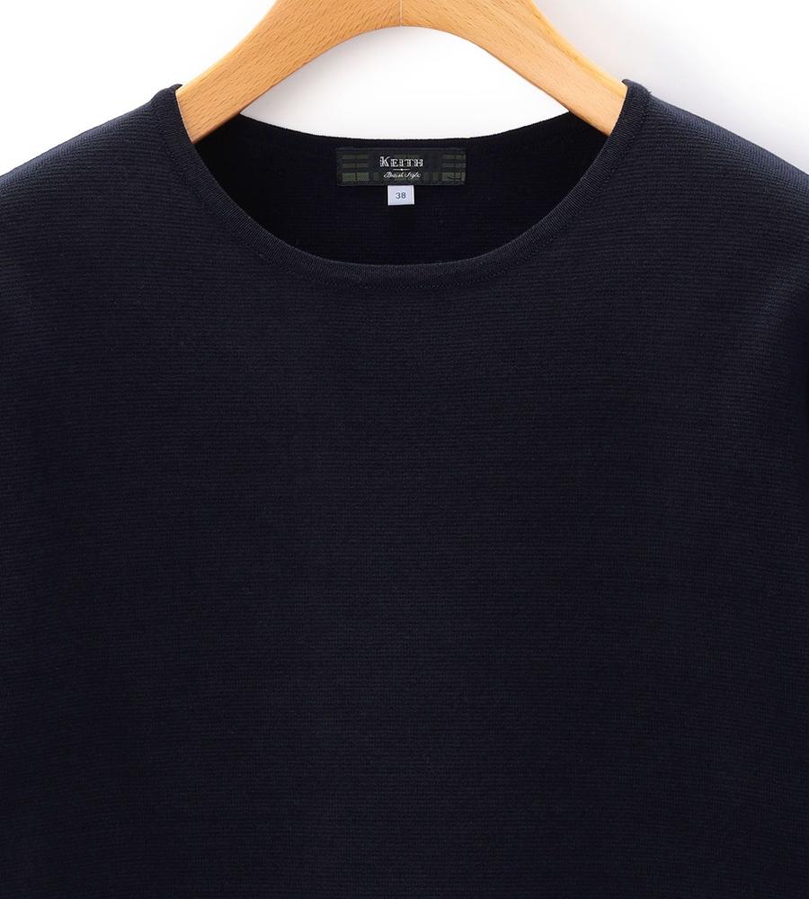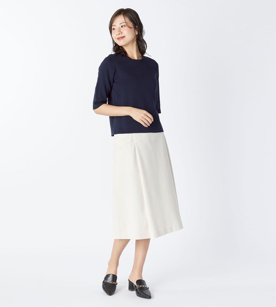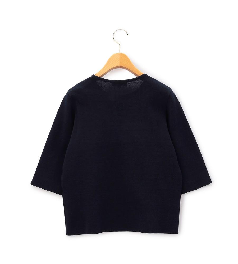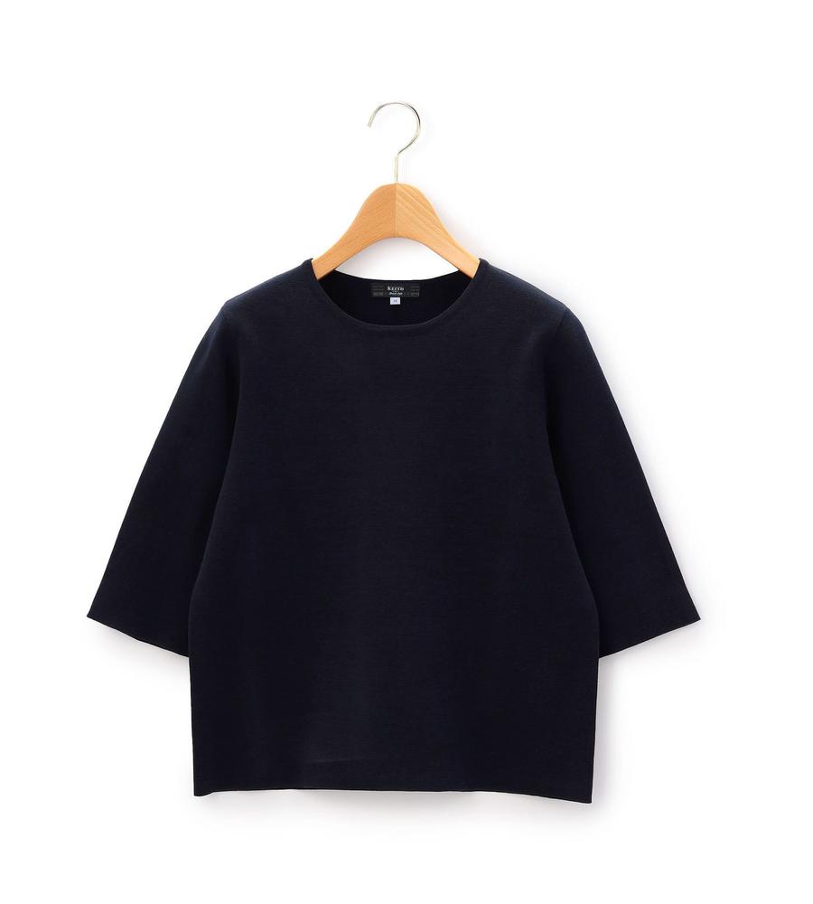 シンプルで上品なクルーネック仕様の5分袖ニットプルオーバー。平らな編み目とさらっとした肌触りが魅力のミラノリブニット生地を使用しています。フィットし過ぎないシルエットや長過ぎない着丈もこだわりのポイント。合わせるボトムやアウターを選ばず、同生地のジャケットとアンサンブルでも着用可能です。