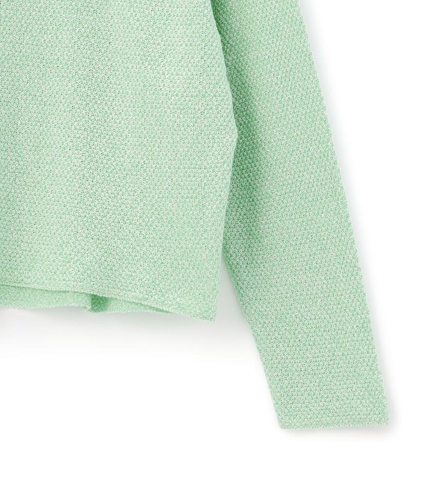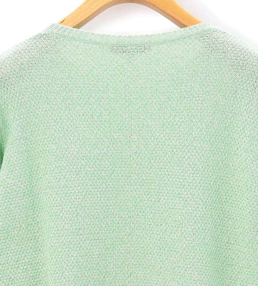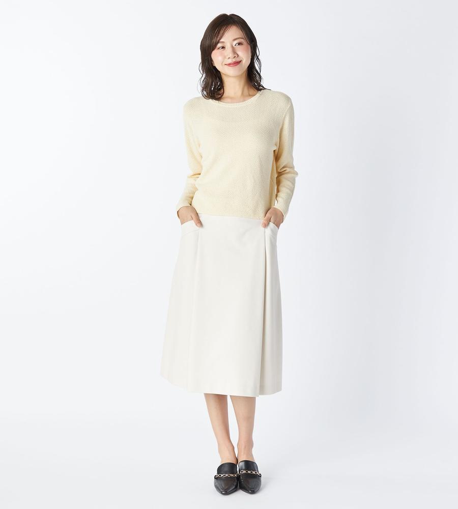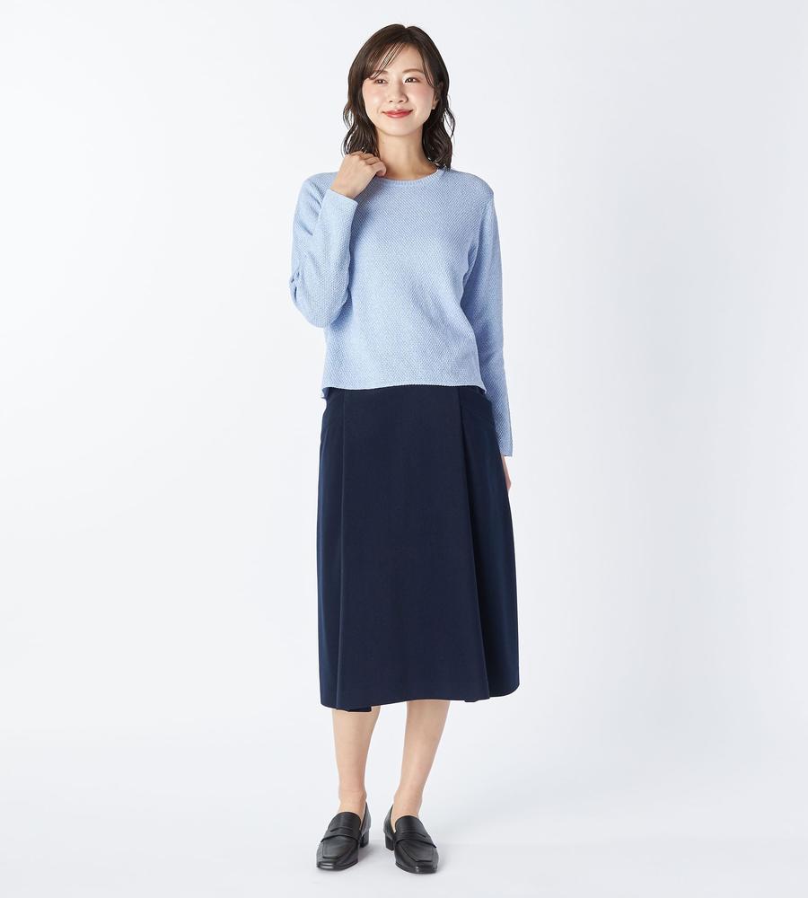柔らかな春色のラウンドネックニットプルオーバー。シンプルなデザインながら、立体感のある鹿の子調の編み目が印象的なアイテムです。シルエットは品の良いコンパクトな作りで、長すぎない着丈がポイントに。タックインスタイルはもちろん、アウトでもすっきりしたバランスで着こなせます。