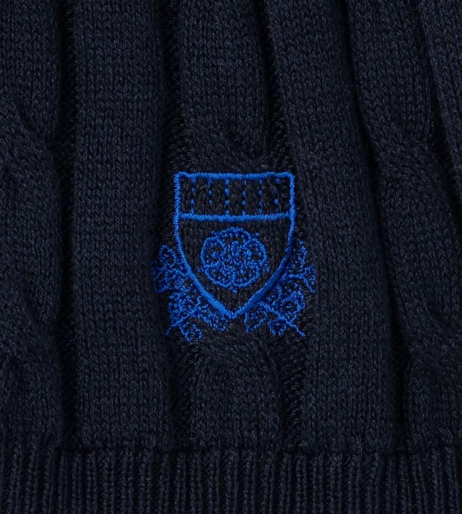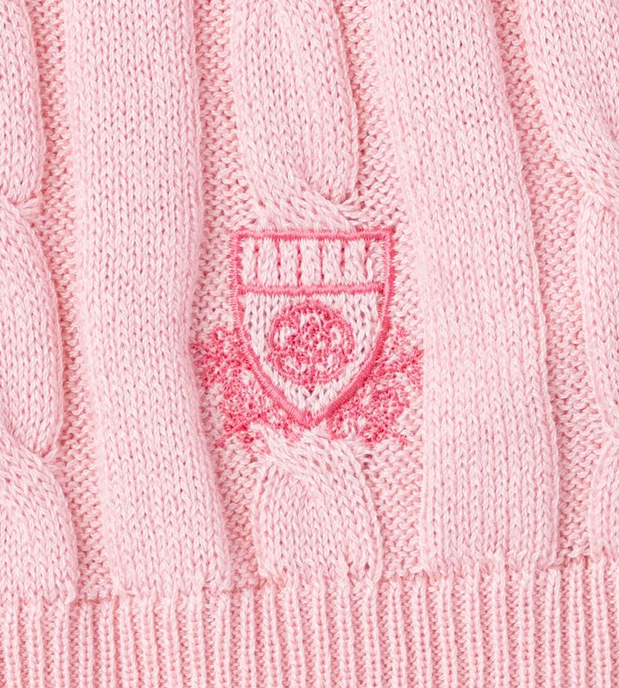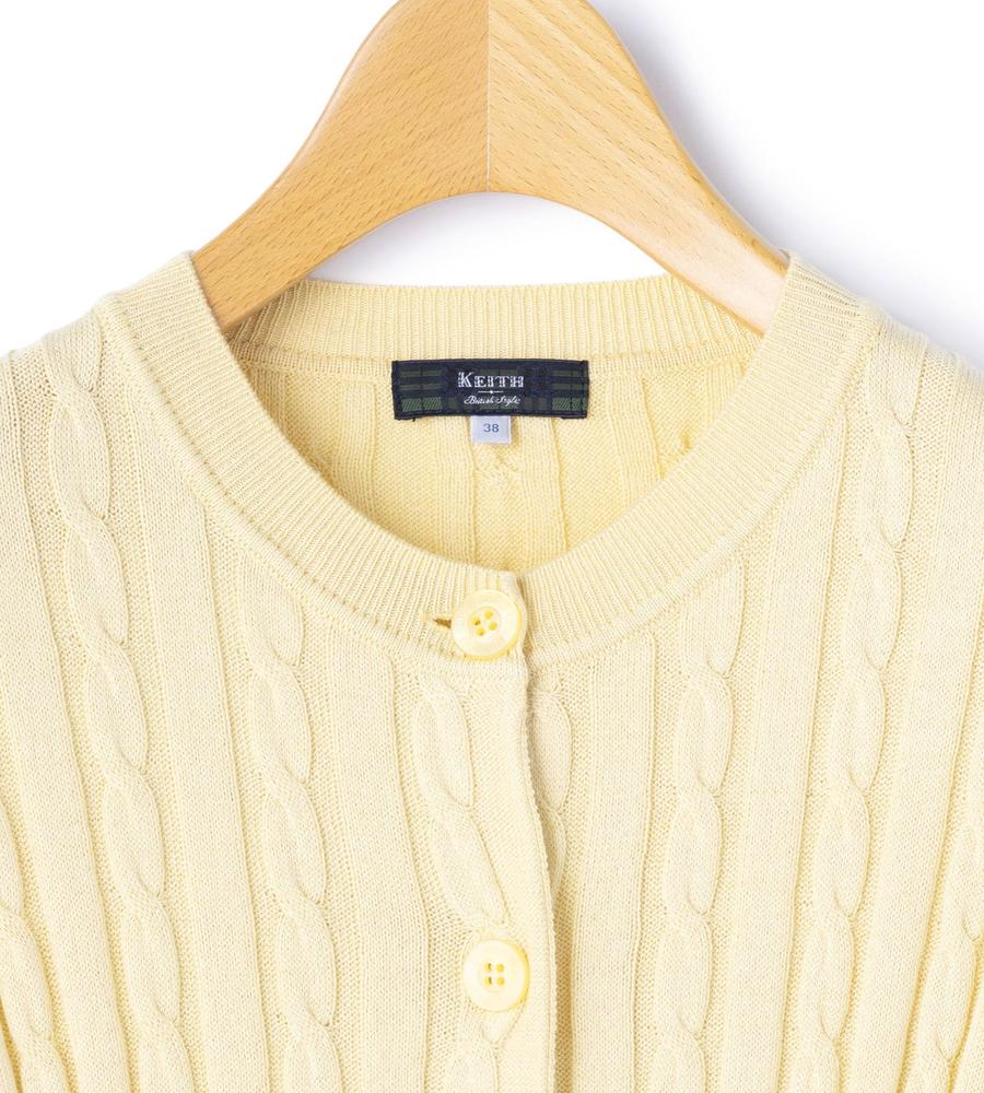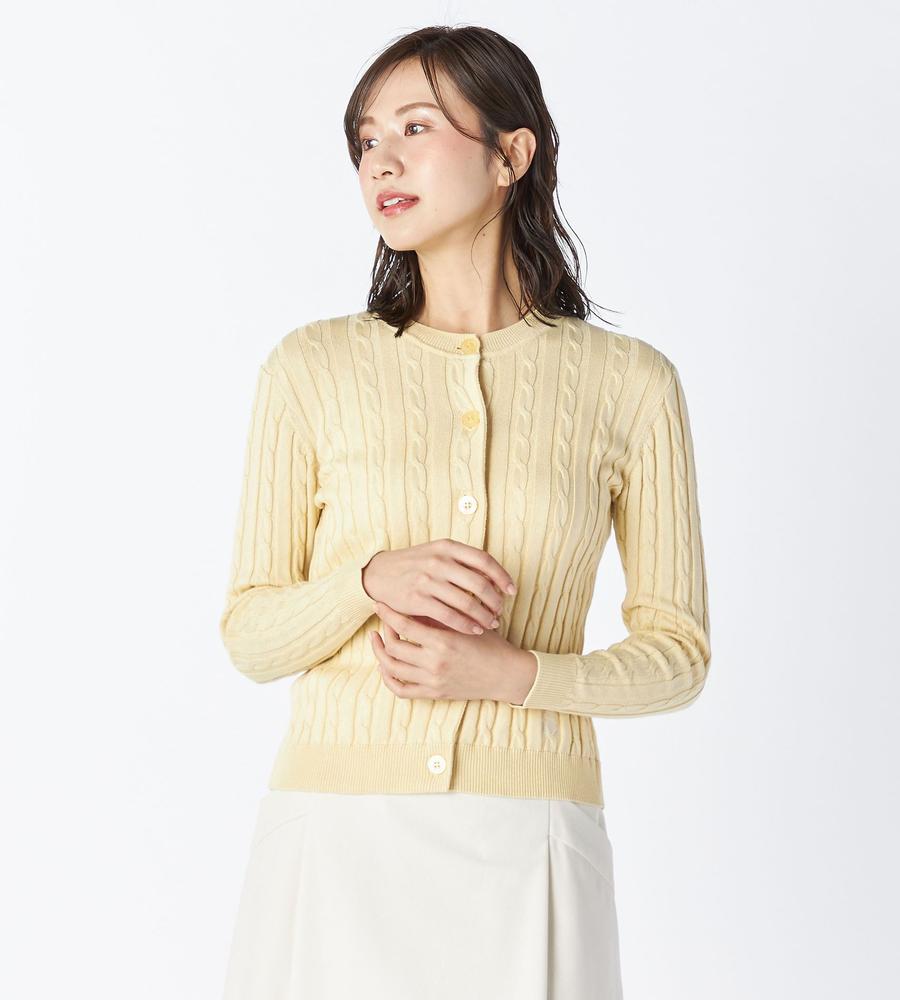 ブリティッシュトラディショナルを感じさせる、コットンニットカーディガン。ハイゲージのケーブルニットは、エレガントな雰囲気が漂います。やや短めの着丈、コンパクトなシルエットでモタつかず、すっきり着こなしていただけるのもポイント。アイコニックなエンブレム刺繍がアクセントを効かせます。