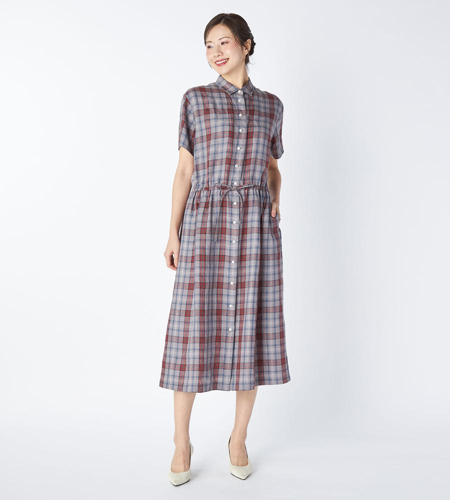 リネンキースチェックワンピース