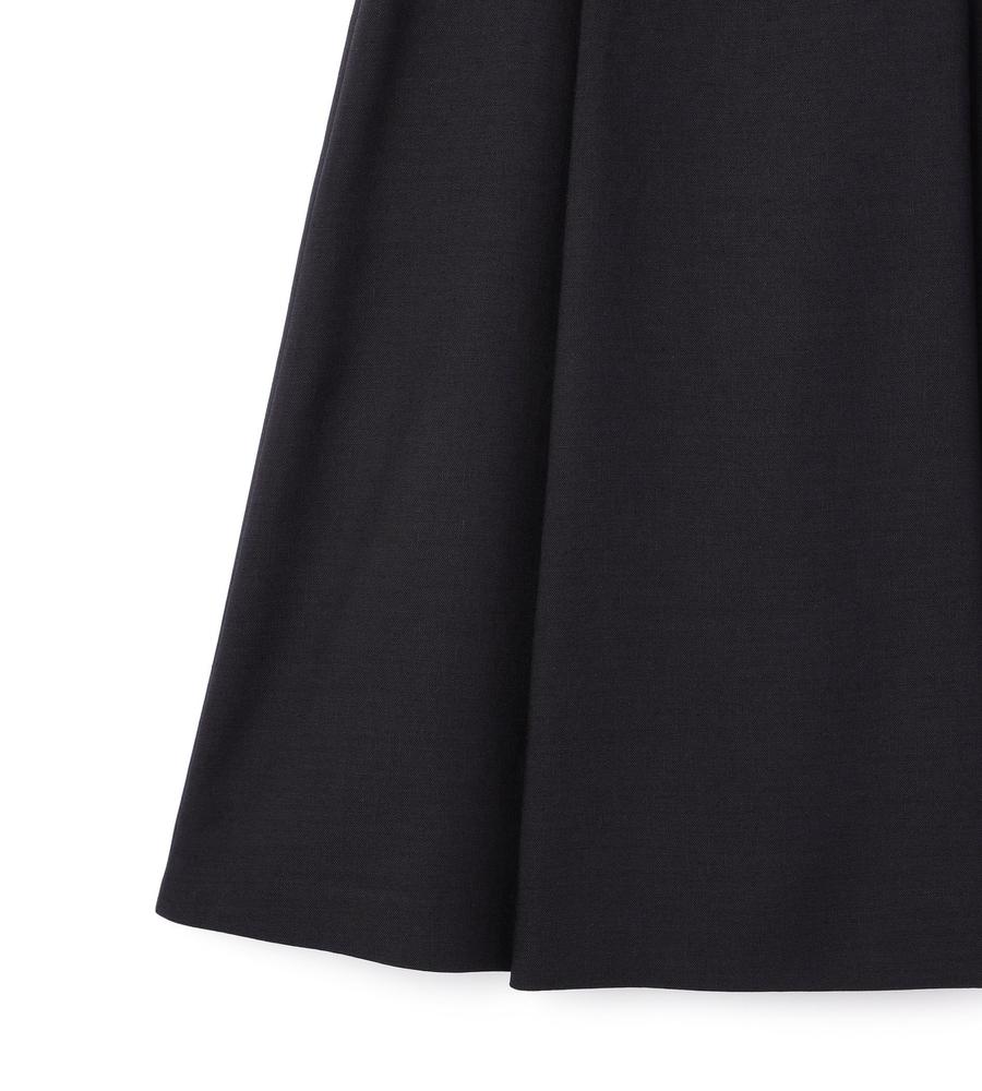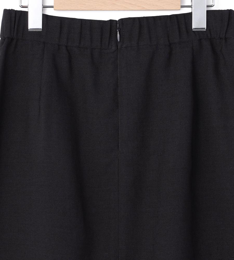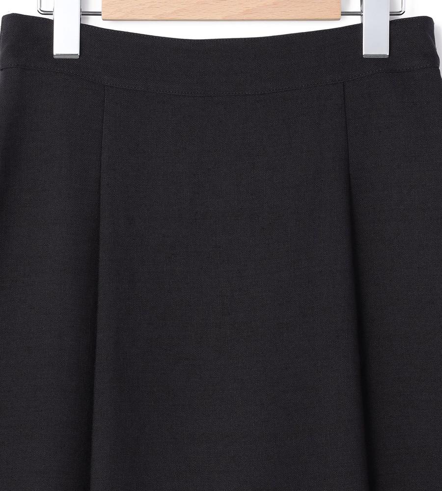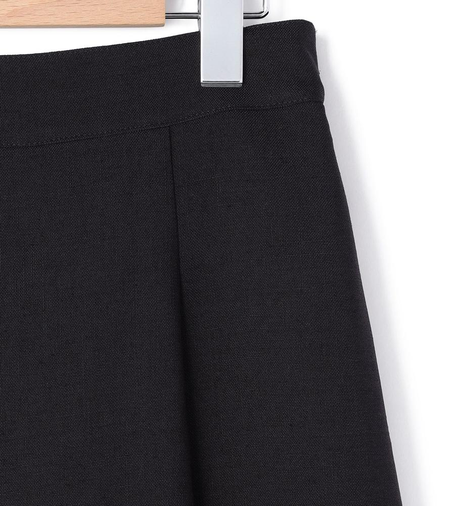 フロントのプリーツがエレガントなデザインのミディ丈スカート。自然なドレープ感がフェミニンなシルエット。便利なサイドポケット付き。後ろウエストはゴム仕様、ストレッチ素材の生地で身体の動きにフィットし、快適な着心地なのもうれしいポイント。お出かけにはもちろん、フォーマルなシーンにもマッチするシックな一枚です。