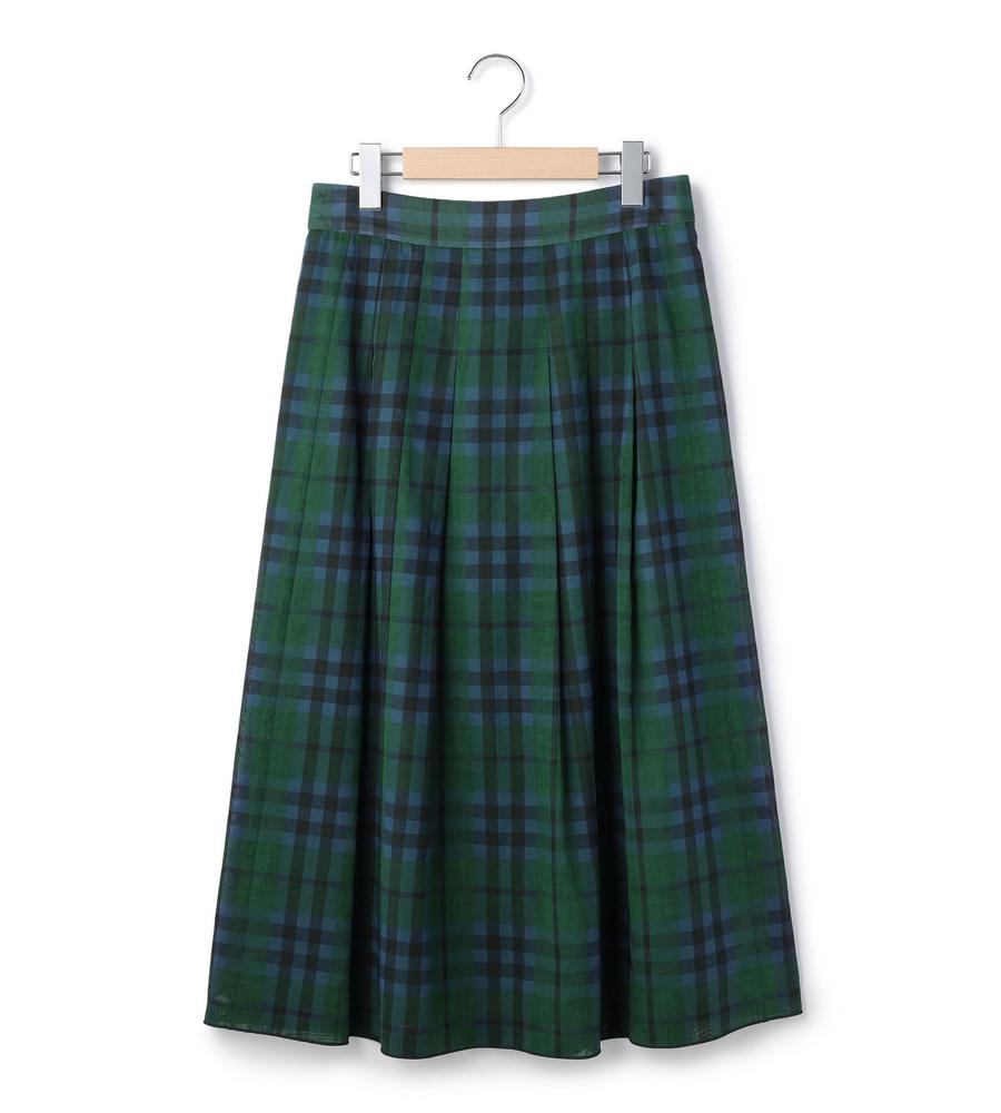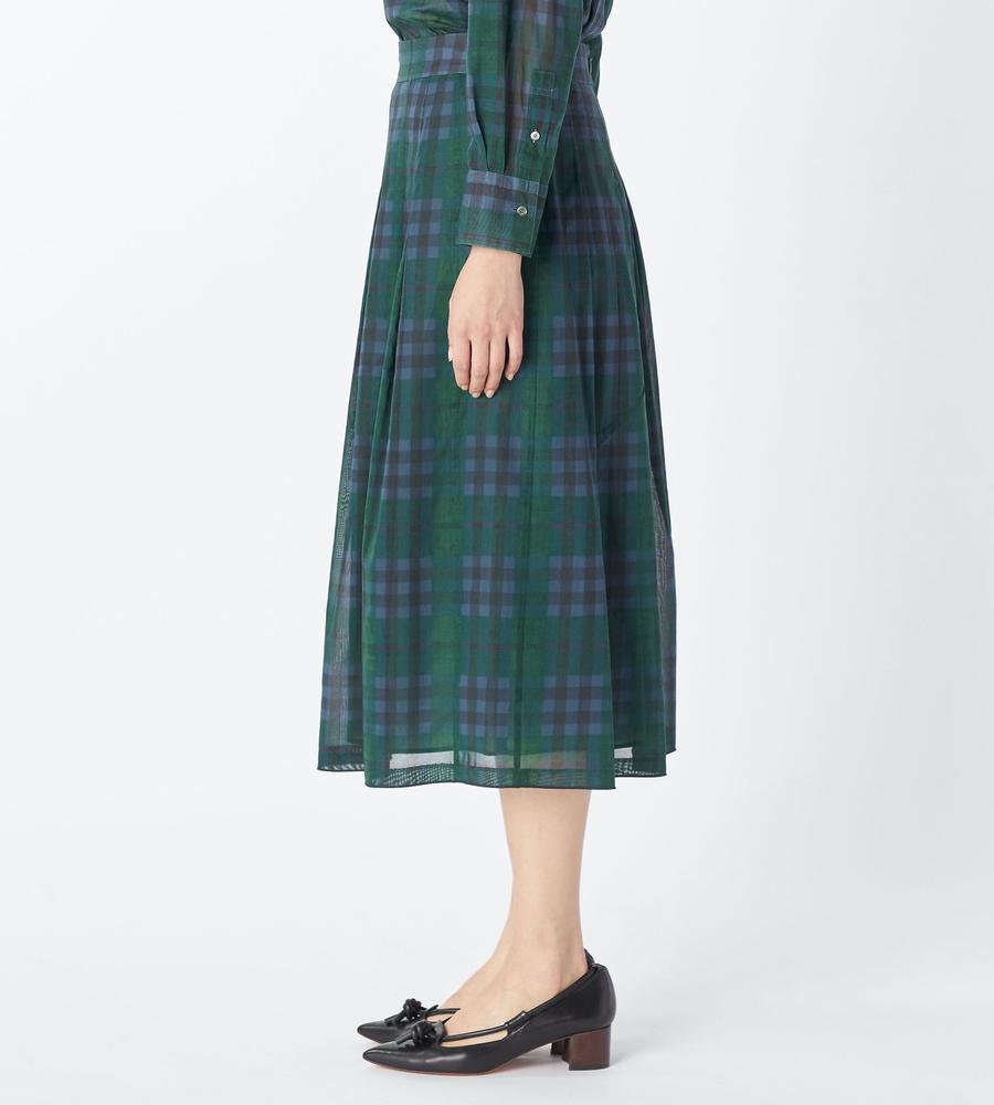 大人トラッドな着こなしをかなえてくれるチェック柄のスカートです。オーガンジー素材ならではのさりげない光沢感のある軽やかな着用感で、カジュアルになり過ぎない柄スタイルが楽しめます。膝がかくれるくらいの上品なミディ丈もポイントで、同柄のブラウスとセットアップでそろえるのもおすすめです。
