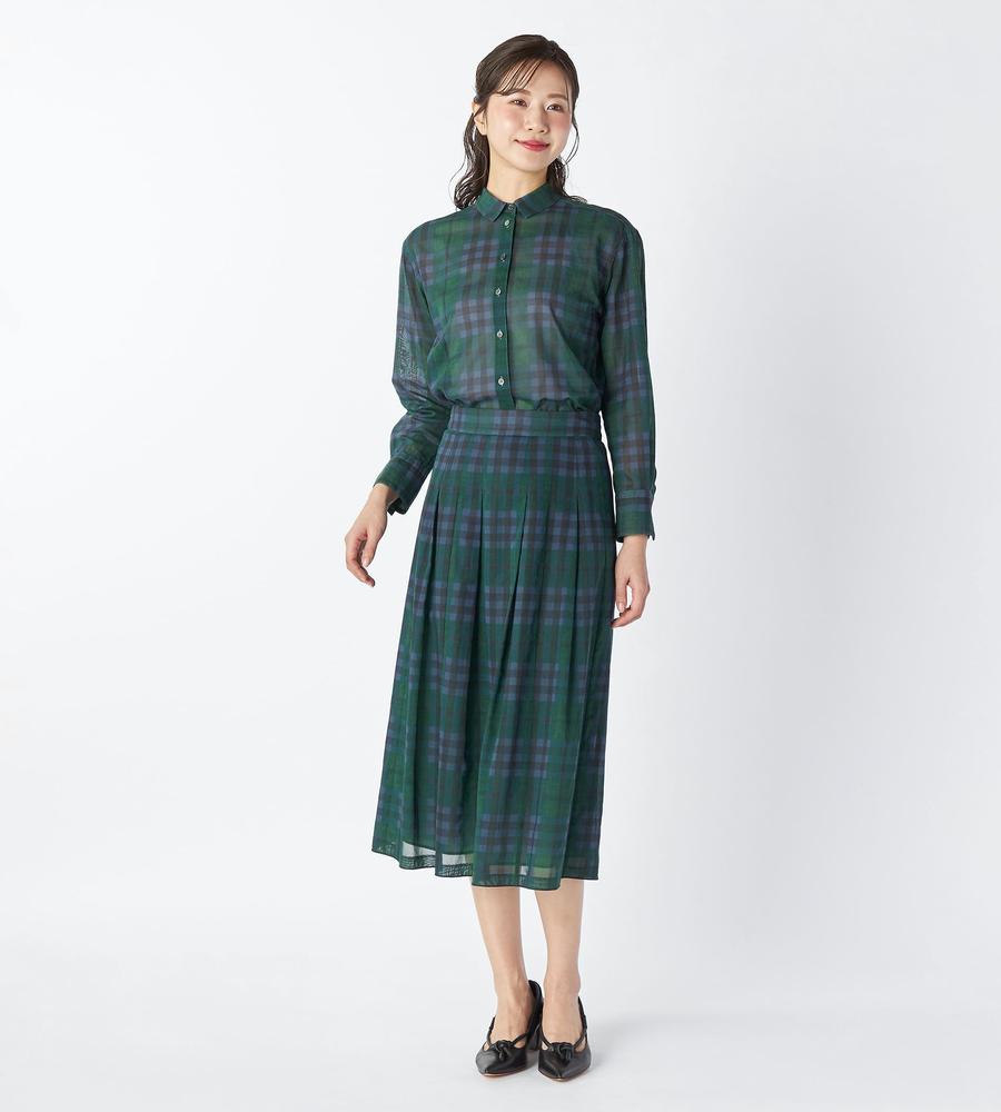 オーガンジーキースチェックブラウス