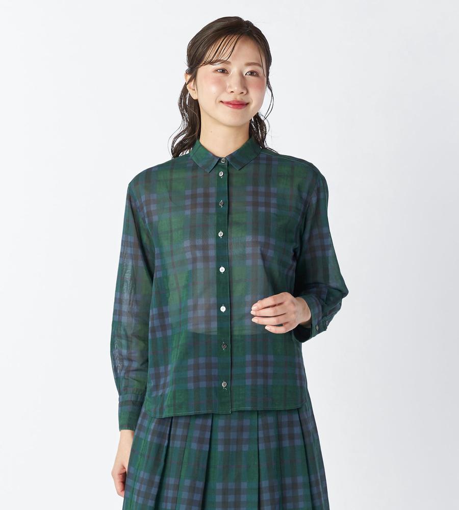 【返品交換送料無料対象/先行受注】【Lサイズ】オーガンジーキースチェックブラウス<3月上旬お届け予定>