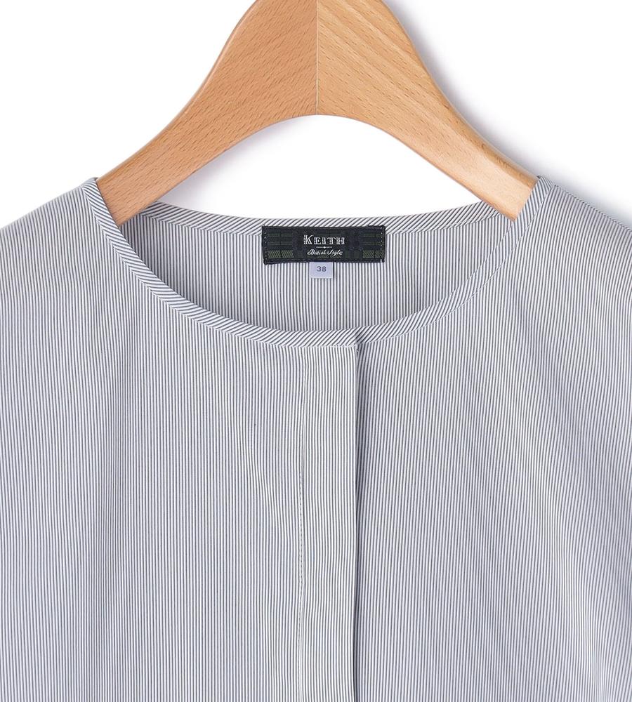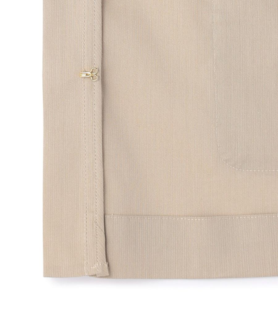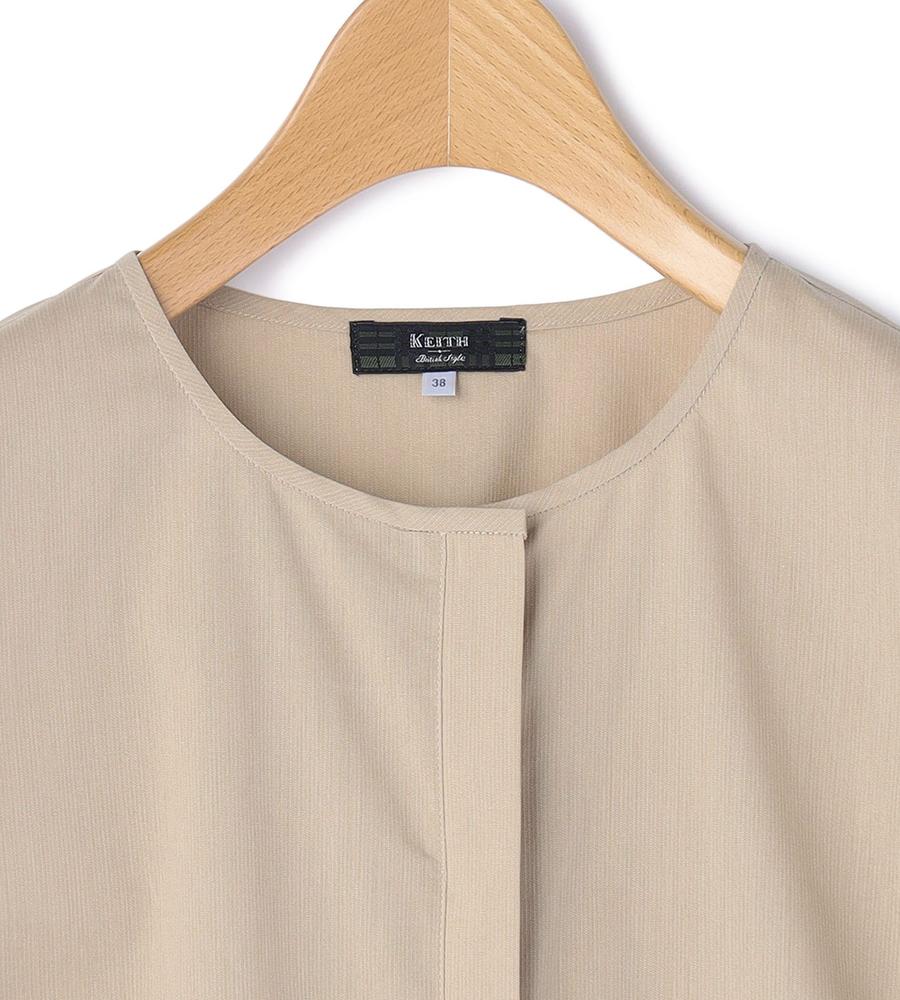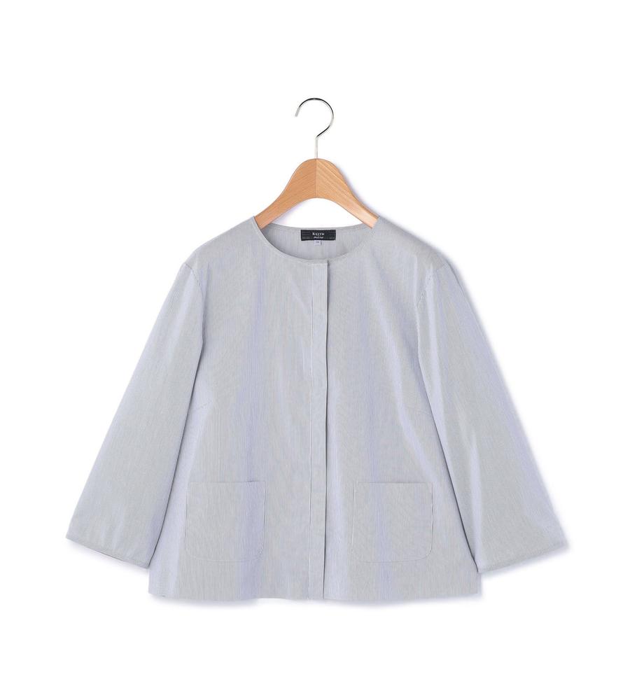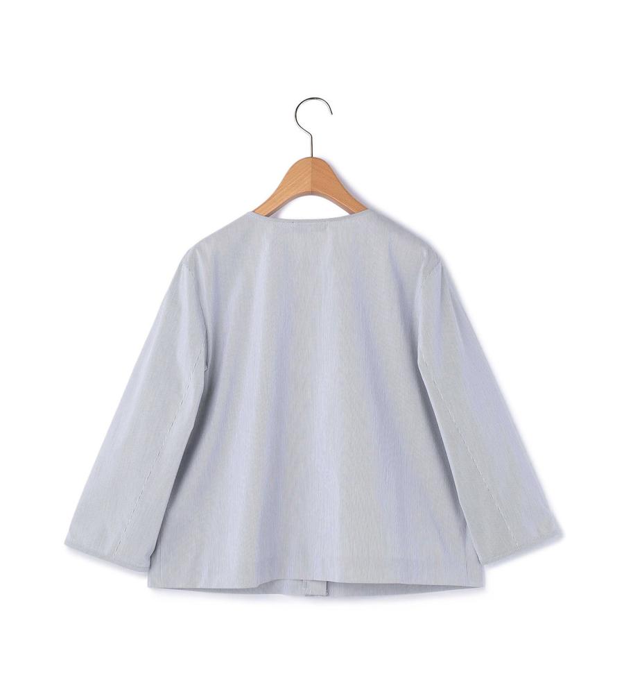 ノーカラージャケットのような端正さの漂うブラウス。両裾のポケットが、さりげないポイントに。着こなしの主役にはもちろん、季節の変わり目の軽やかな羽織りとしても活躍します。