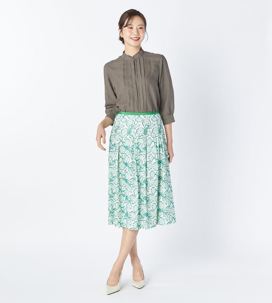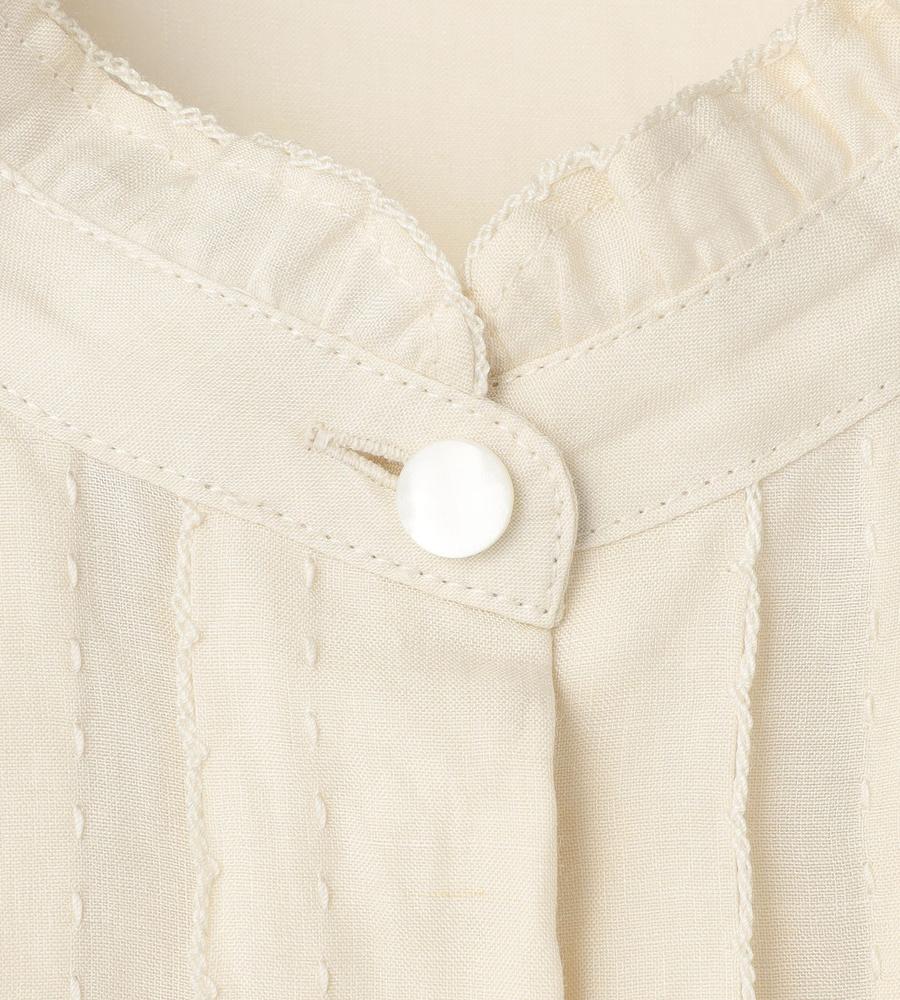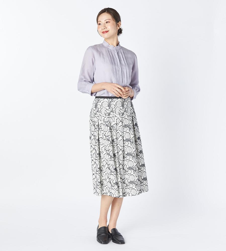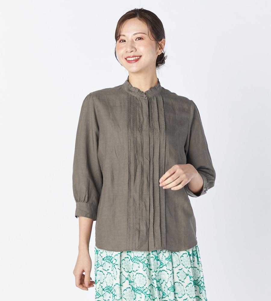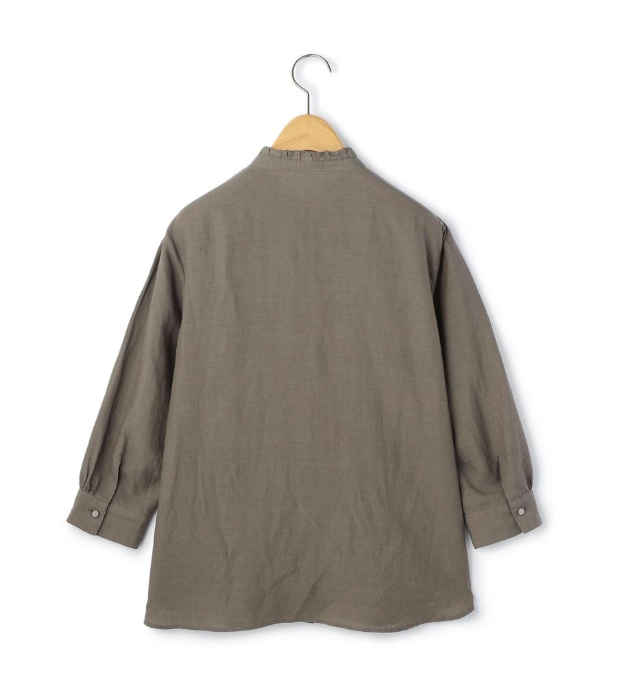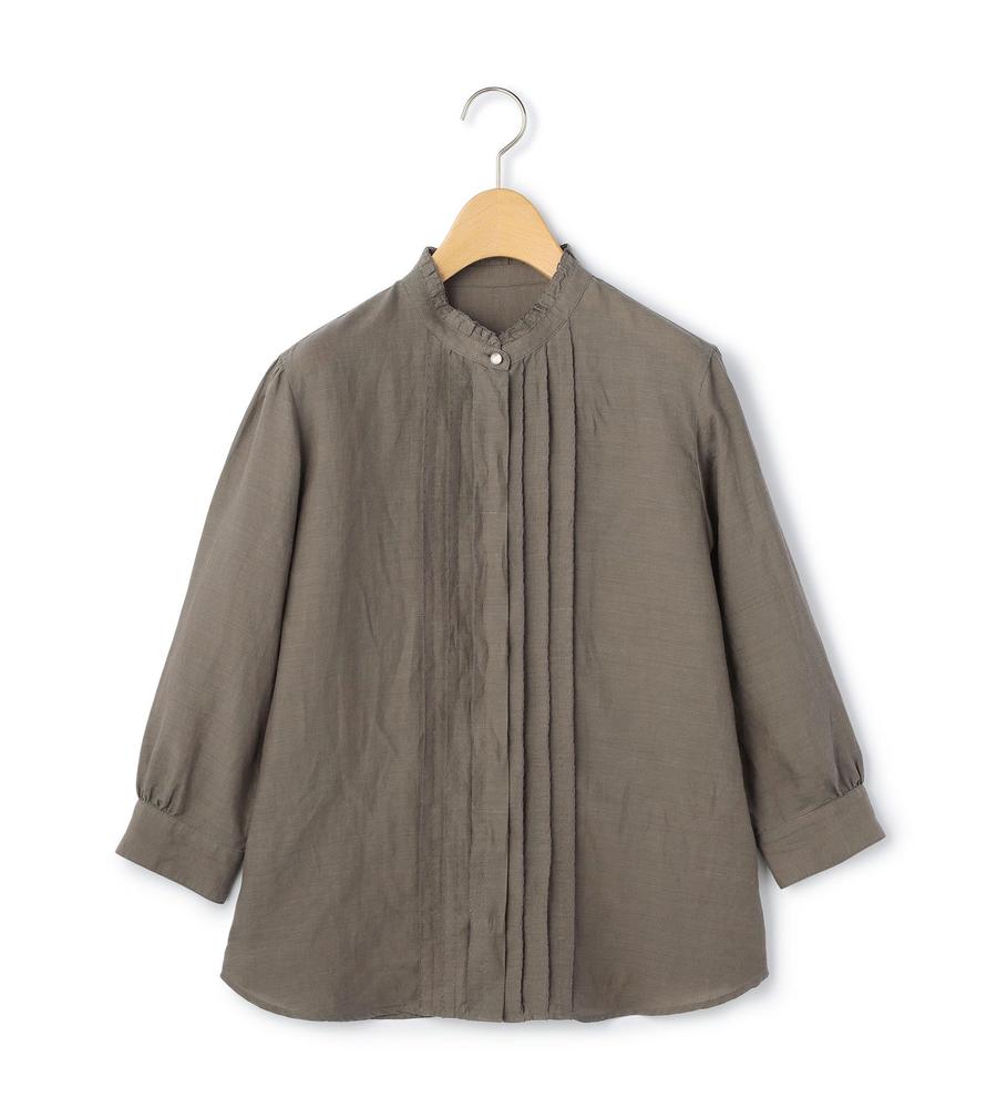 ほど良いハリ感と上品な光沢感をあわせ持つ、ラミー素材で仕上げたシャツです。吸水性や通気性もよく、汗をかいてもすぐに乾いて快適、肌にさらっと心地よく着られます。衿元のフリルと胸元のタックプリーツで大人可愛くおめかし、折り返しても着られる手首がのぞく袖丈でロングシーズン着まわせるのもうれしいポイントです。