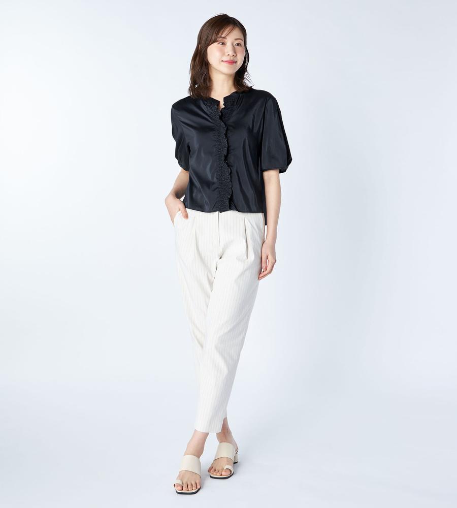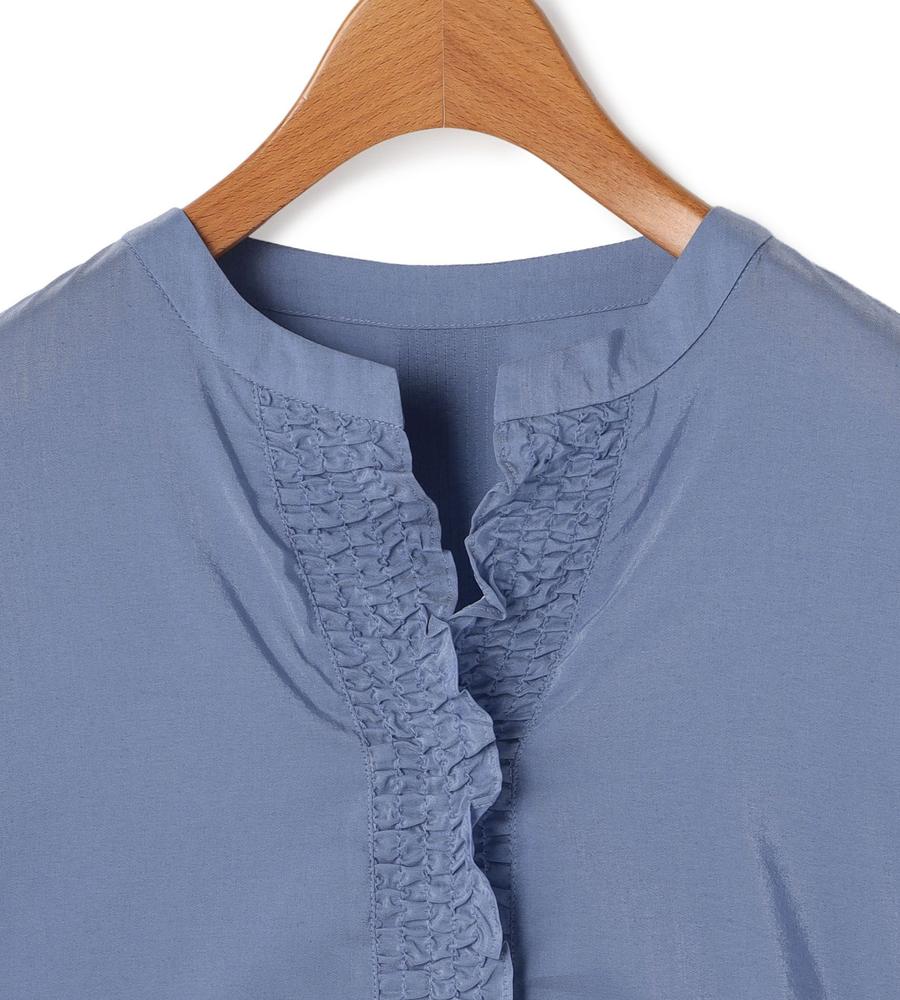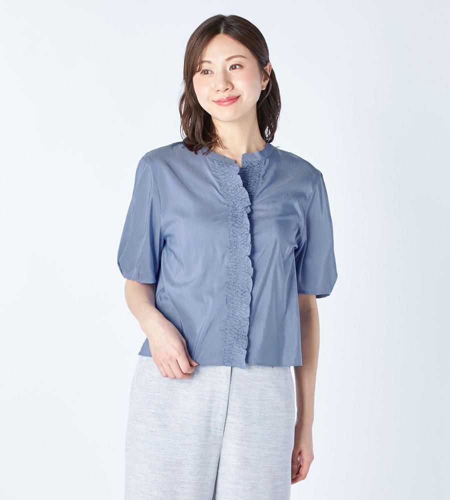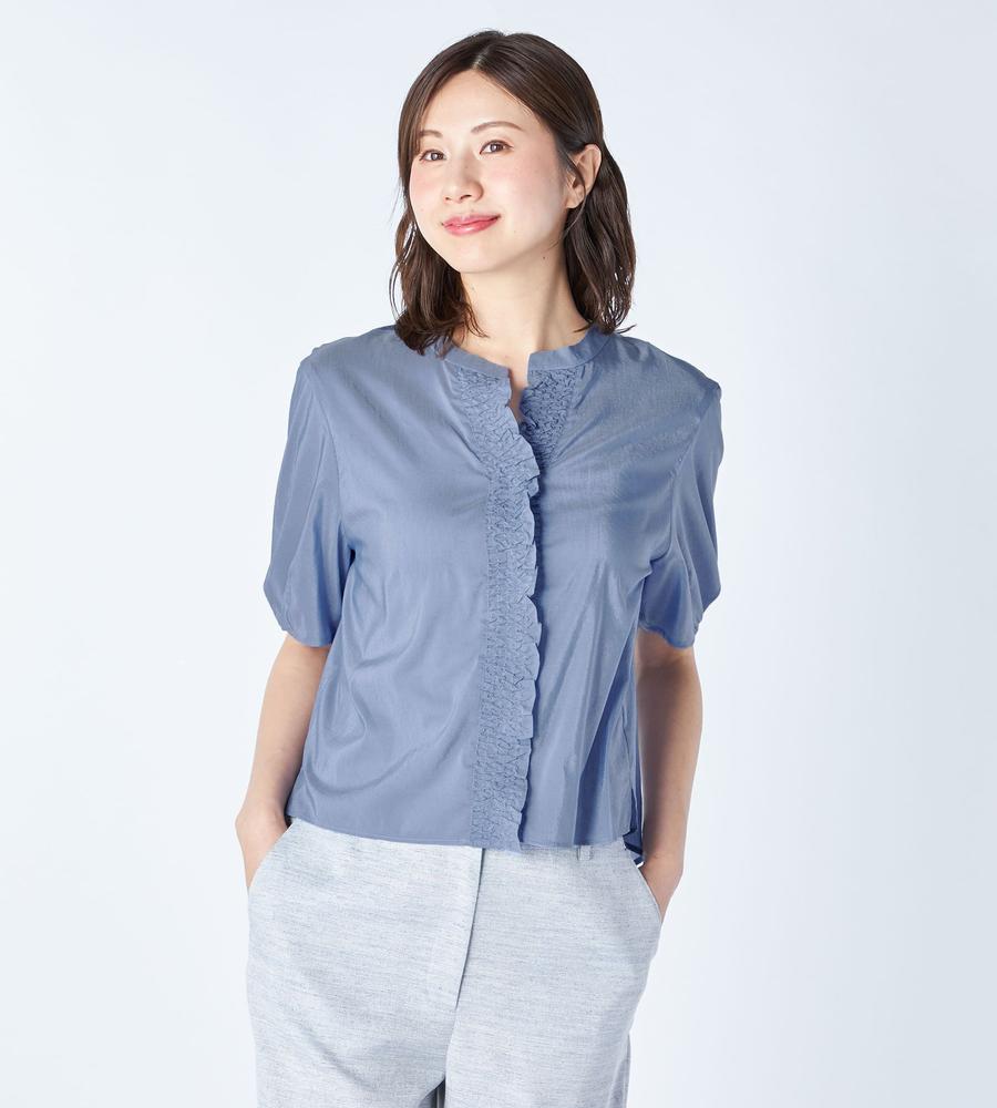 軽くて通気性にすぐれた着心地が魅力、これからの季節にぴったりなローン素材のブラウスです。前立て部分にたっぷりよせたギャザーフリルが、フェミニンなボリューム感を作ります。1枚で着るのはもちろんジャンスカやワンピースのインナーとしてもおすすめ、お呼ばれやデートにもおすすめのアイテムです。