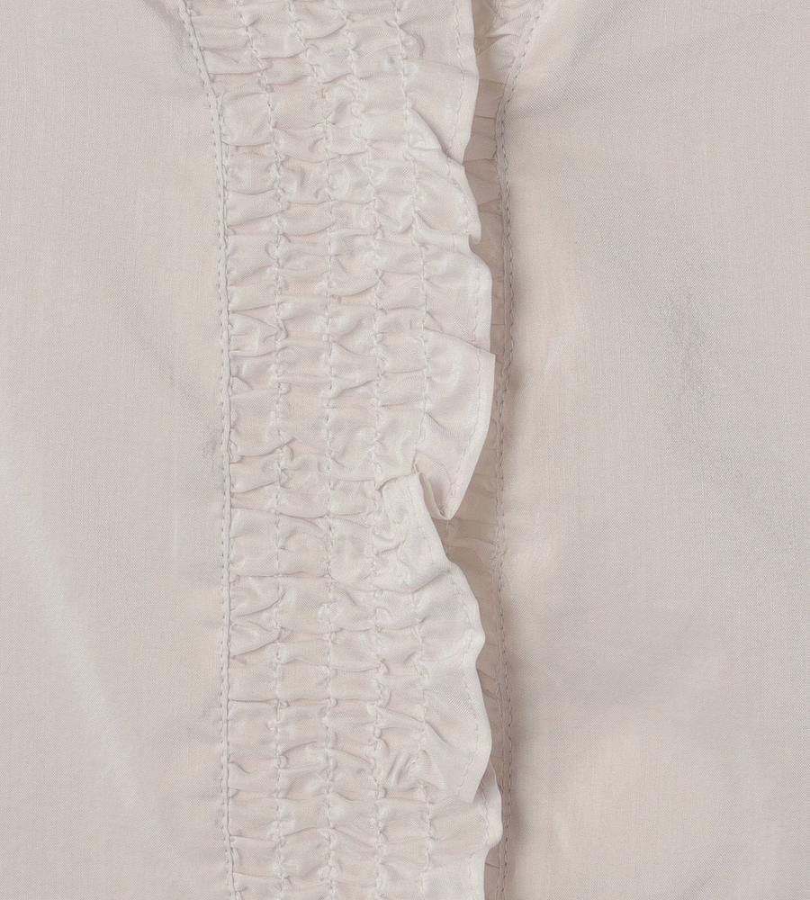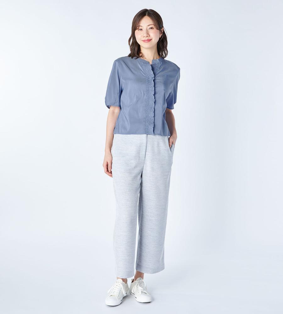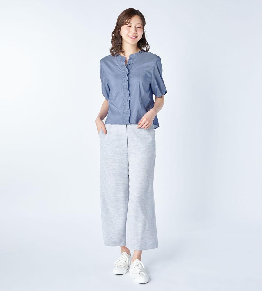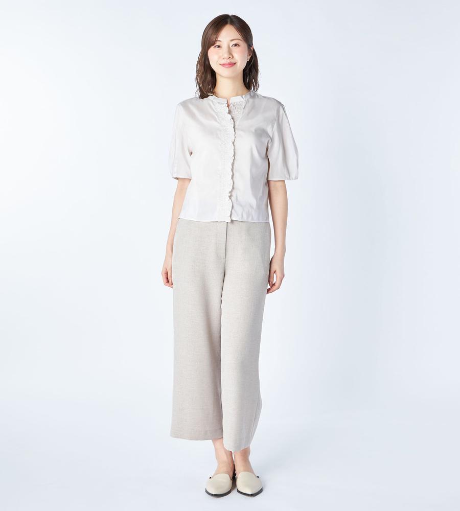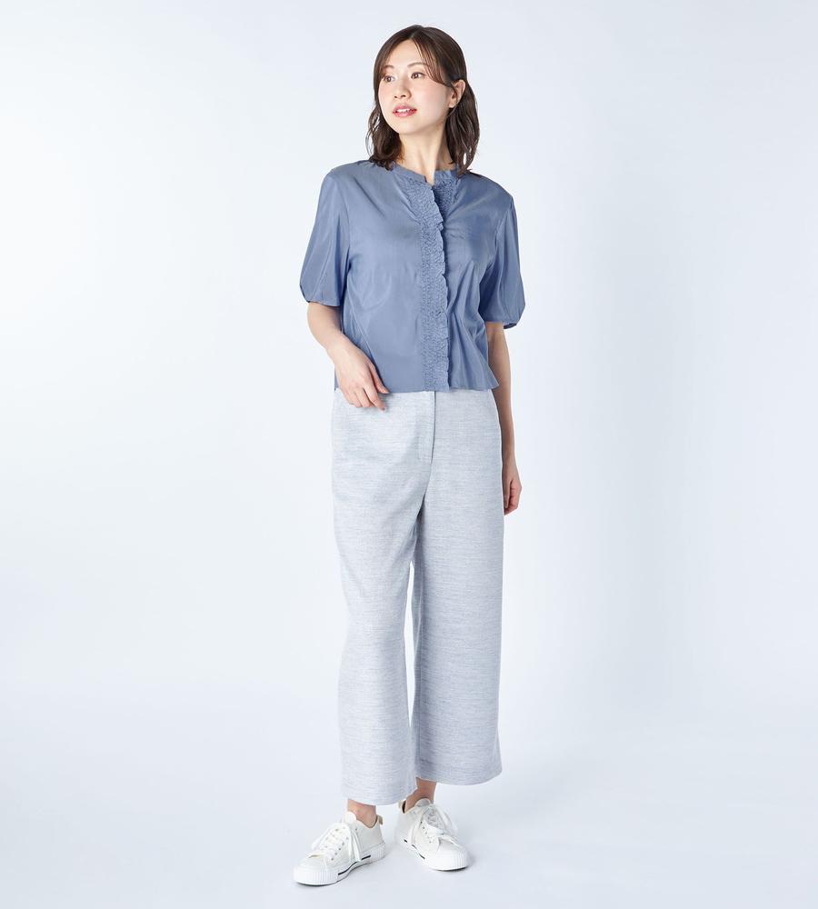 軽くて通気性にすぐれた着心地が魅力、これからの季節にぴったりなローン素材のブラウスです。前立て部分にたっぷりよせたギャザーフリルが、フェミニンなボリューム感を作ります。1枚で着るのはもちろんジャンスカやワンピースのインナーとしてもおすすめ、お呼ばれやデートにもおすすめのアイテムです。